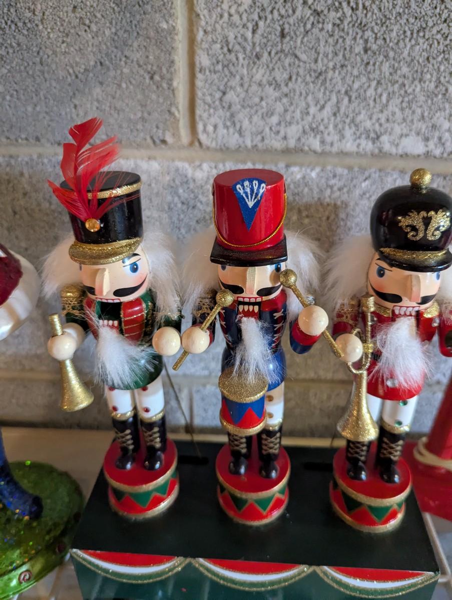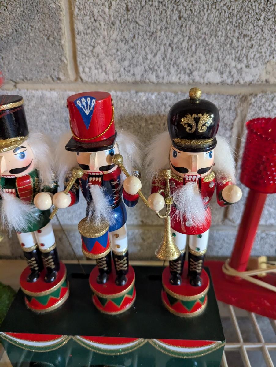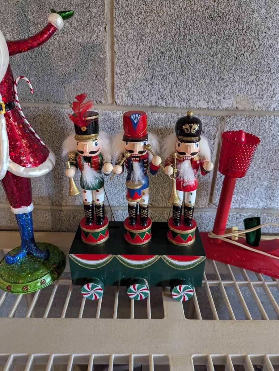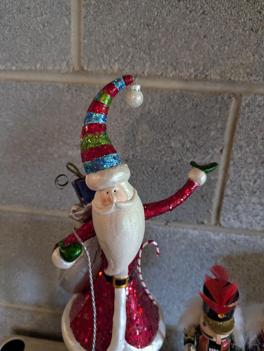 Santa Figure Red Plastic Candelabra & Holiday Lane King Musical Nutcracker Trio