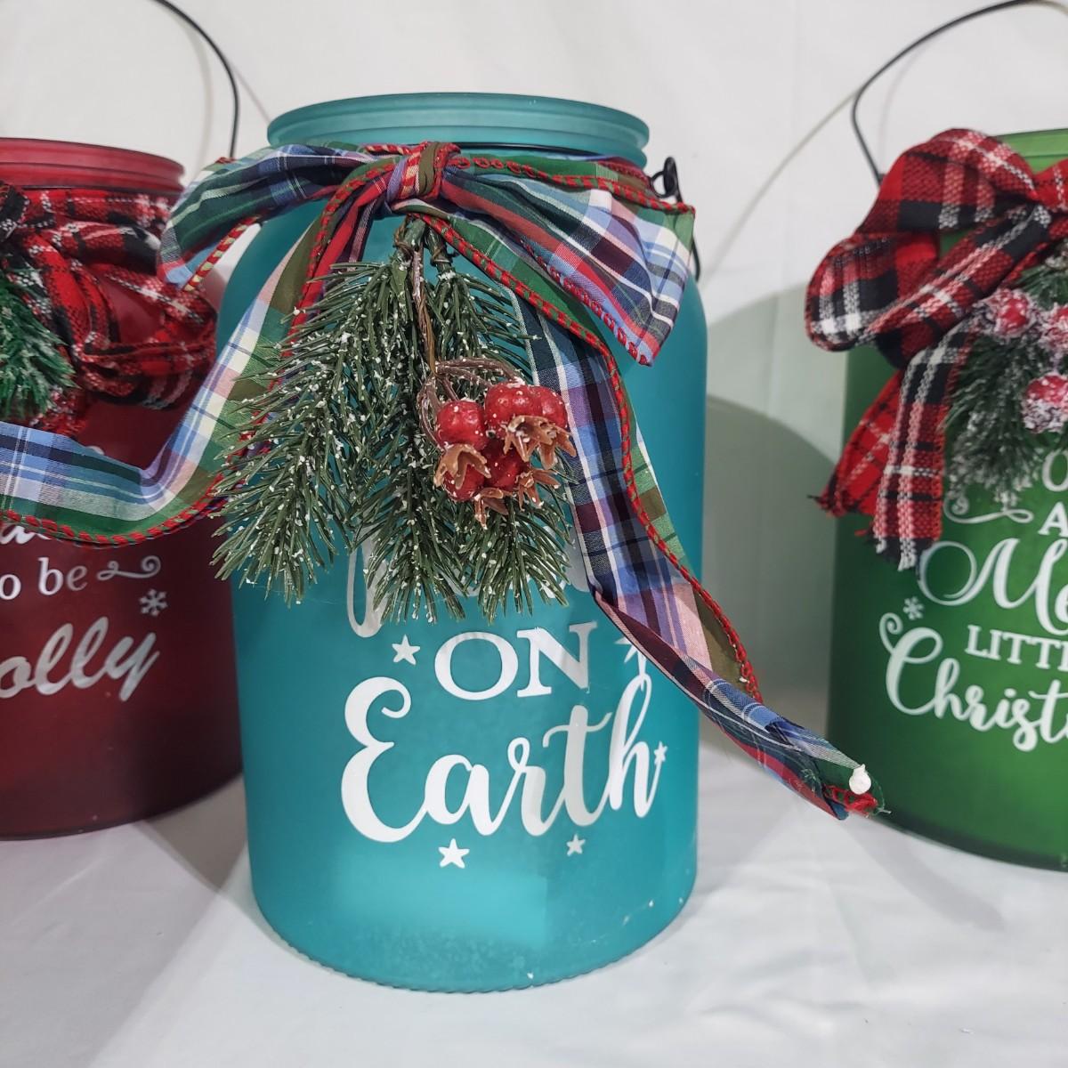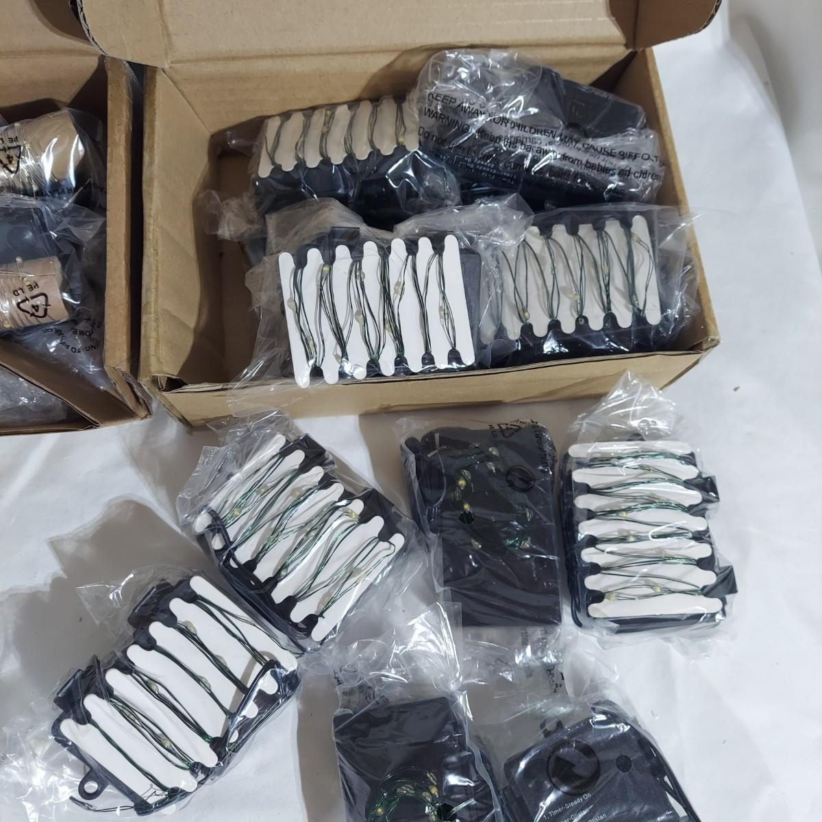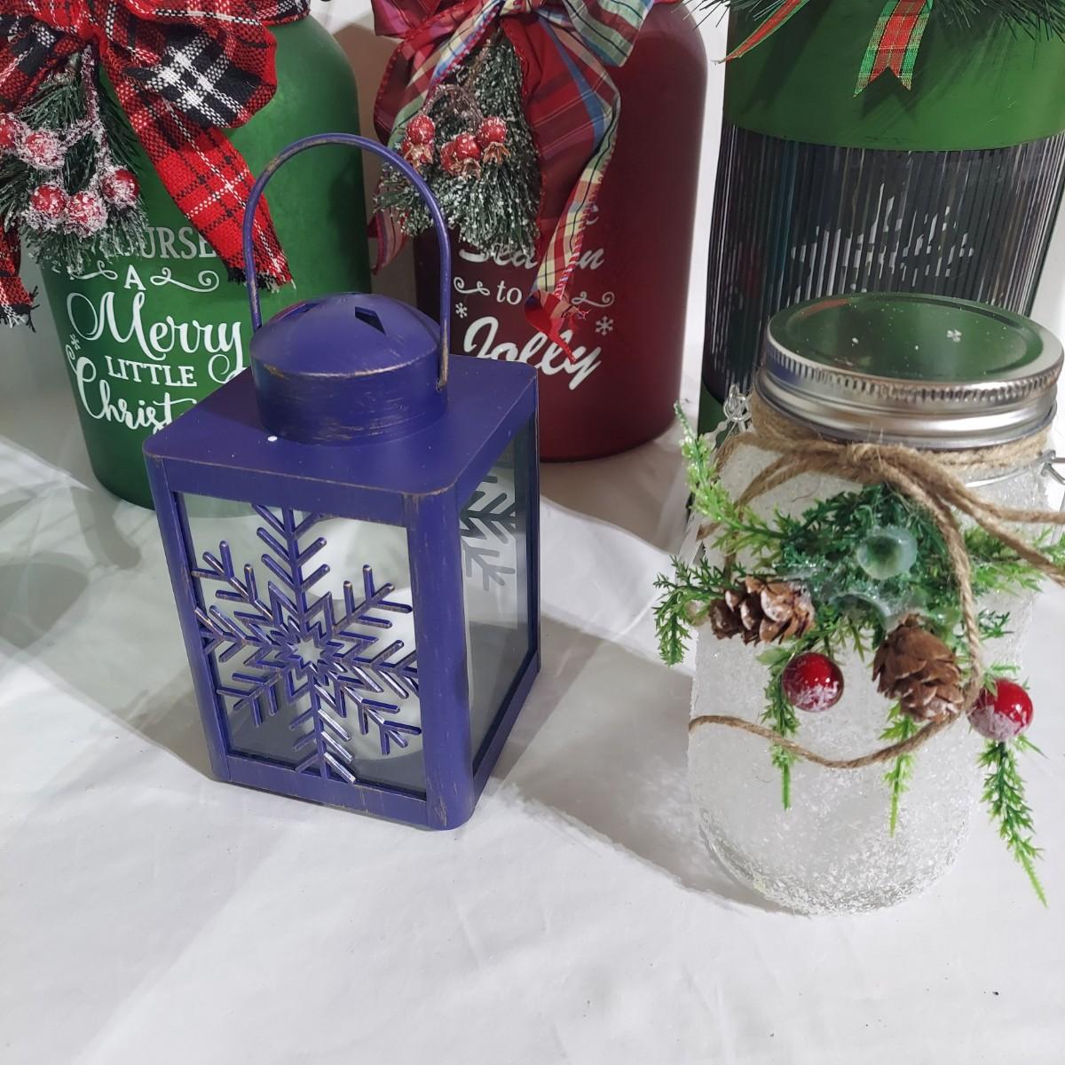 Lot includes several glass jar style lanterns in varying sizes. Most have led twinkle packs inside. Also included are many strands of led twinkle lights and standard holiday strand lights. There are two boxes of lanterns, one box of led lights and one bin of string lights. String lights were plugged in and powered on. Please see photos for details. Local Pickup Only