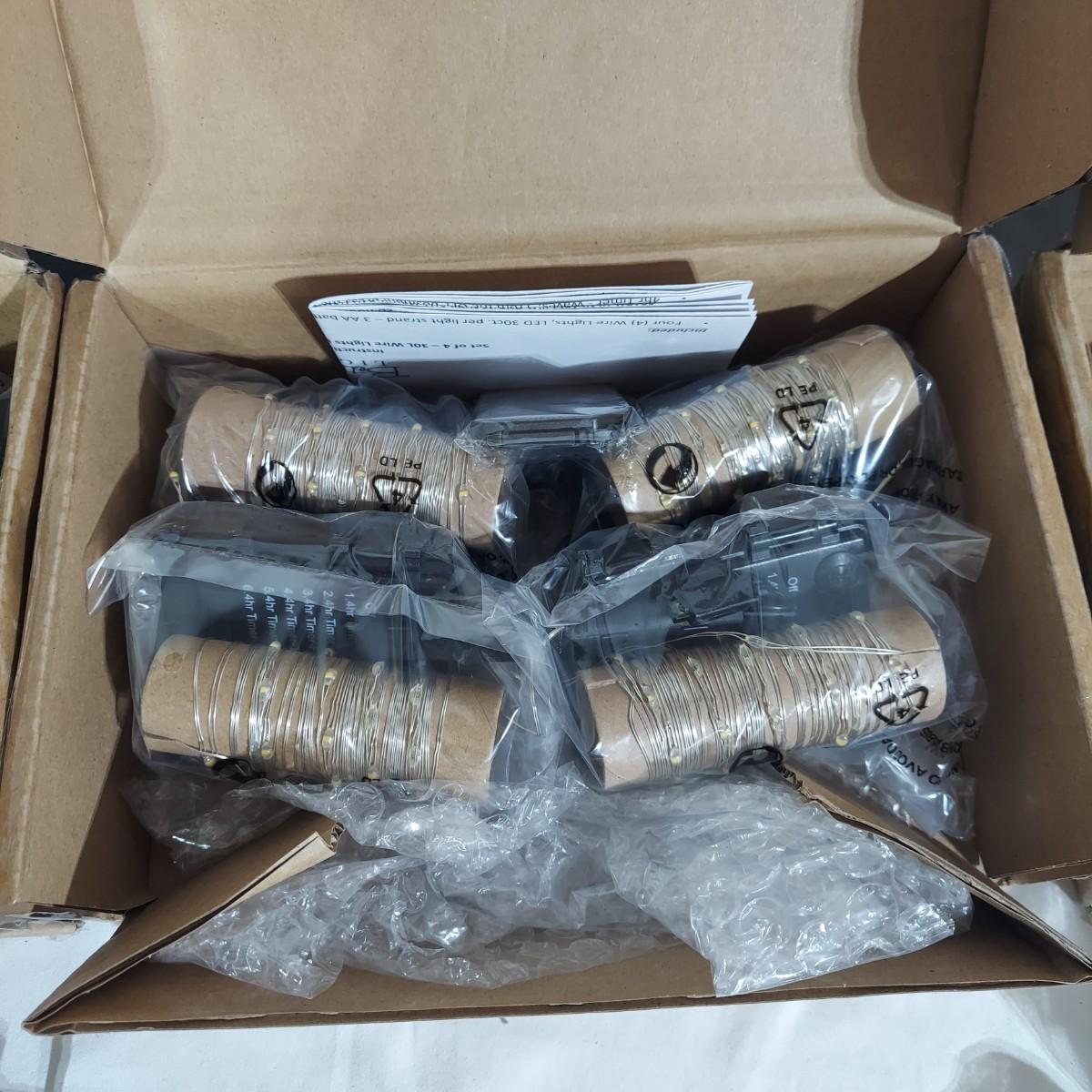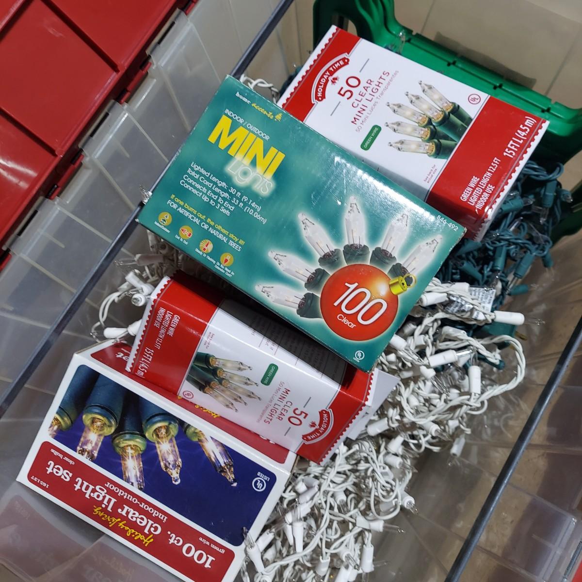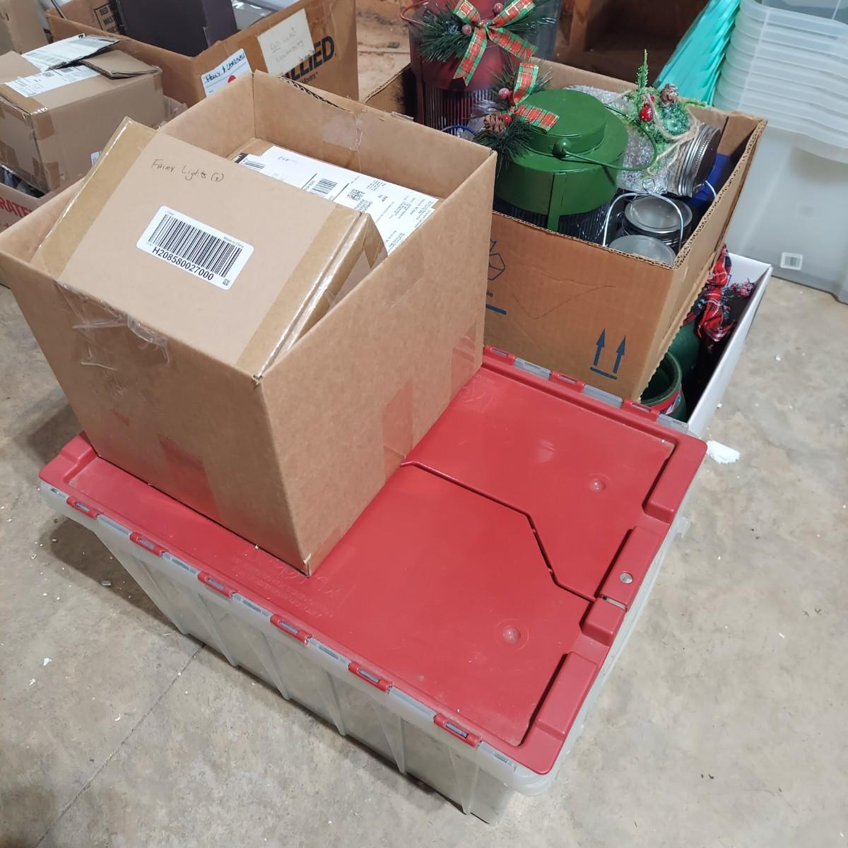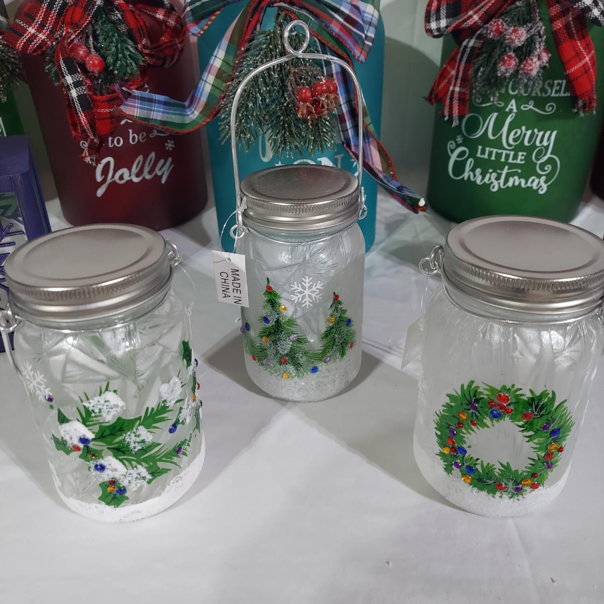 Lot includes several glass jar style lanterns in varying sizes. Most have led twinkle packs inside. Also included are many strands of led twinkle lights and standard holiday strand lights. There are two boxes of lanterns, one box of led lights and one bin of string lights. String lights were plugged in and powered on. Please see photos for details. Local Pickup Only