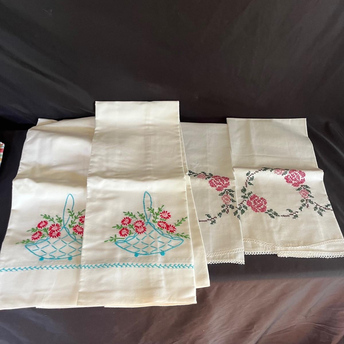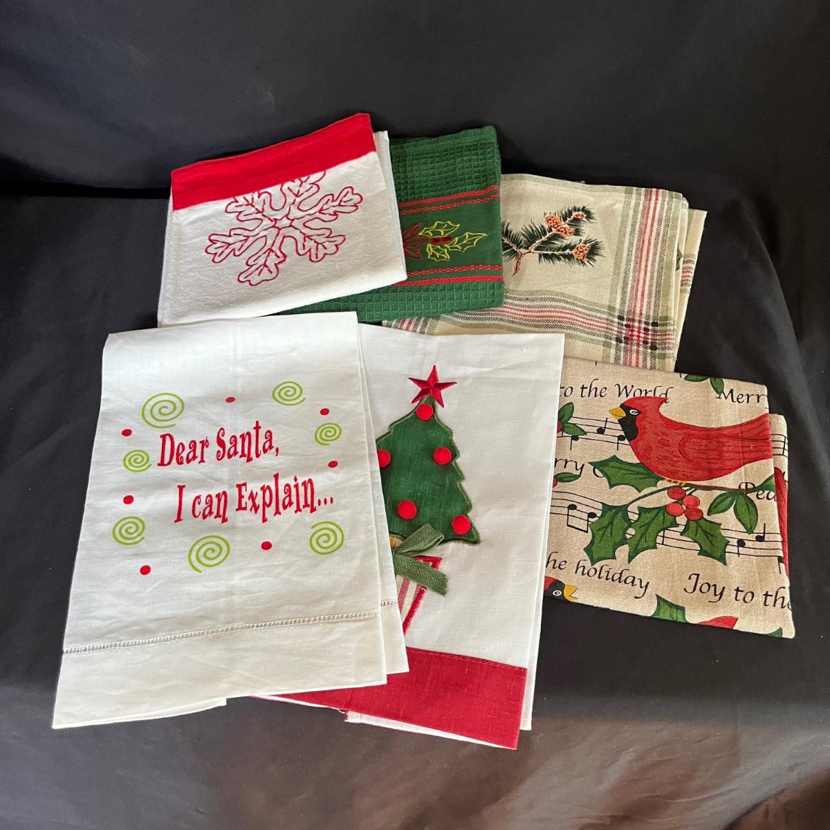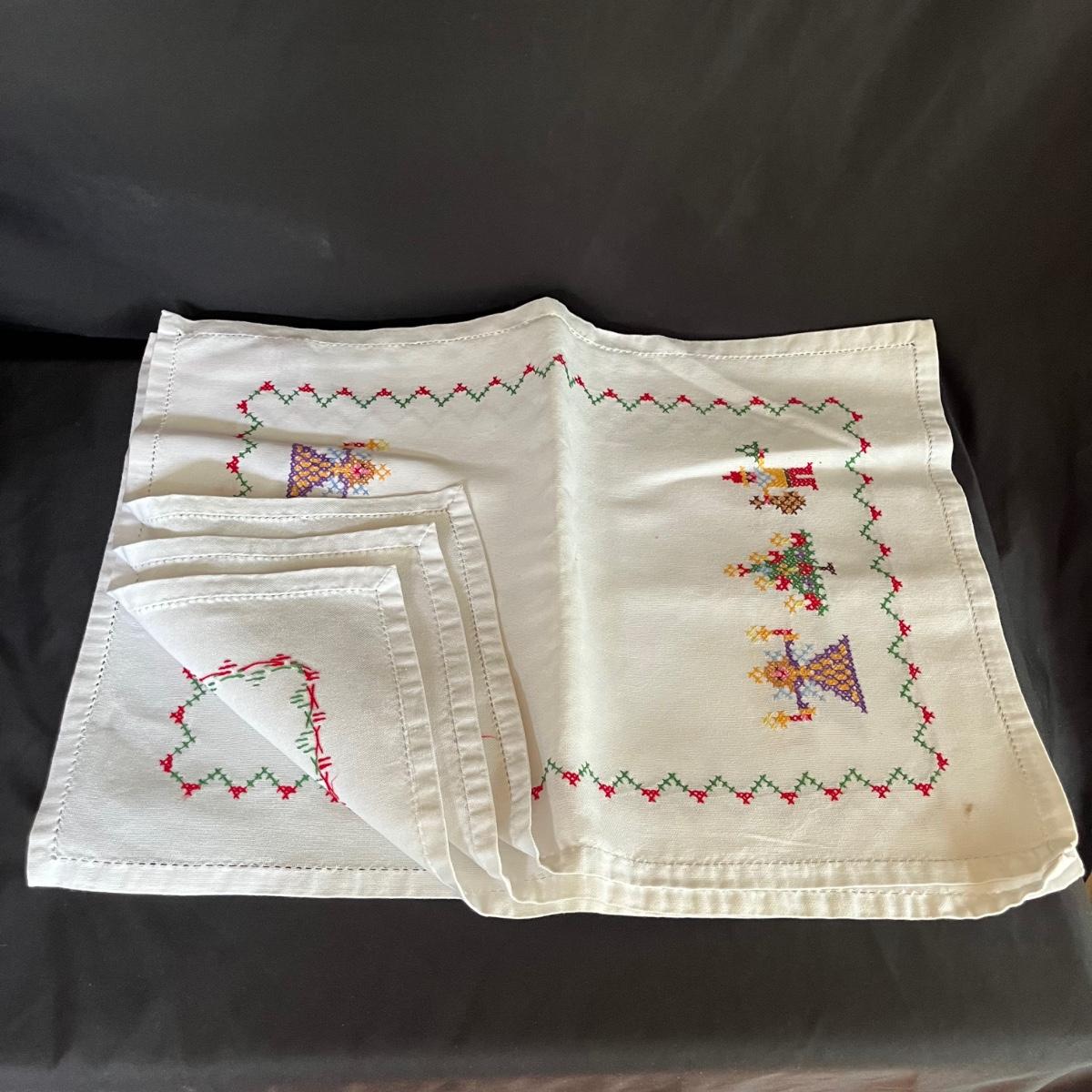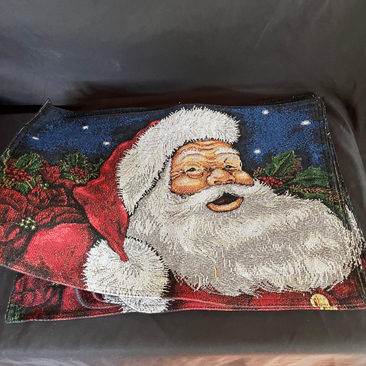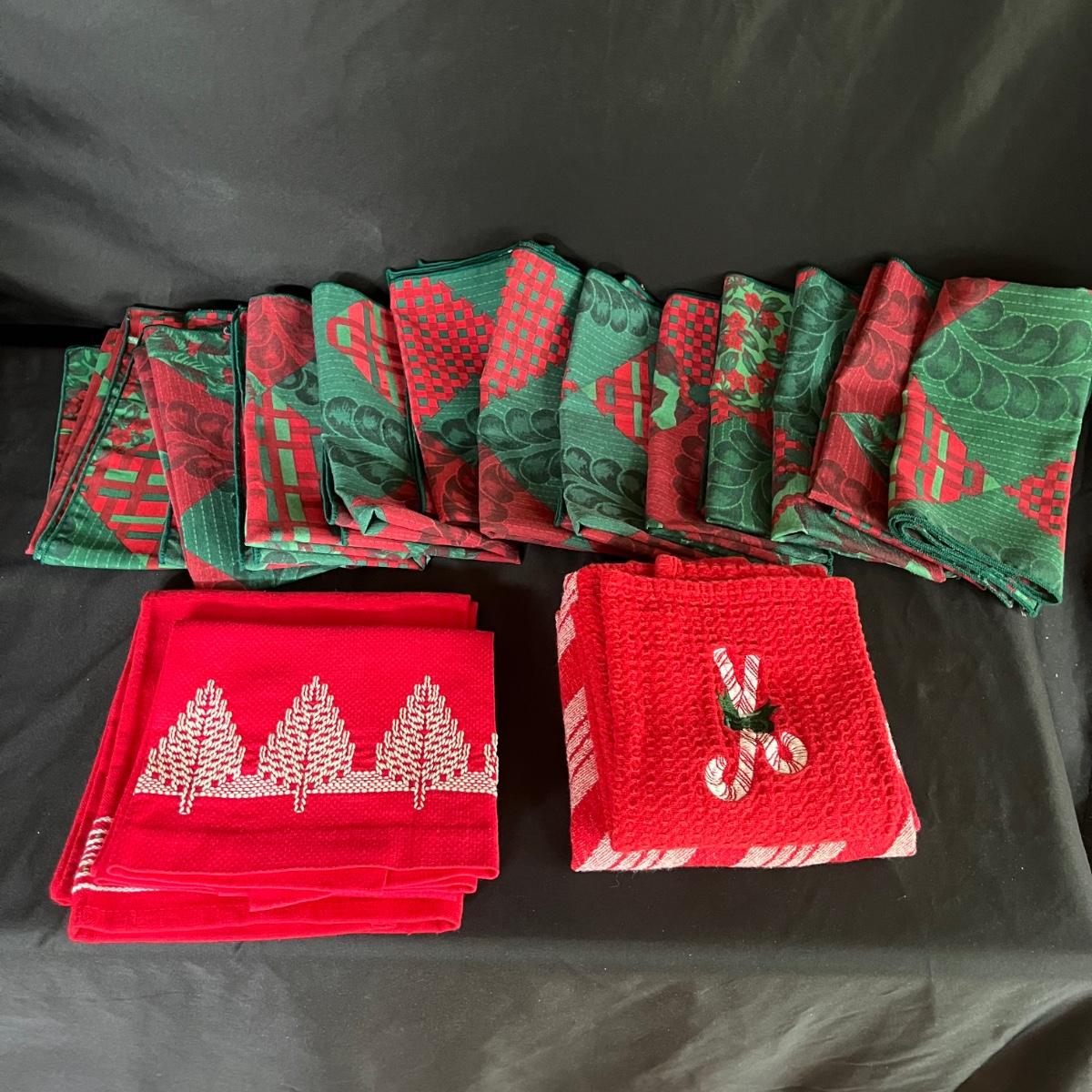 Lot includes a large collection of linens and placemats in a variety of colors and styles also includes one autumn tablecloth that measures 68”D.