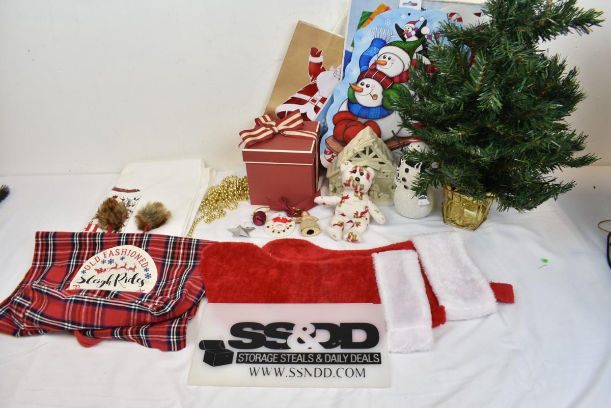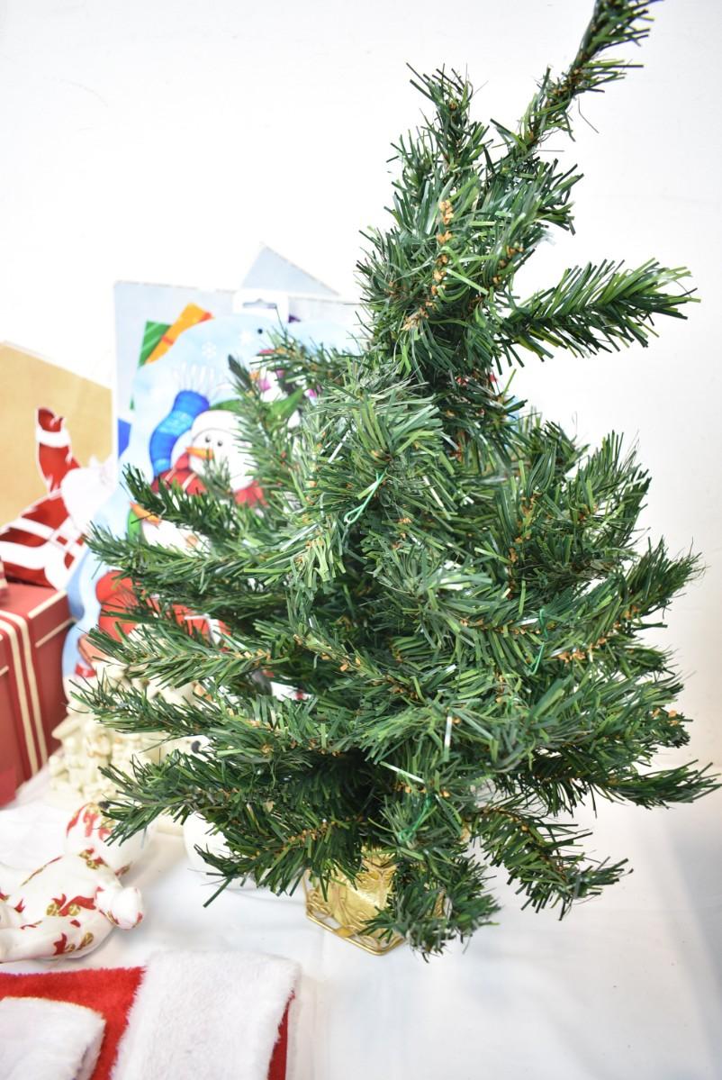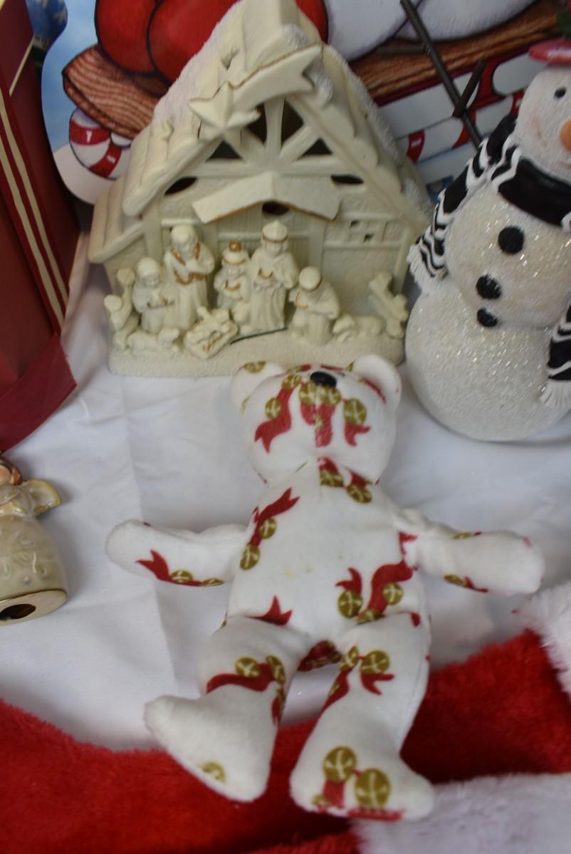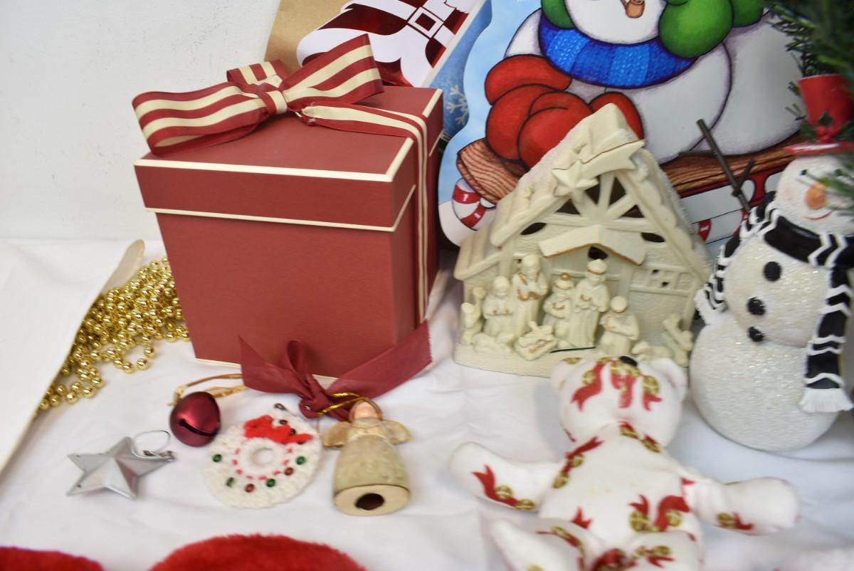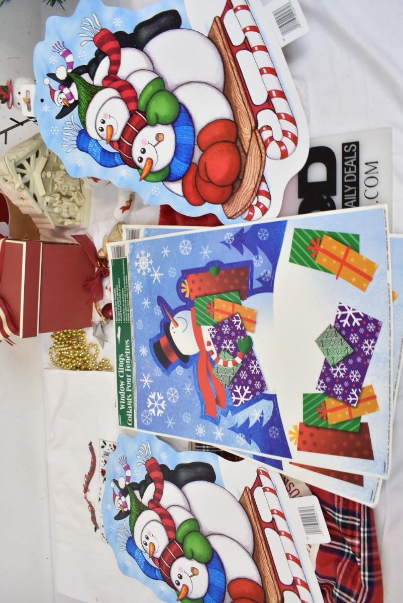 Holiday Lot: Small Christmas Tree, Window Clings, Ceramic Nativity, Gift Boxes