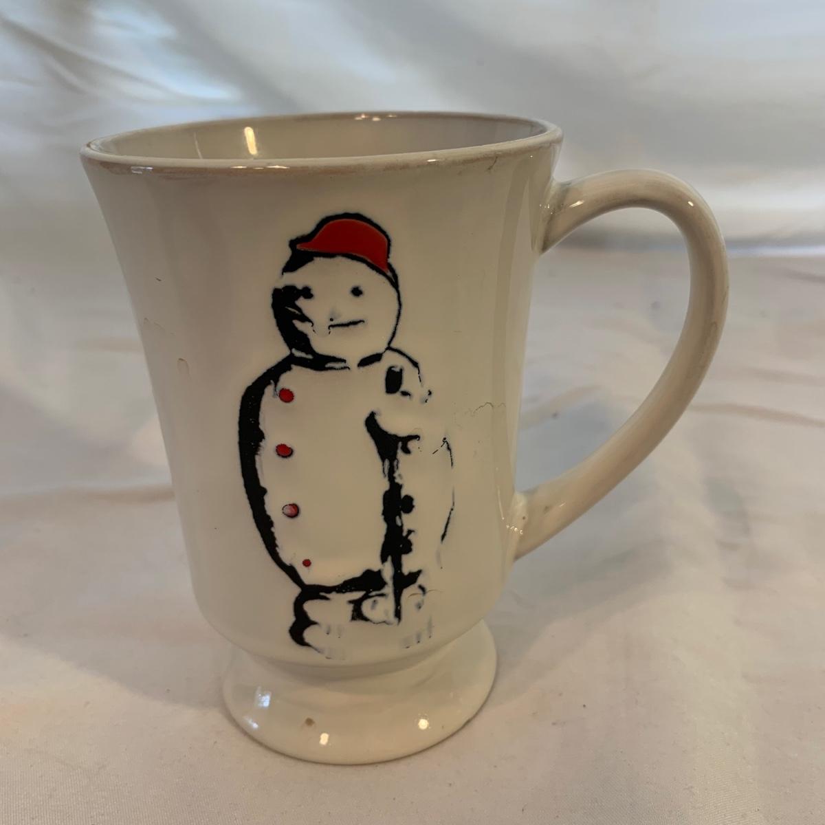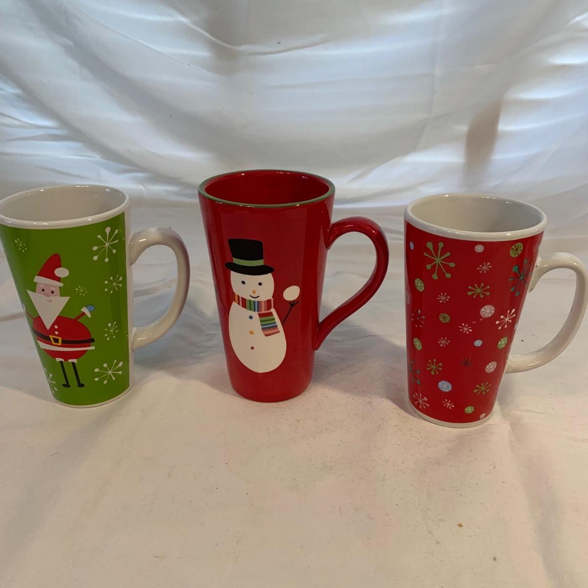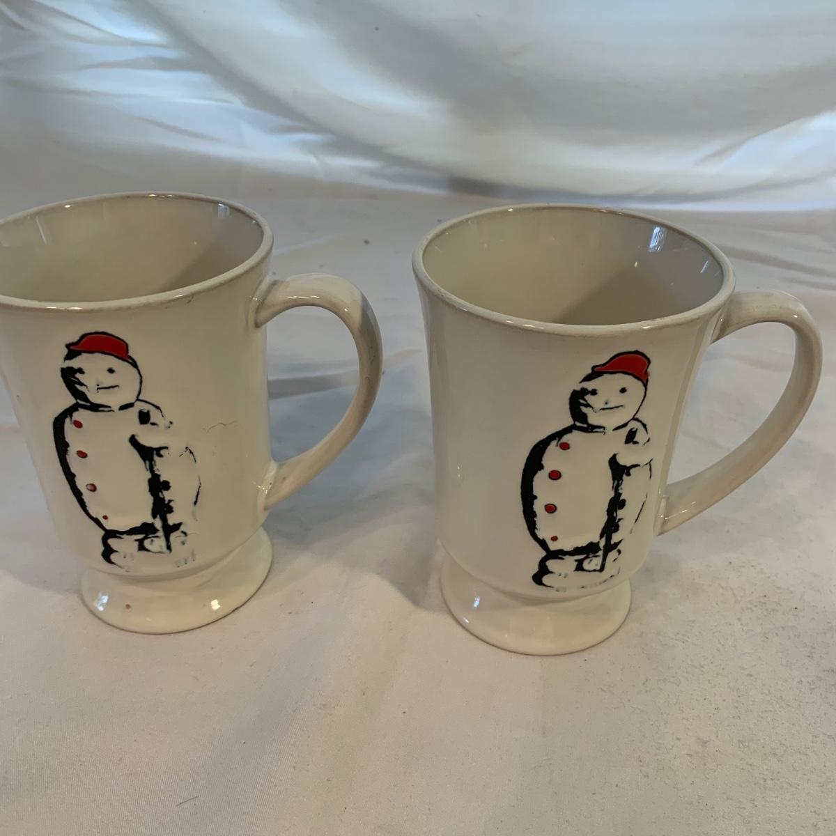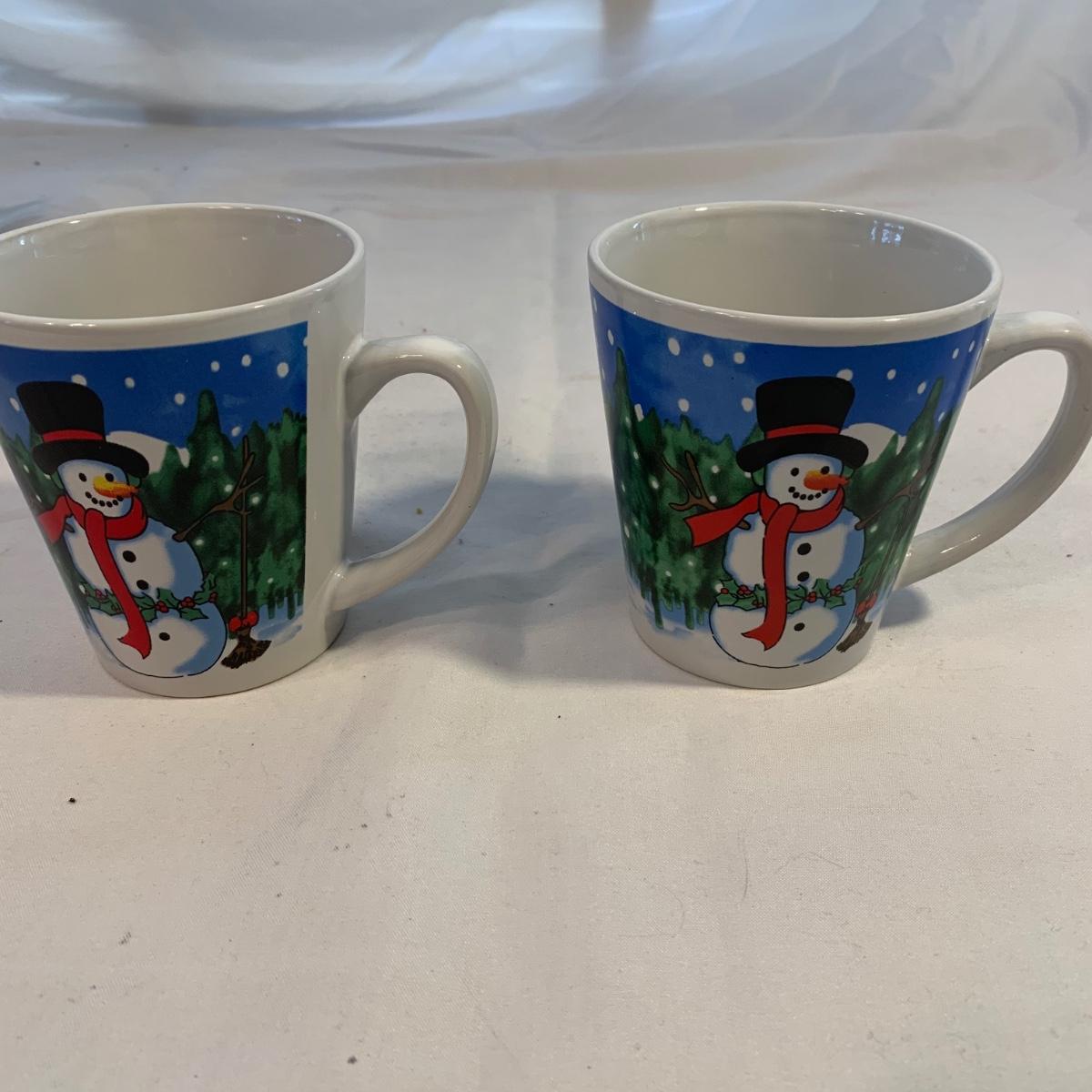 This lot includes 11 Christmas mugs and one plate. Included is a set of 6 snowmen mugs, 3 taller mugs, and a pair of Mesa mugs. One of the Mesa mugs has a chip in it (see photos). The largest mug measures about 6.5in tall. Shipping available.