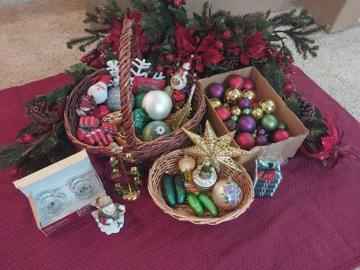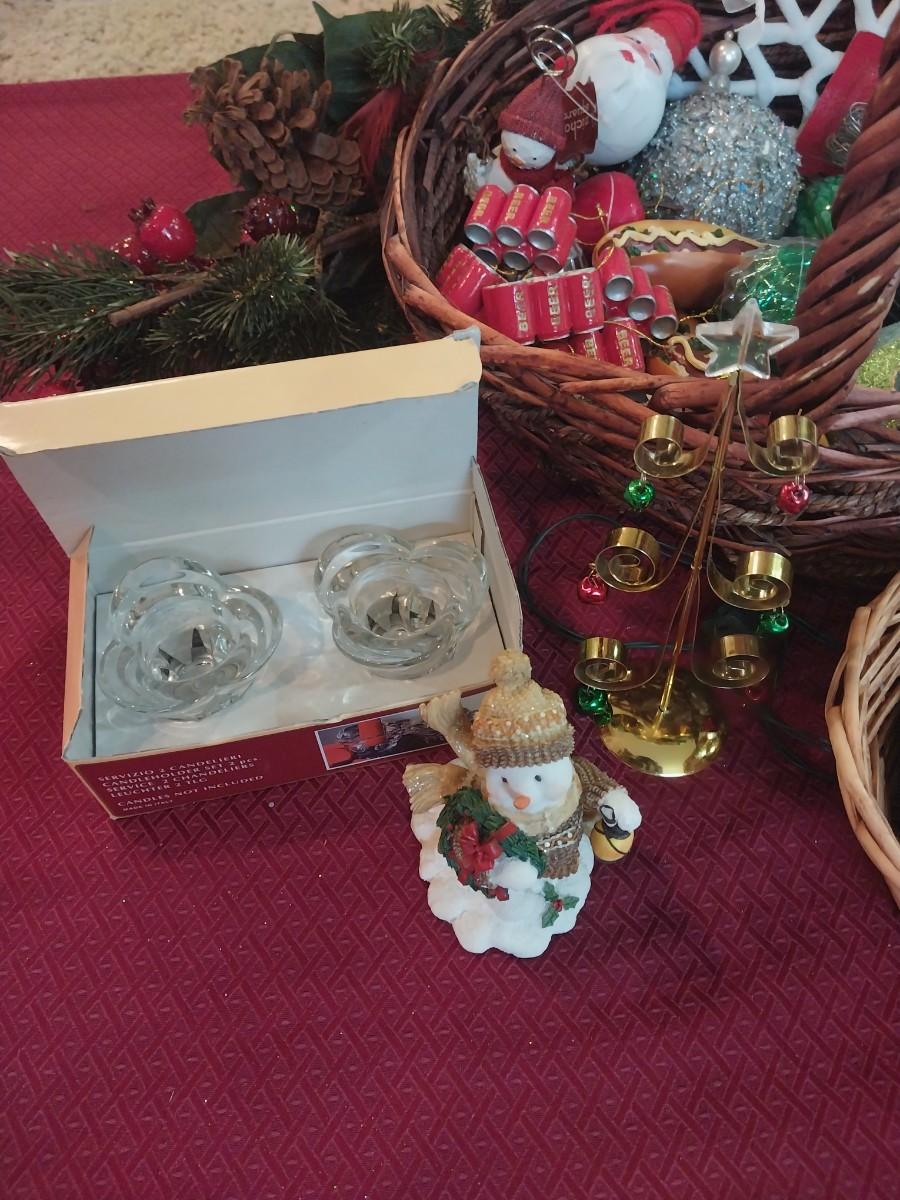 VARIETY OF ORNAMENYS-TABLECLOTH-CANDLEHOLDERS-MORE