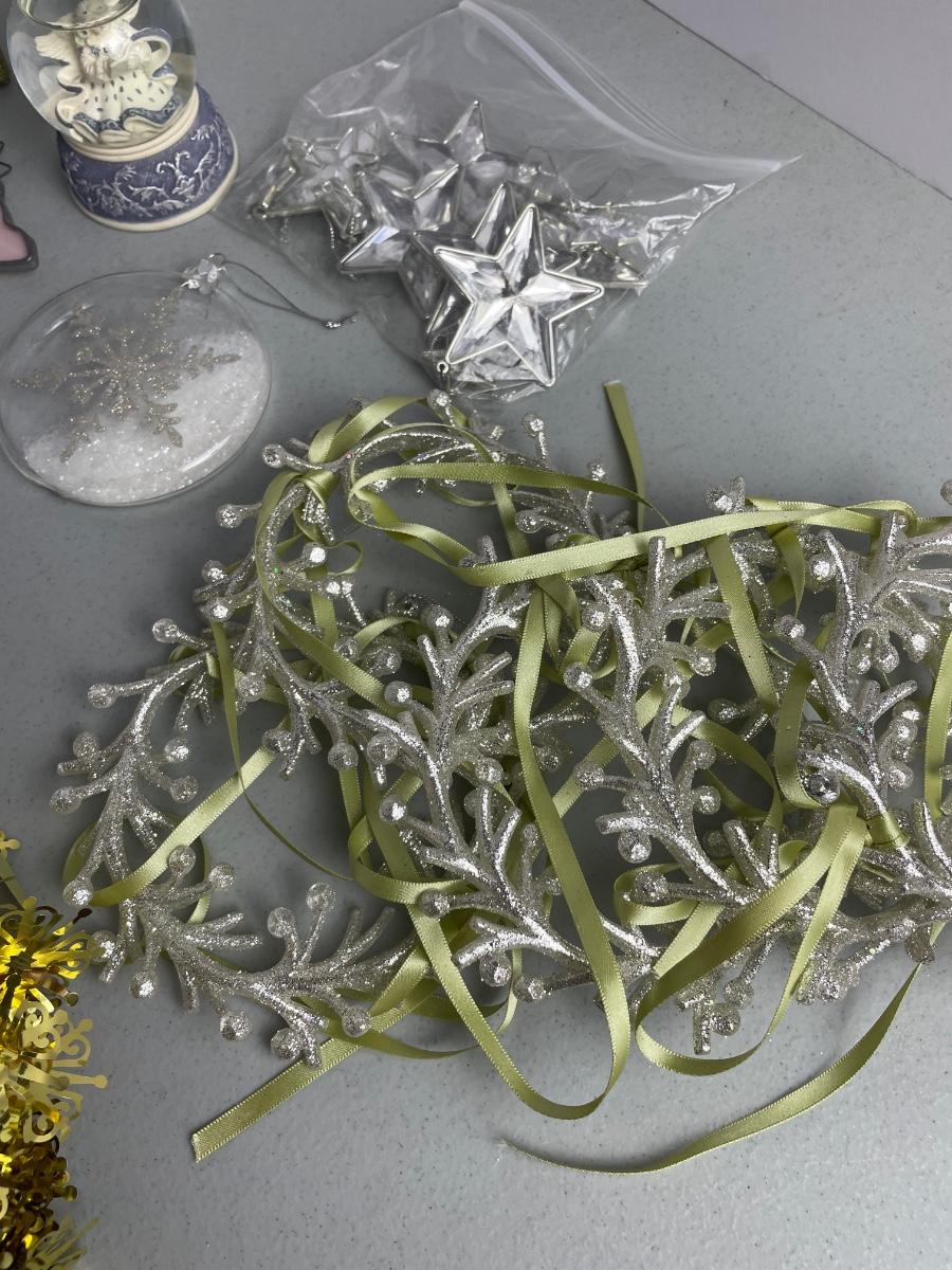 Holiday Ornaments Stained Glass, Snow globe and Lights