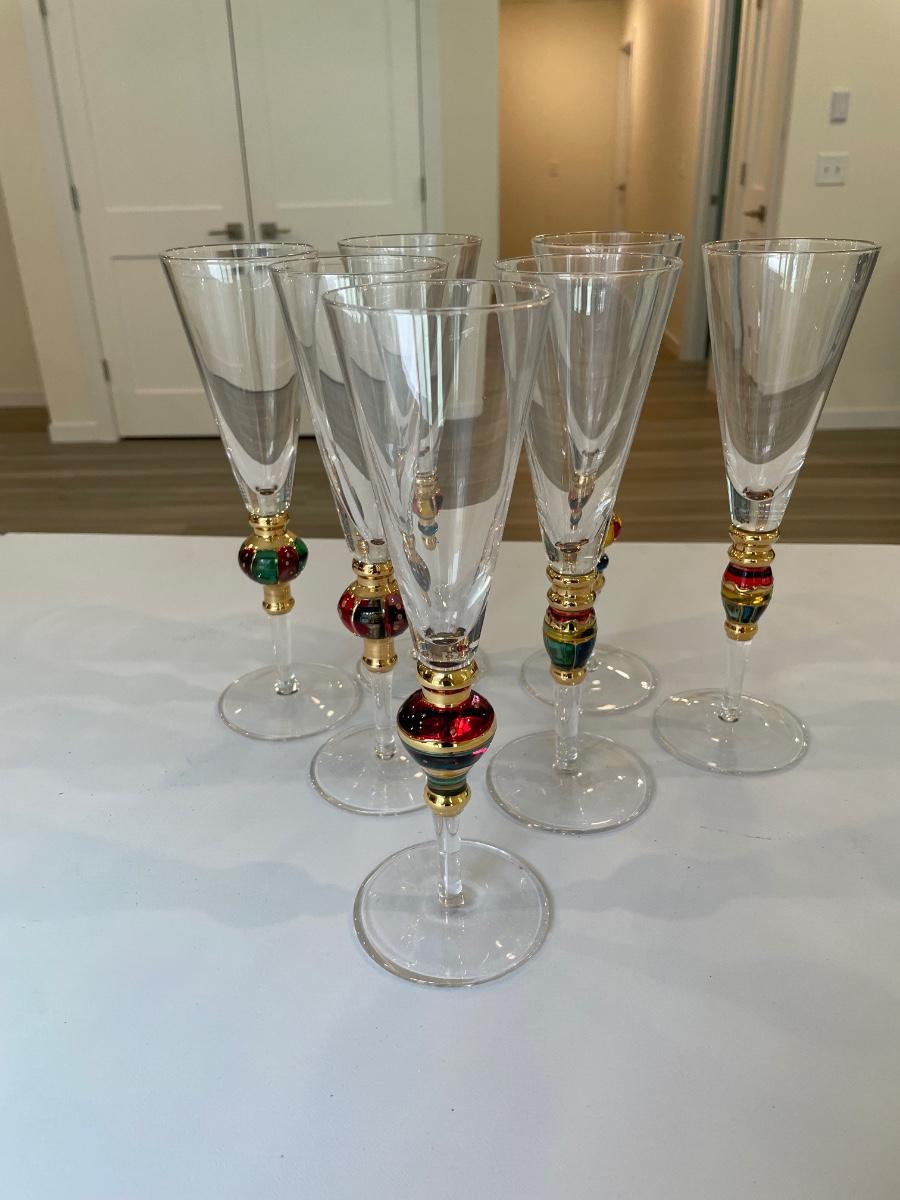 Holiday Painted Glass Champagne Flutes