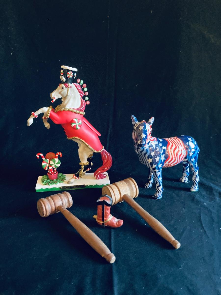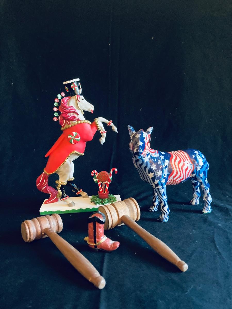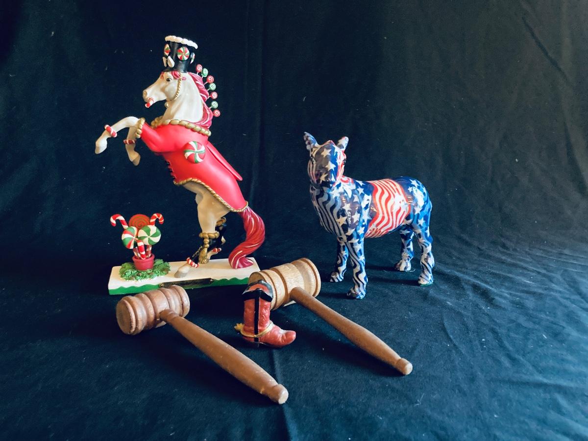 HOLIDAY PAINTED PONY, PATRIOTIC MULE AND GAVELS FOR THE JUDGE