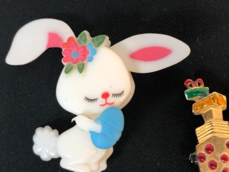 Holiday pins/brooches, vintage costume jewelry, Easter & Christmas