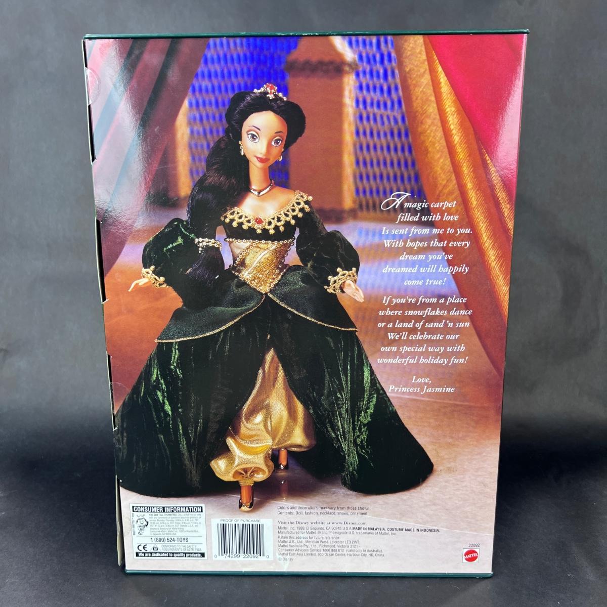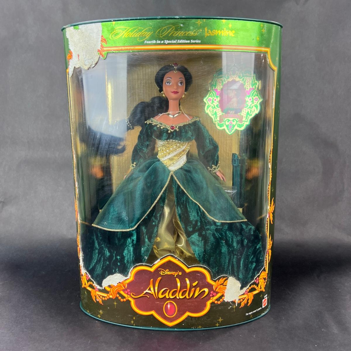 Jasmine looks beautiful in green, don't you agree? Doll comes with Christmas ornament to adorn your tree. Box has significant wear. This doll was produced in partnership with Disney and Mattel in 1999 **|** Please see photos for details and condition. ::: Shipping is available on this lot. If you require shipping you must let us know at the close of the auction. We will coordinate with you after the item has been won. Shipping fees will include insurance up to or exceeding the value of all items being mailed. If you have any questions regarding this lot please contact the auctioneer either via this website, by direct email or by phone. PICK UP TIMES and other important information can be found in the TERMS and DESCRIPTION of the auction. Please take a look for pertinent information. Thanks!