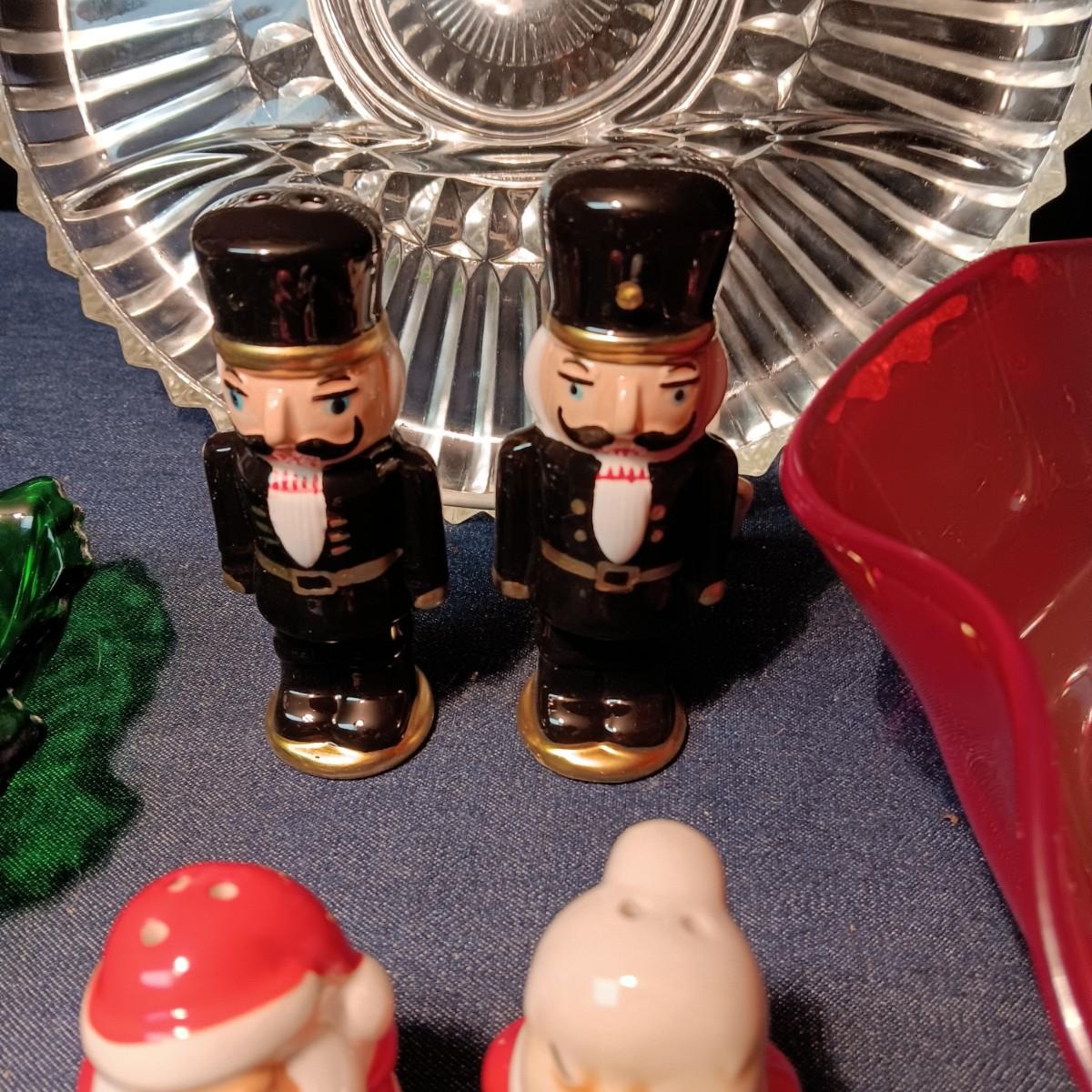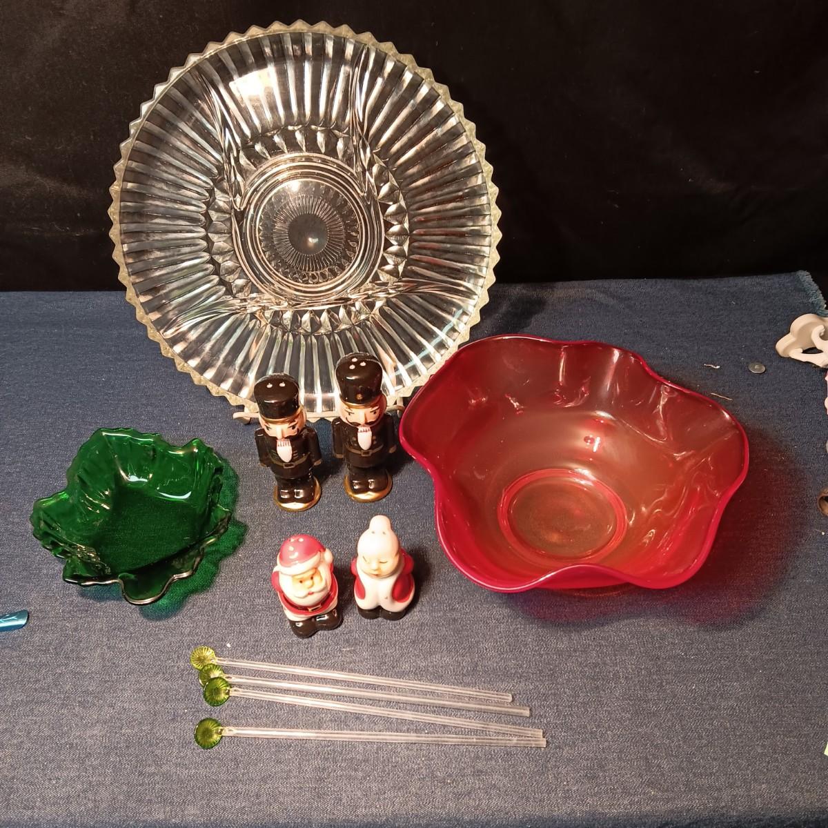 HOLIDAY SERVING DISHES AND SALT PEPPER SHAKERS
