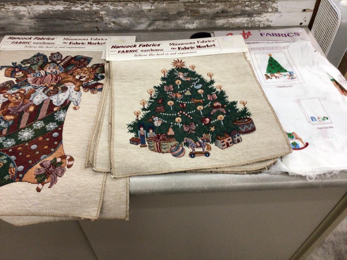 You get 2 Stocking fabric, 5 Christmas tree fabric, and 3 holiday themed fabric.