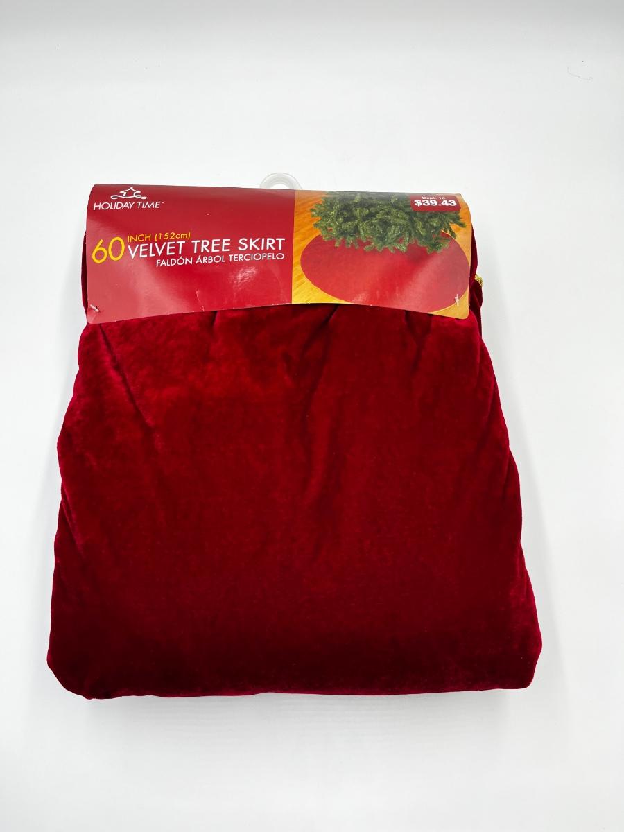HOLIDAY TIME ~ 60" Red Velvet ~ Gold Trim Tree Skirt ~ New