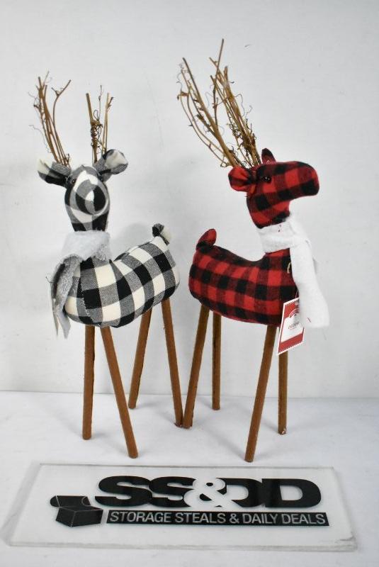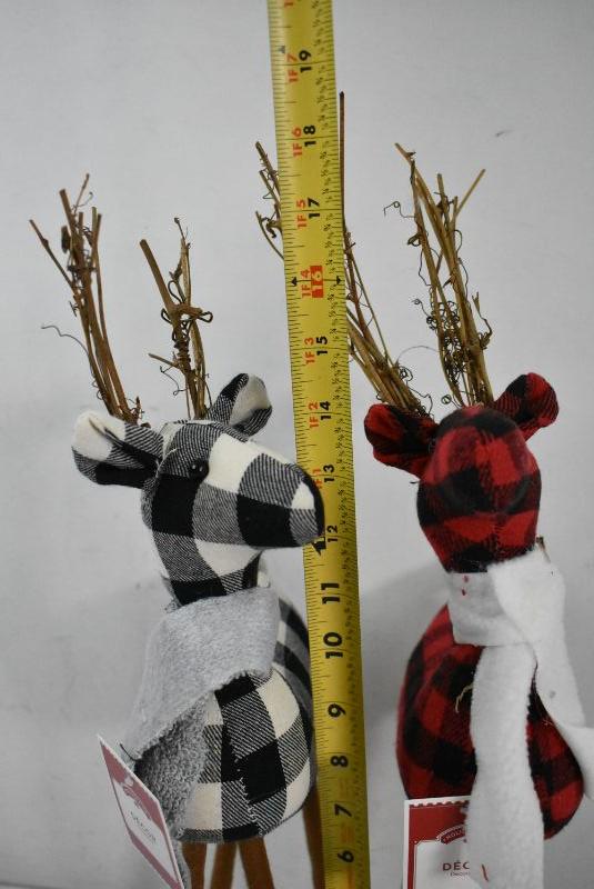 Holiday Time Large Fabric Deer Tabletop Christmas Decorations, B&W and Black/Red - New