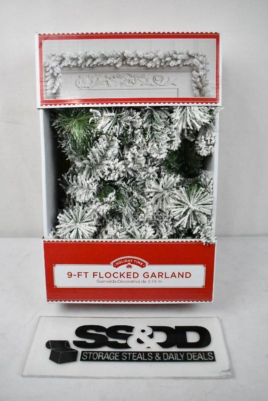 Holiday Time Winter Frost Flocked Unlit Garland, 9' - New