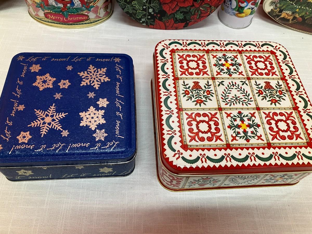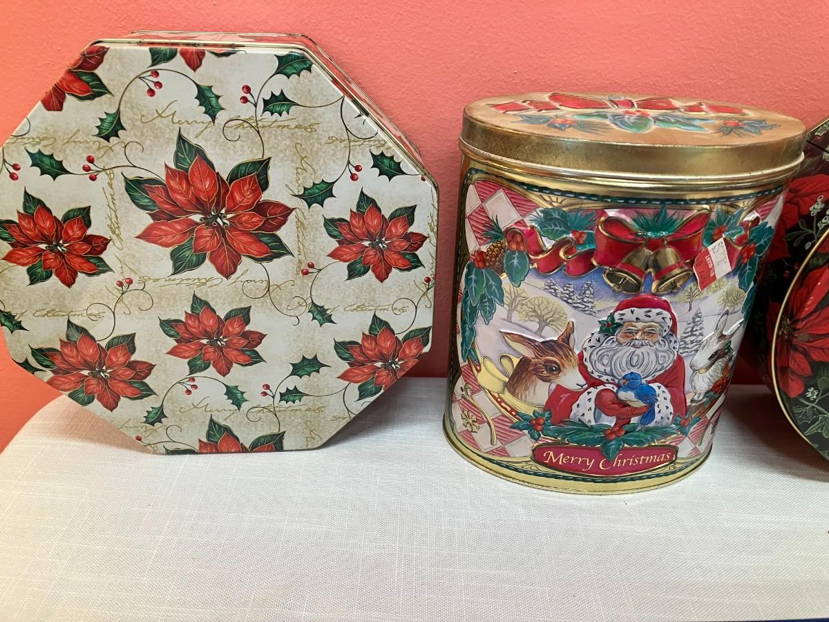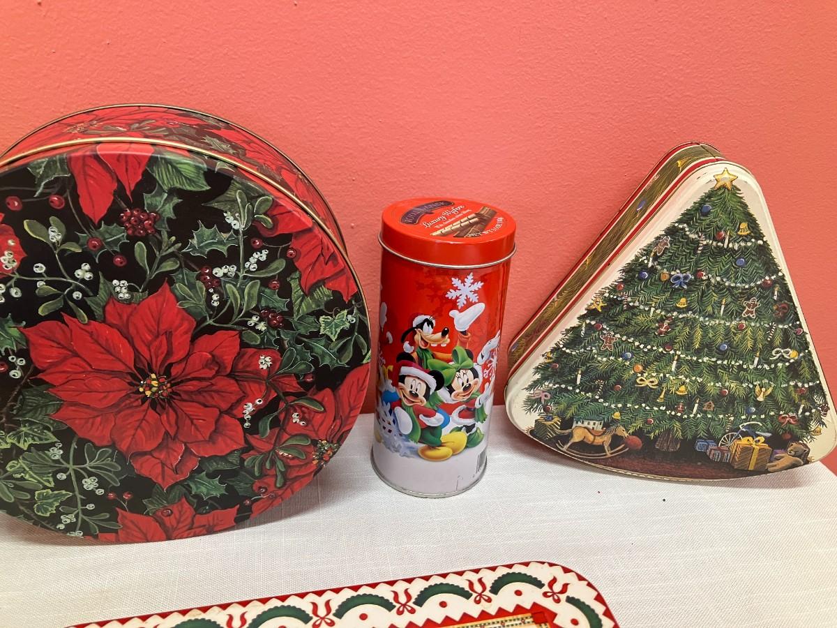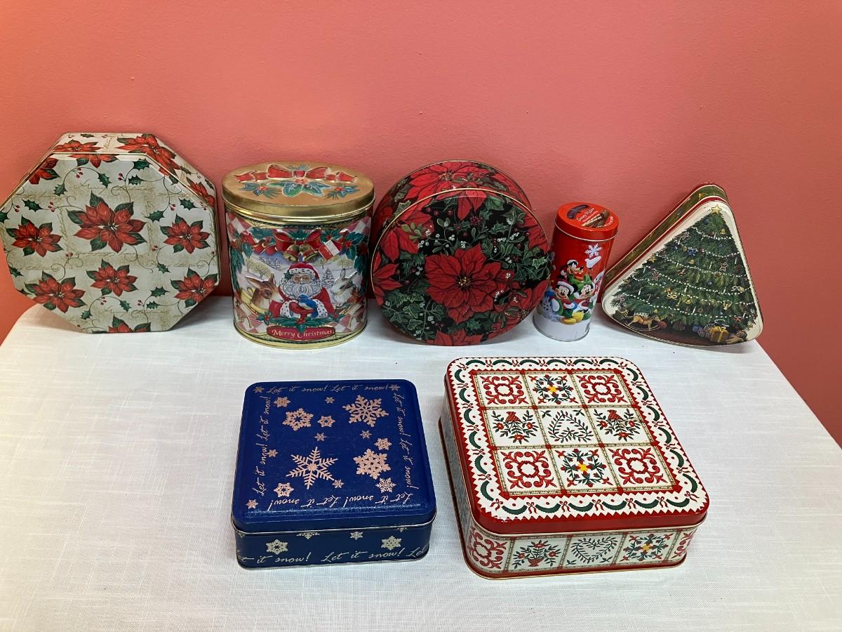 Set of 7 assorted holiday tins