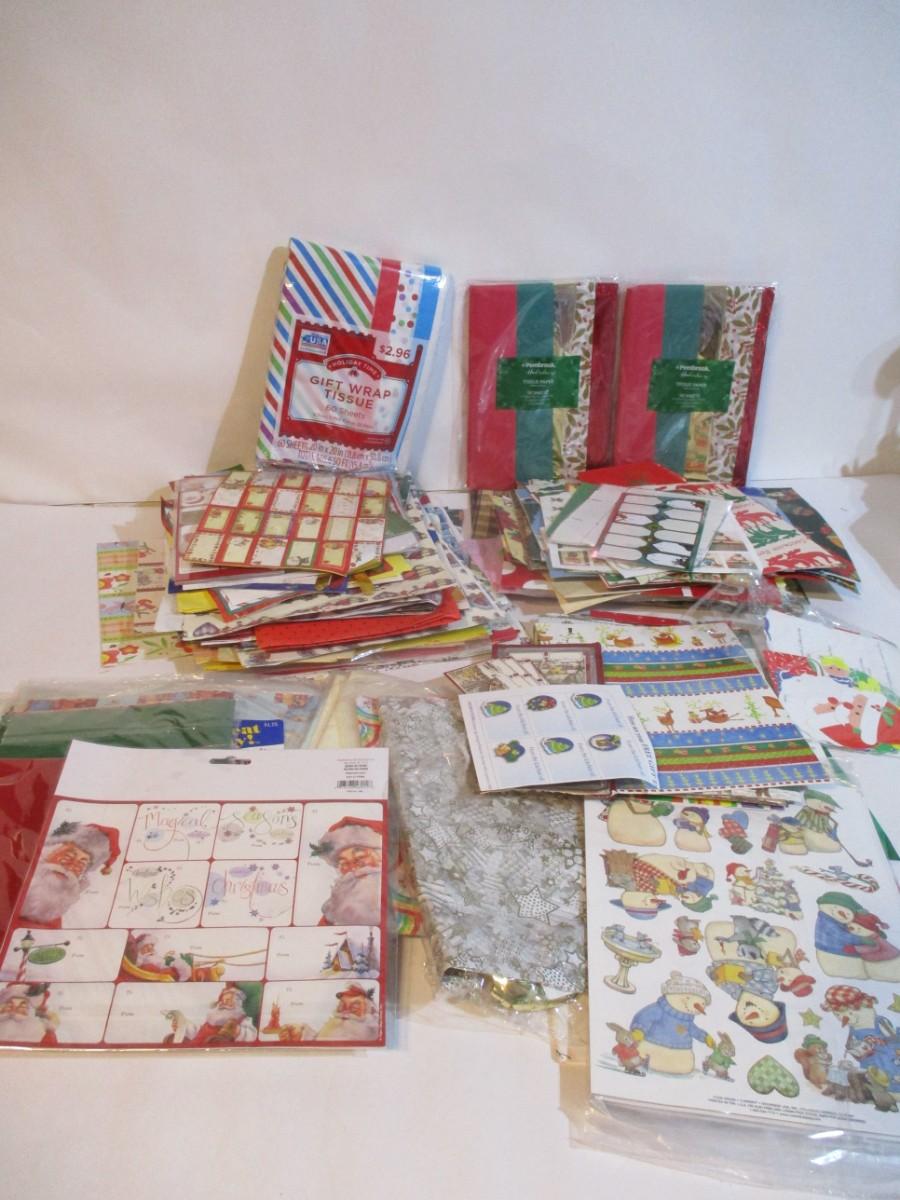 Holiday Wrapping Paper Tissue Paper & Tags Lot 7