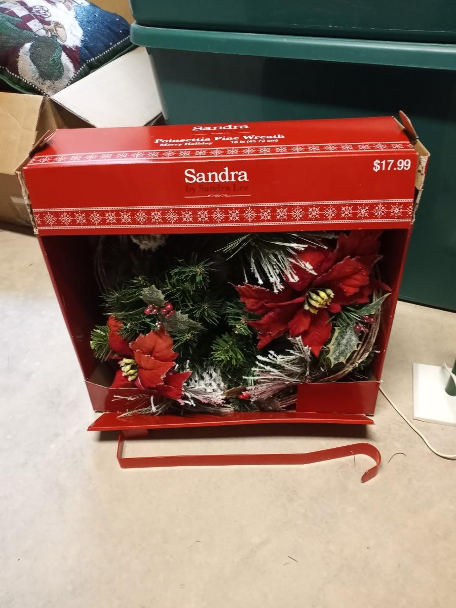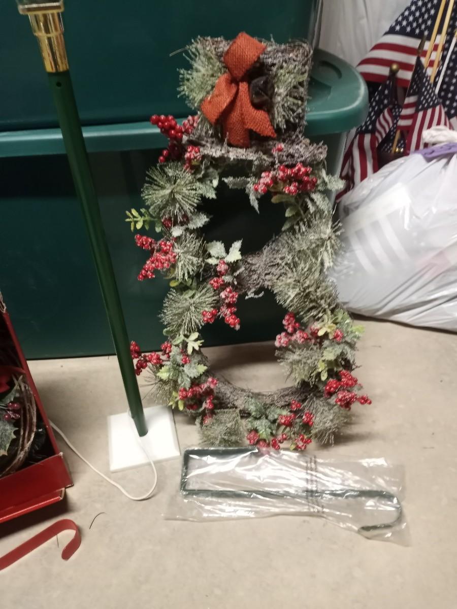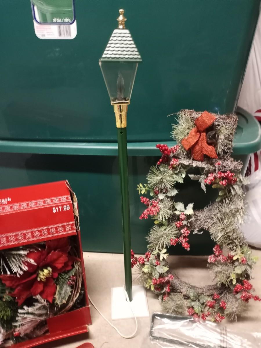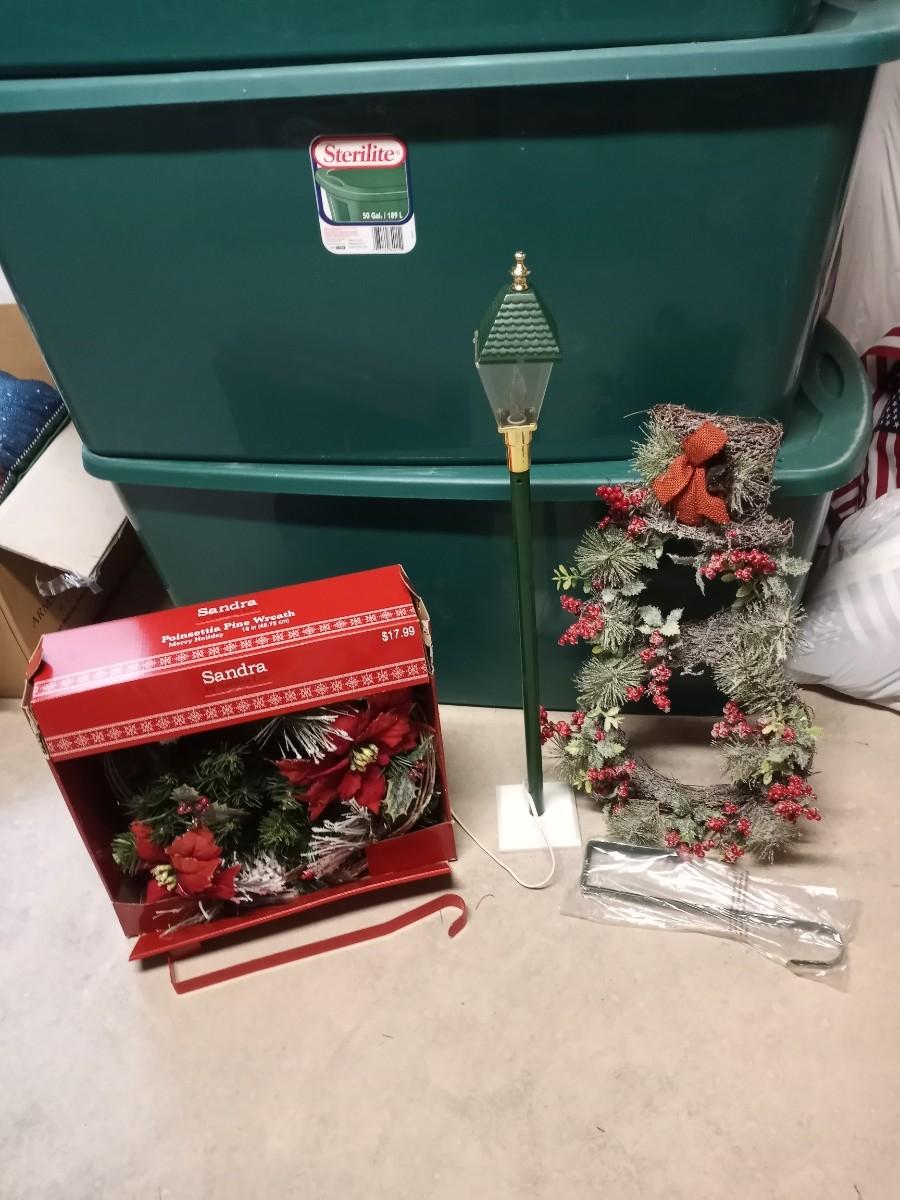 HOLIDAY WREATHS AND SMALL LAMP POST LIGHT