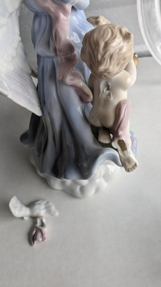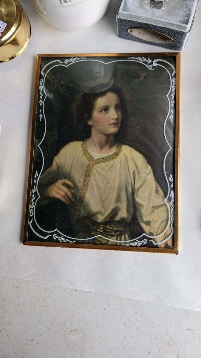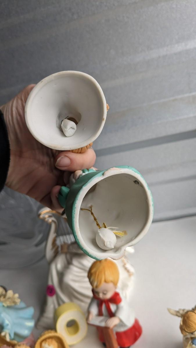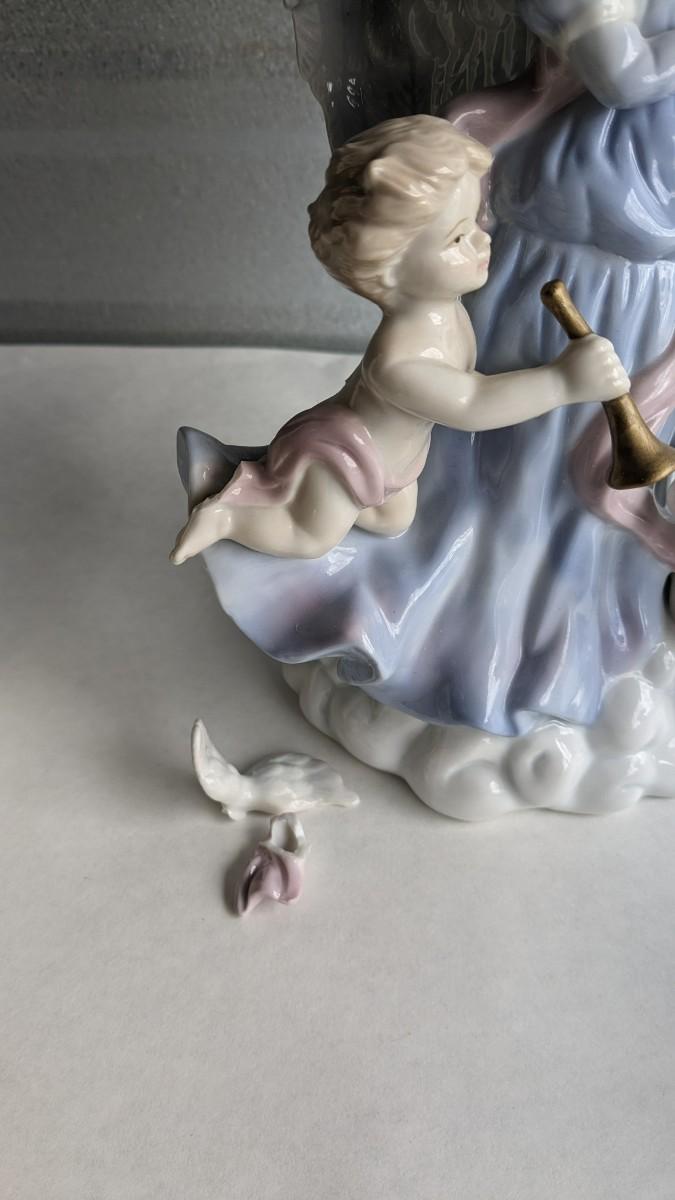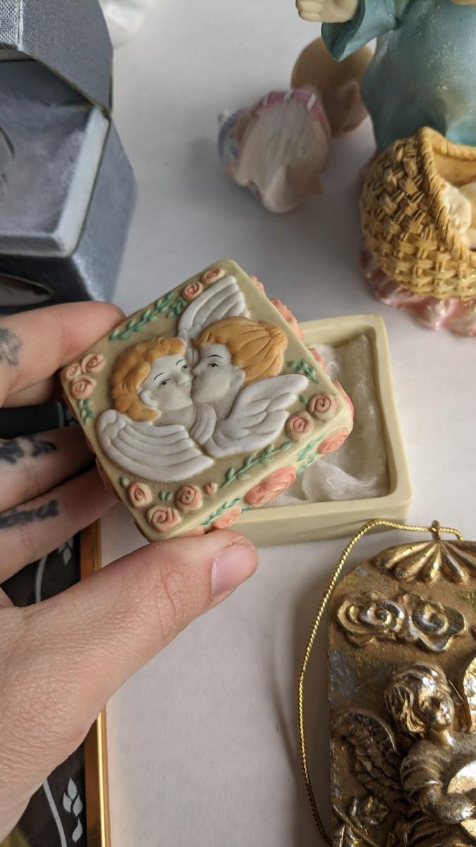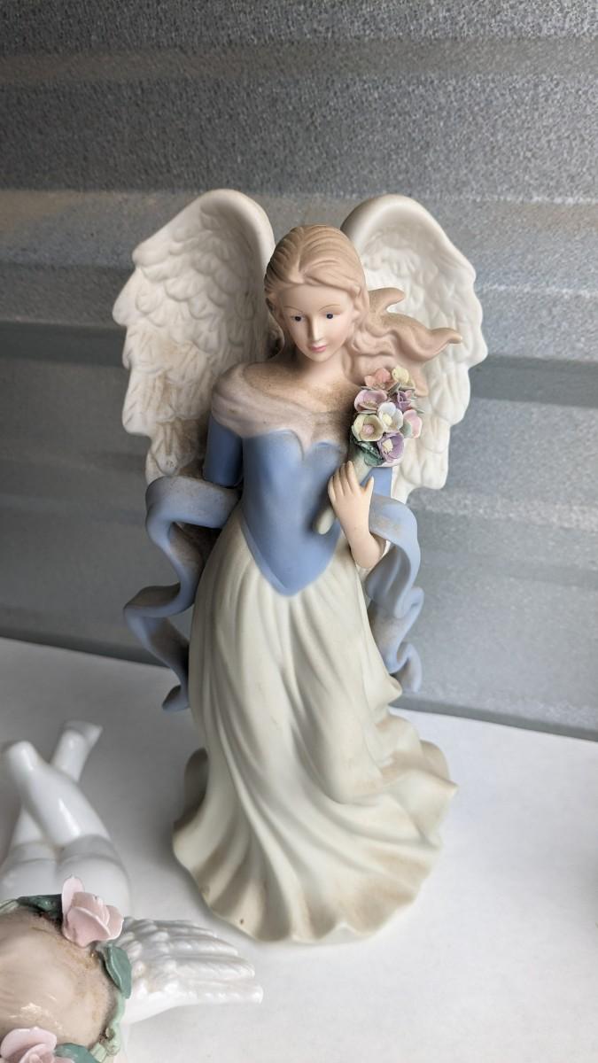 angels, crosses, and some religious images round out this great little lot of faith based items. Please note damage on Lladro style ceramic, easily fixed. Also includes kids wood nativity set by SFC. No shipping. 2616