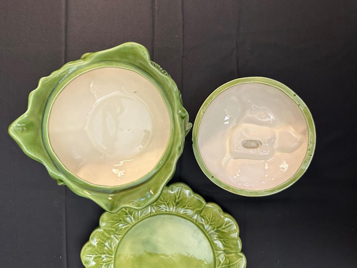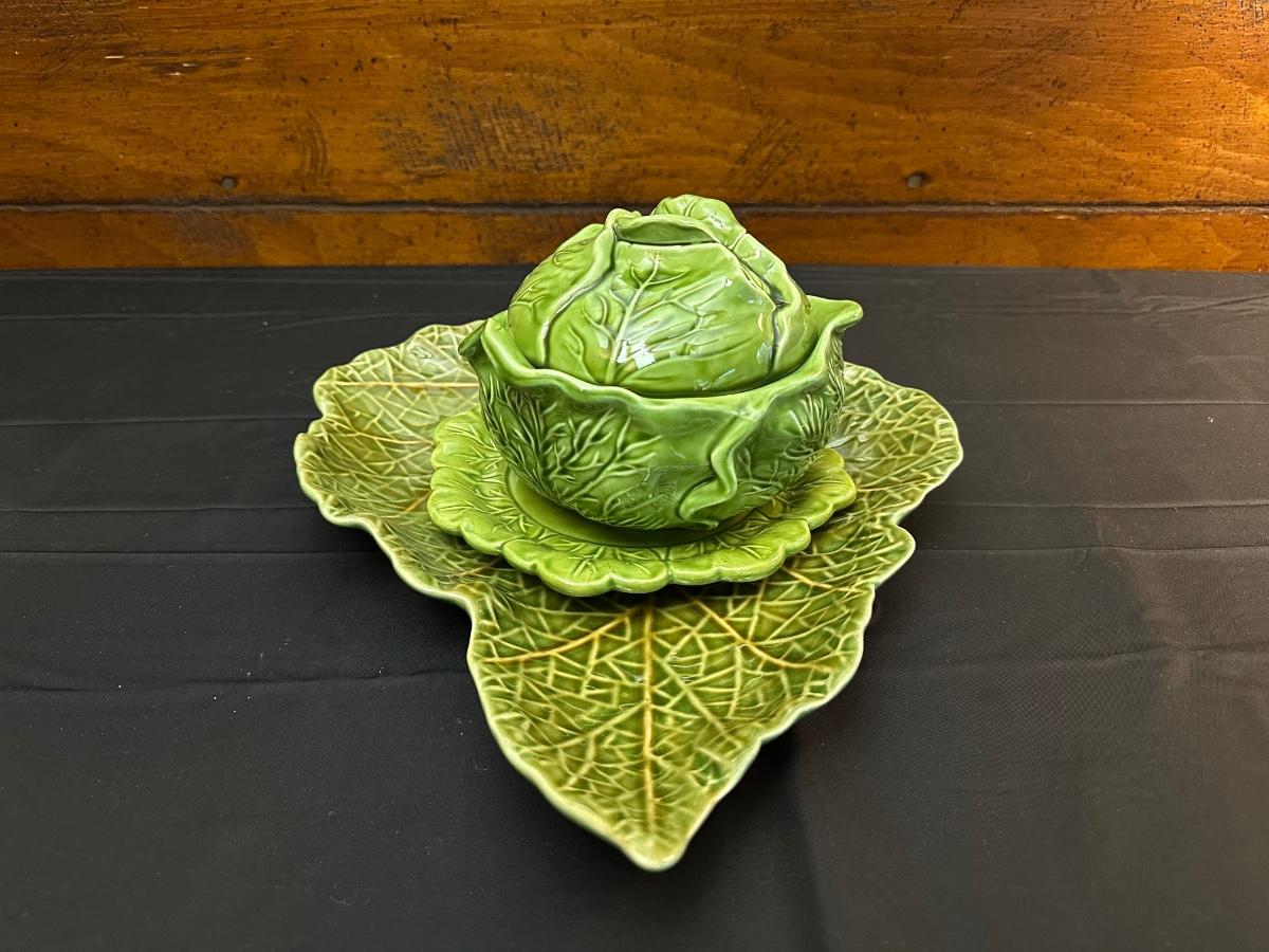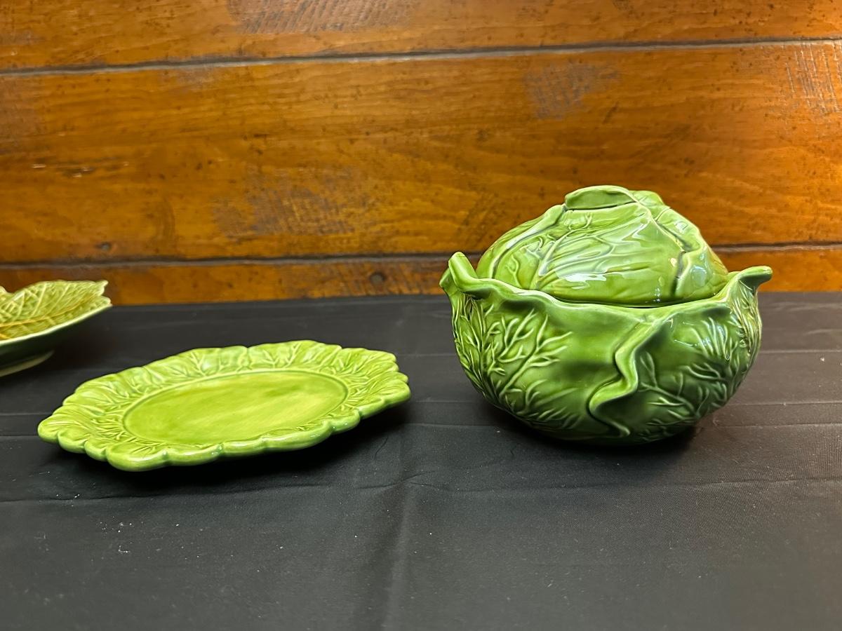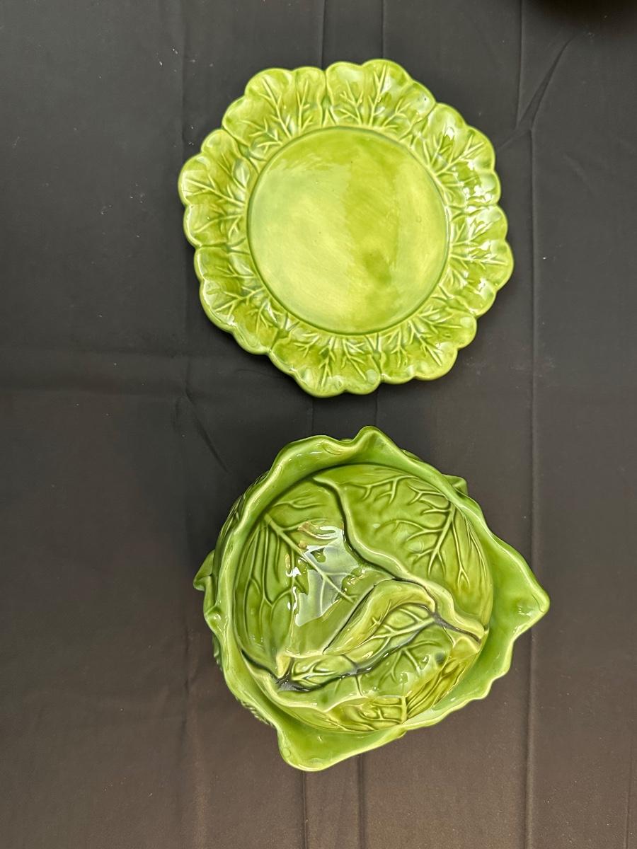 The largest plate is not an official set to the cabbage. Largest plate is branded Stoneware by the Food Network. Please see photos for clarification.