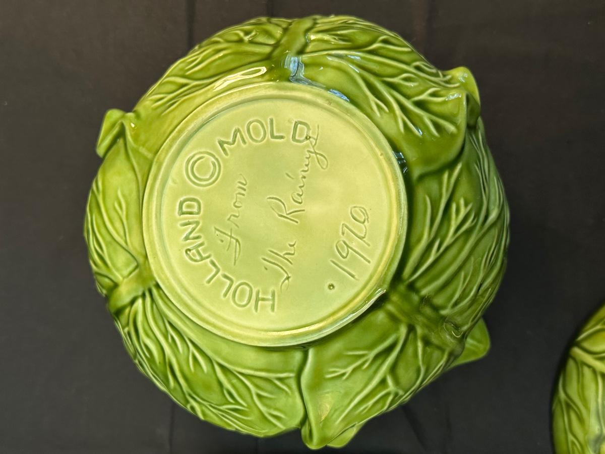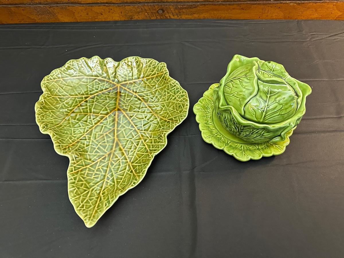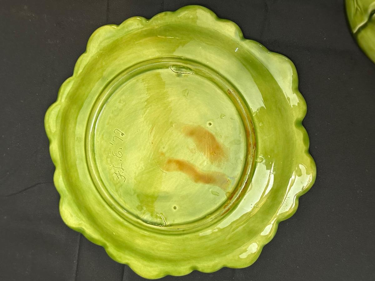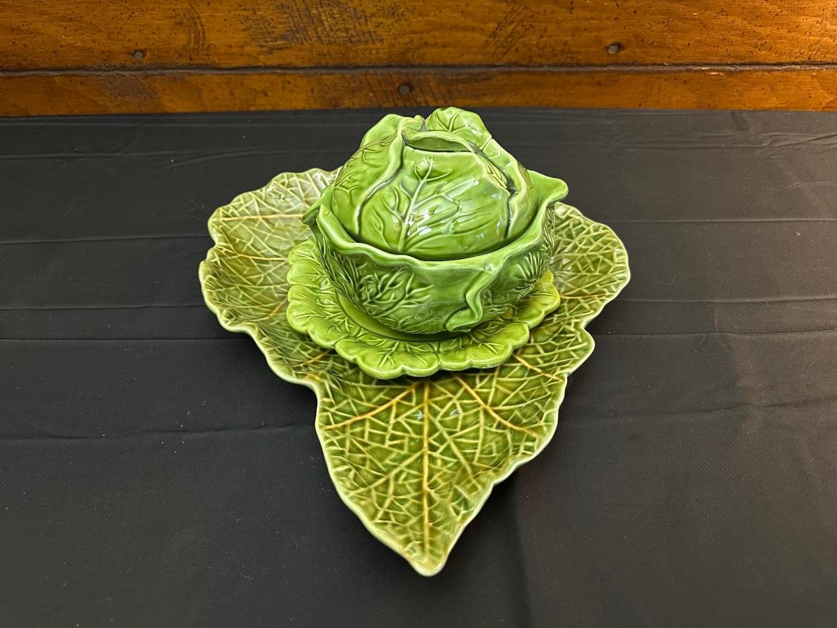 The largest plate is not an official set to the cabbage. Largest plate is branded Stoneware by the Food Network. Please see photos for clarification.