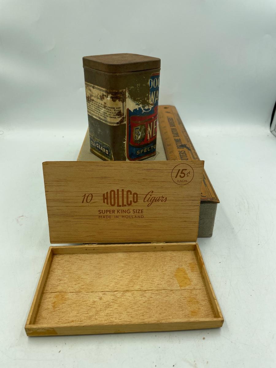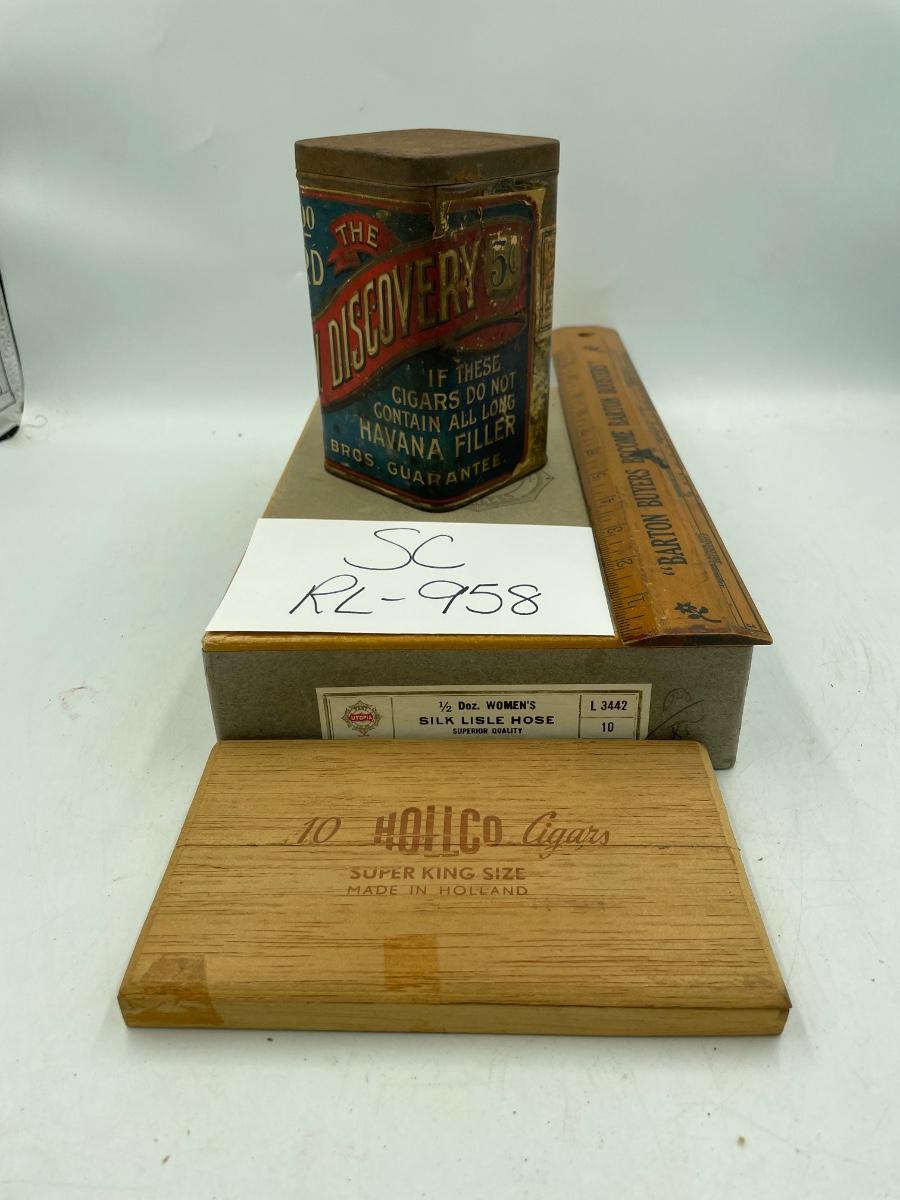Hollco cigar box and New Discovery cigar tin