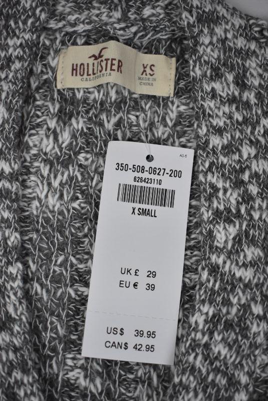 Hollister California Button Up Cardigan Gray/White XSmall Soft, $40 Retail - New