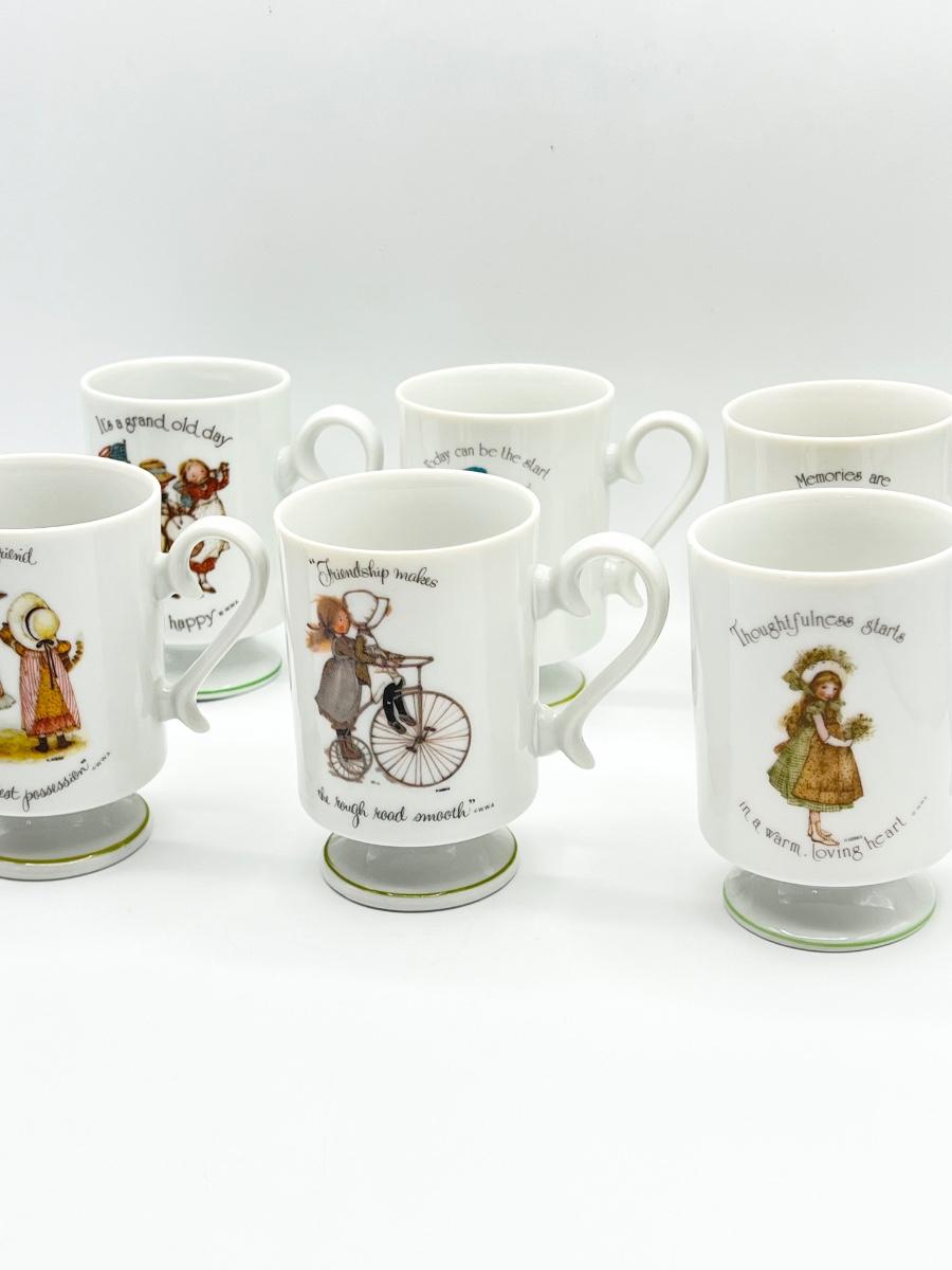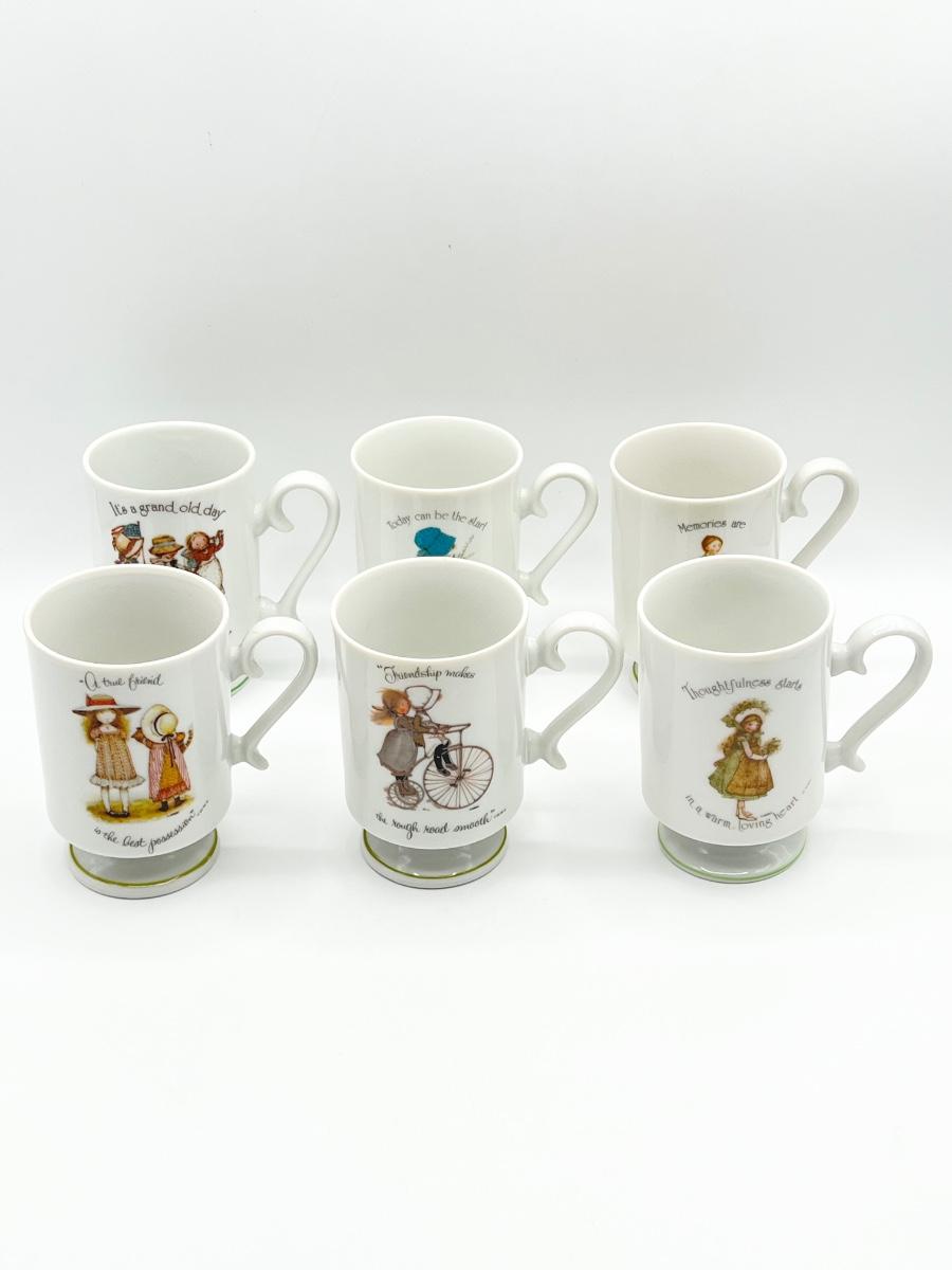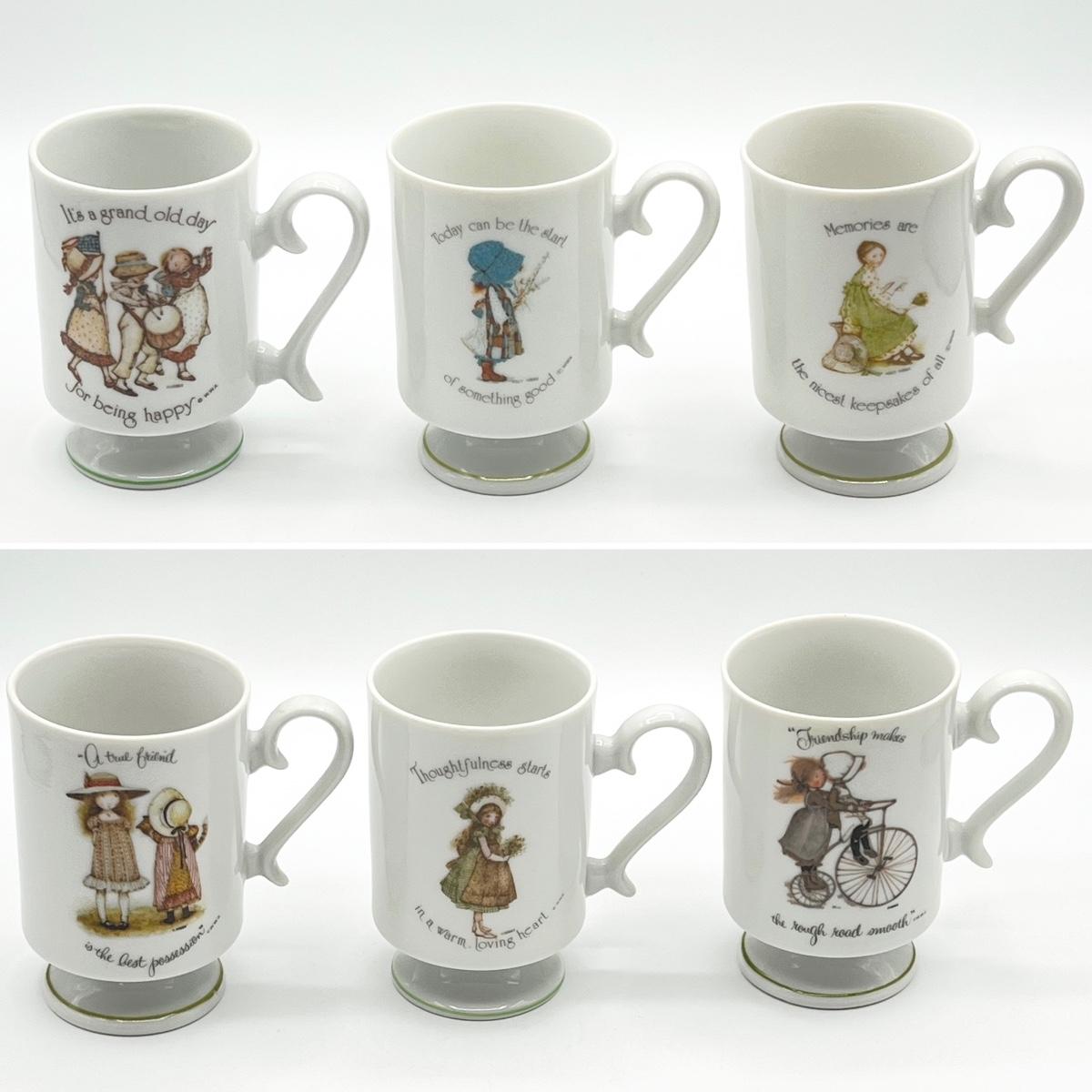 HOLLY HOBBIE ~ Green Band ~ Set Of Six (6) Ceramic Footed Mugs