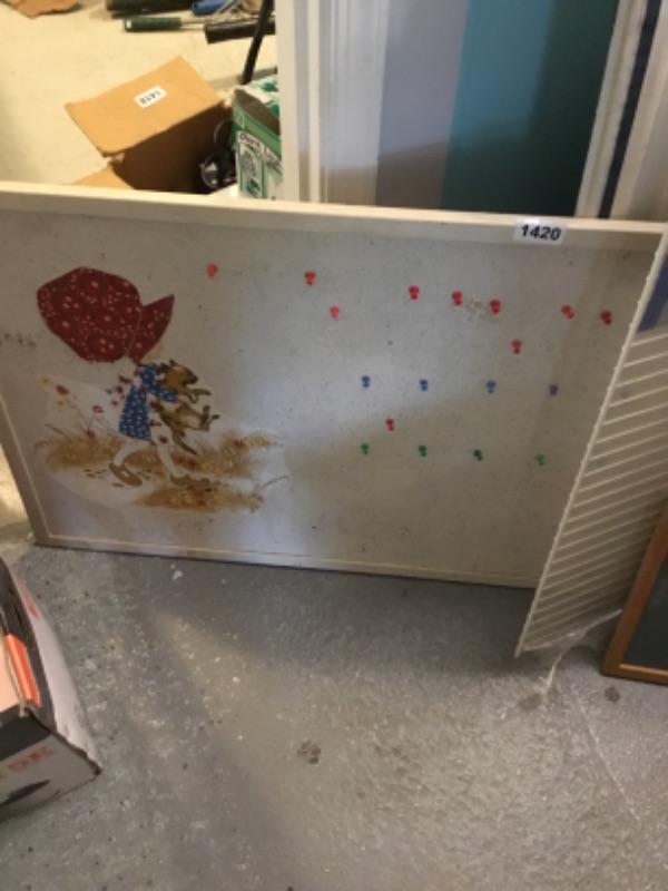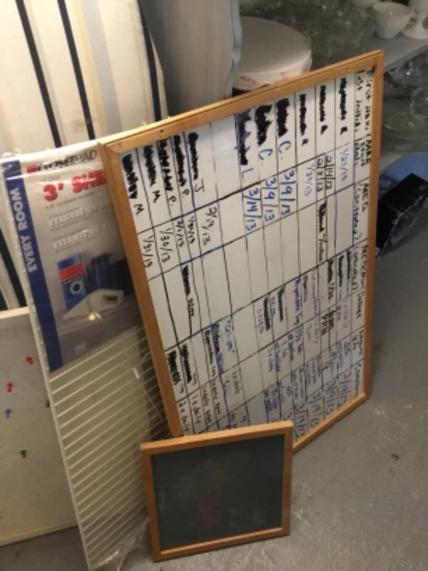 Holly Hobby corkboard, 3 foot shelf, whiteboard, small chalkboard lot 1420