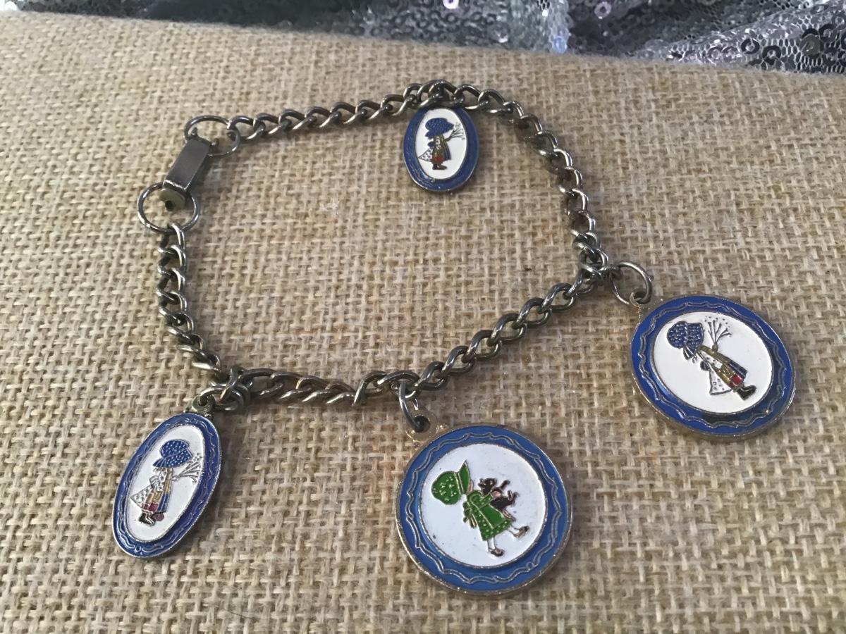 Holly Hobby Girls Bracelet.vintage 4 Pendents Of Holly. Gold Tone Chain.A.G.C.