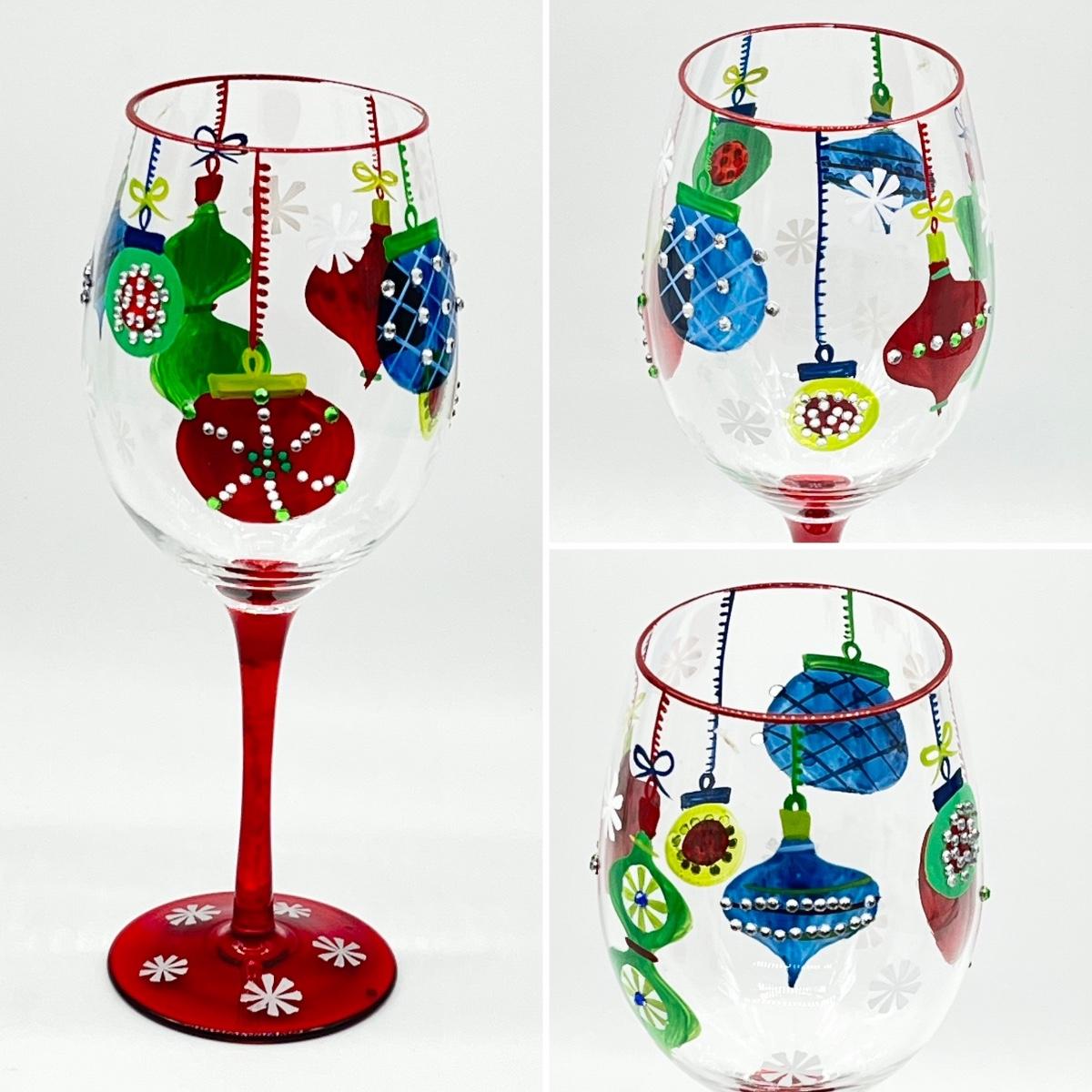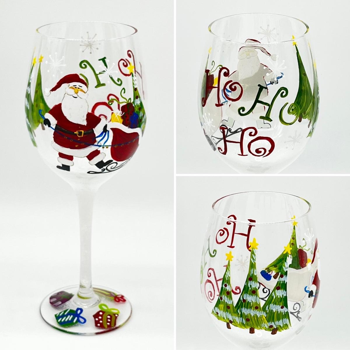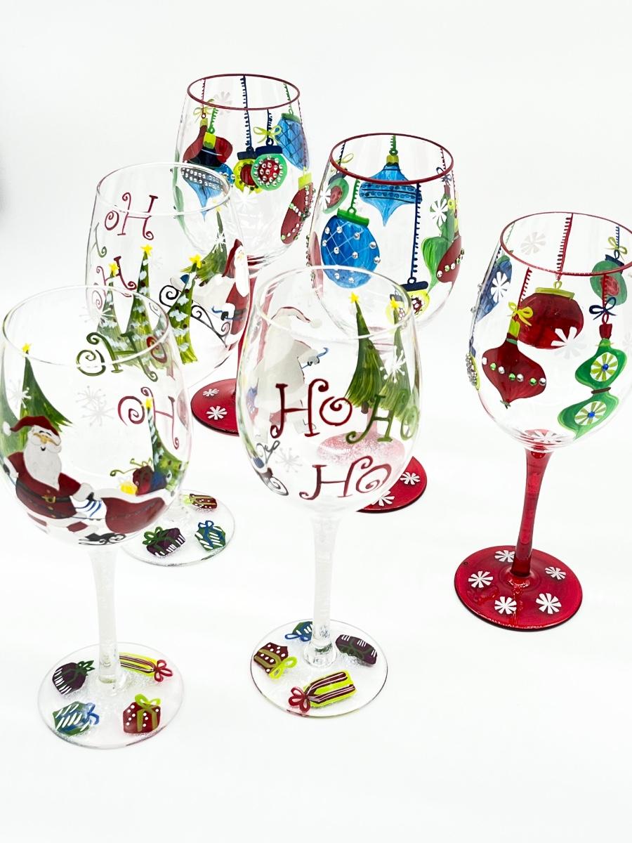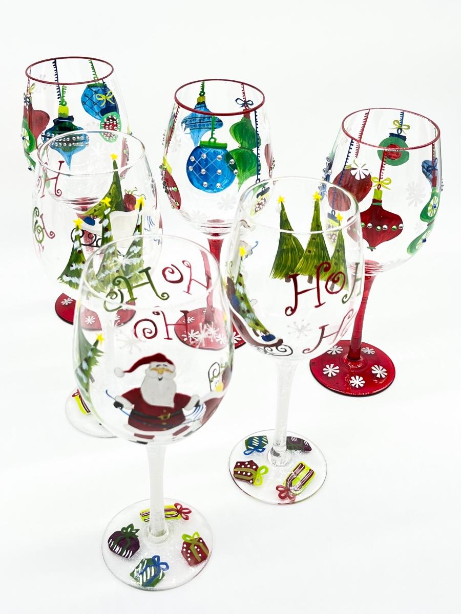 Hand Painted Holly Jolly Holiday Wine Glasses ~ Set Of Six (6)