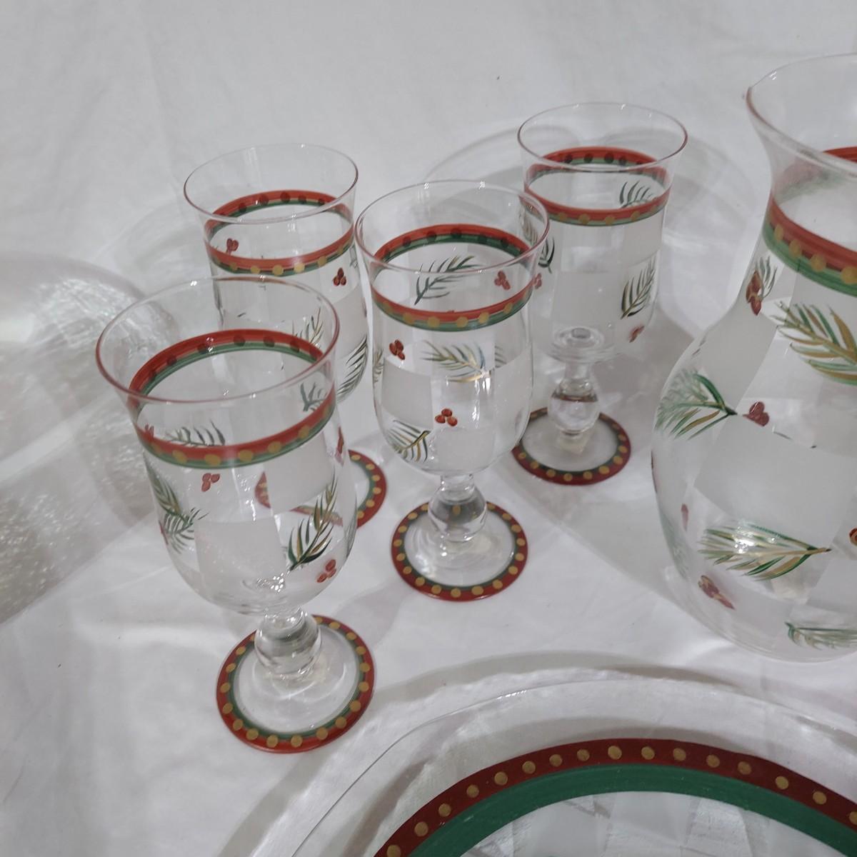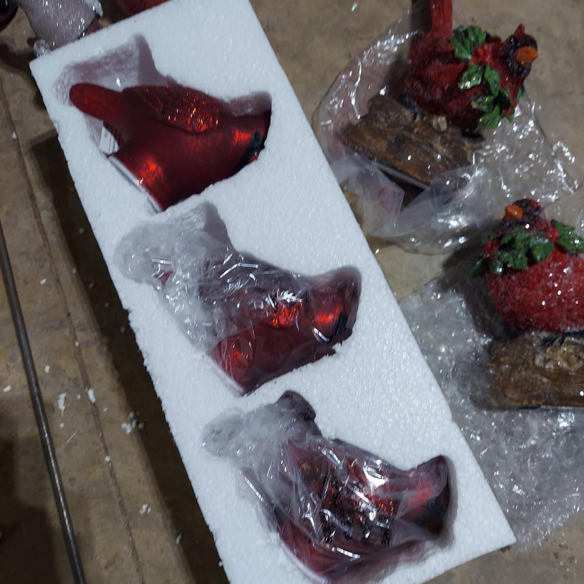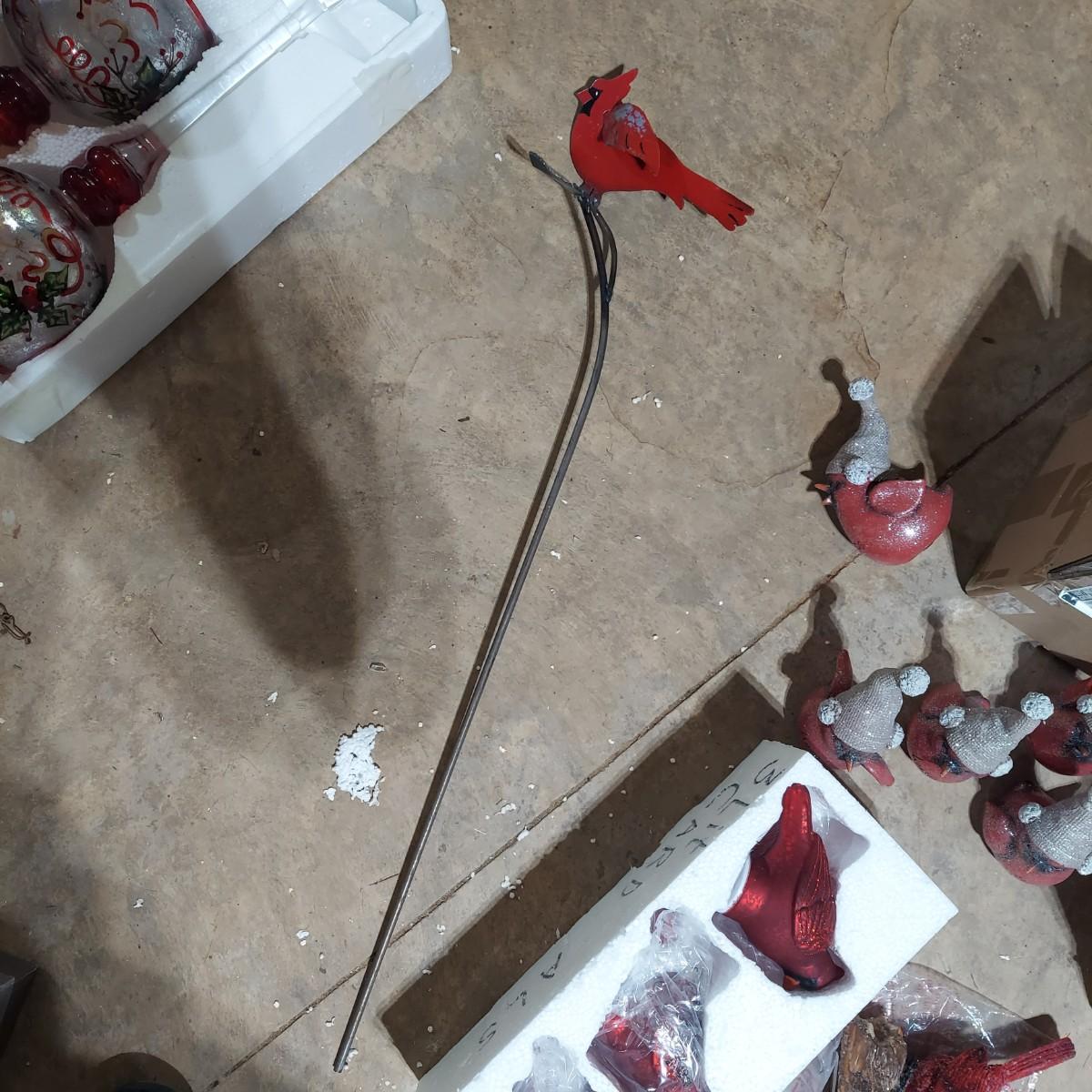 Lot includes dishes and decor with holly print as well as several pieces of cardinal decor. The pitcher is 9.5"H and the serving platter is 13"D across. Please see photos for details. Local Pickup Only
