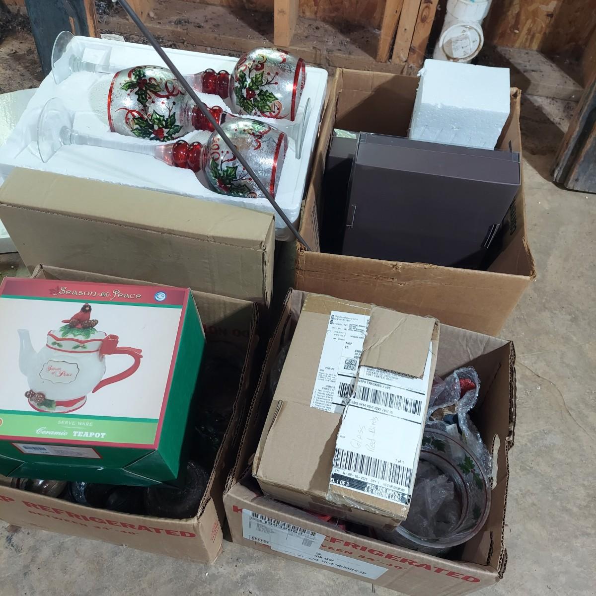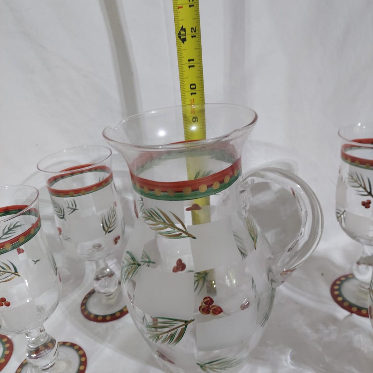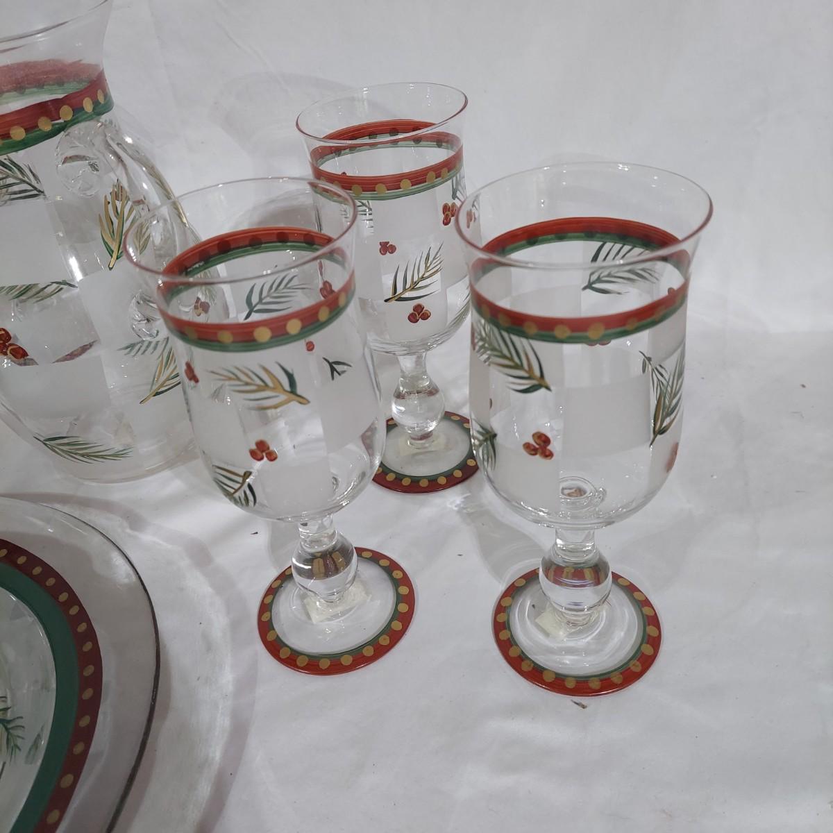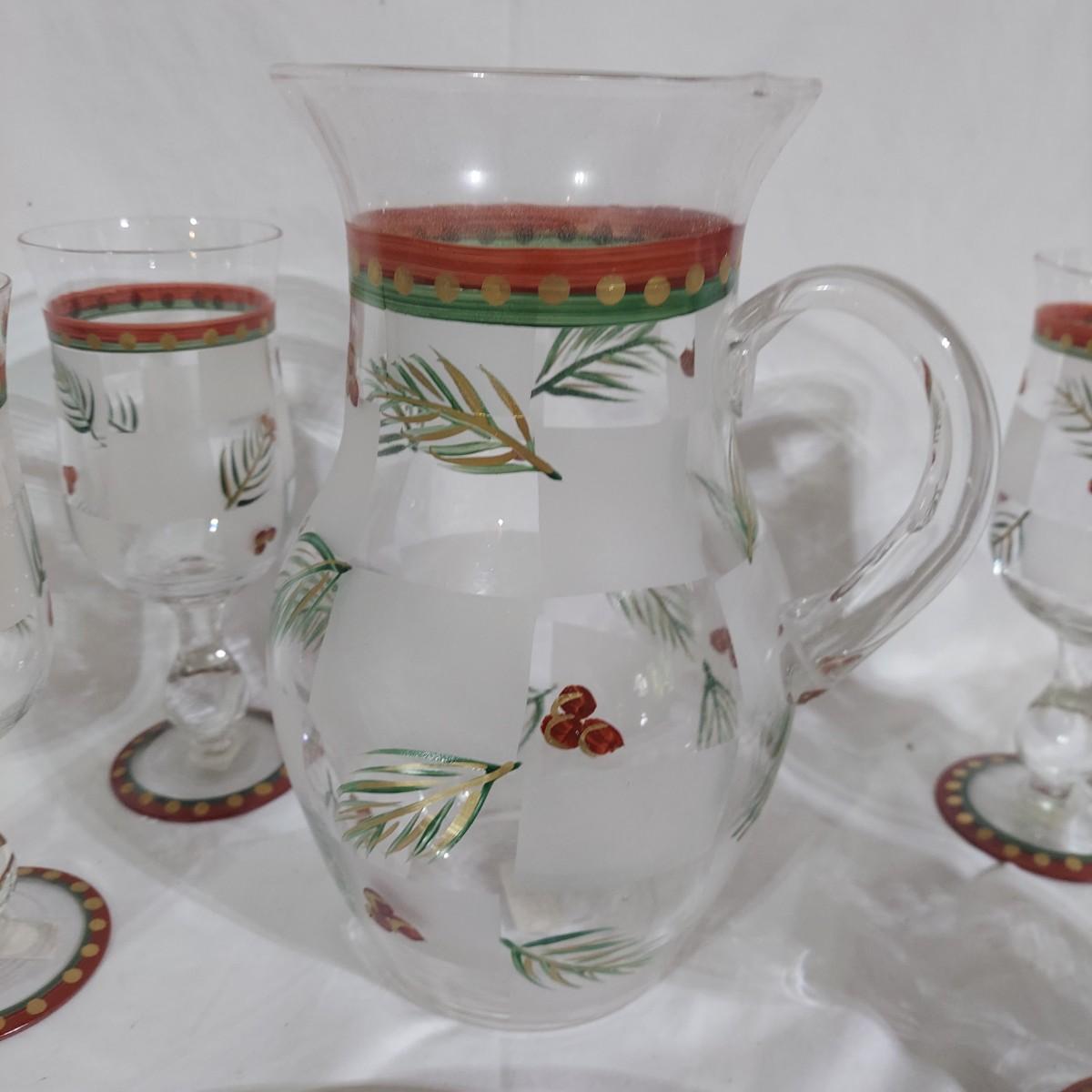Lot includes dishes and decor with holly print as well as several pieces of cardinal decor. The pitcher is 9.5"H and the serving platter is 13"D across. Please see photos for details. Local Pickup Only