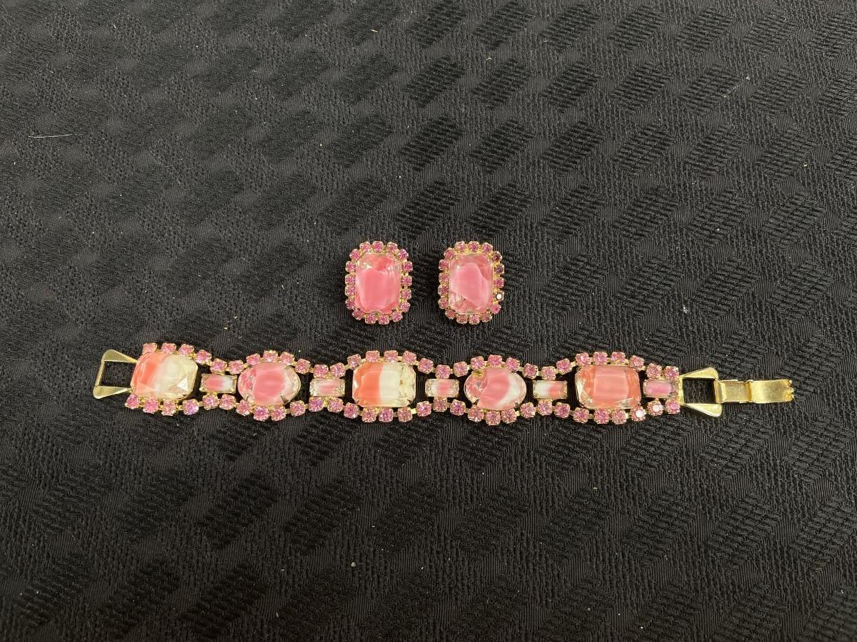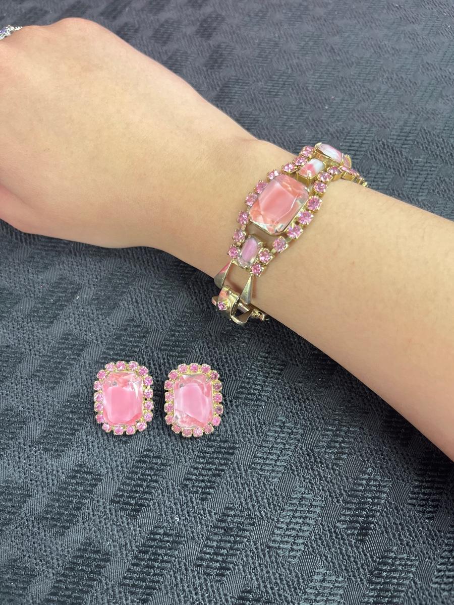 Hollywood Glamour 1960s Vintage Pink Art Clip On Earrings and Bracelet