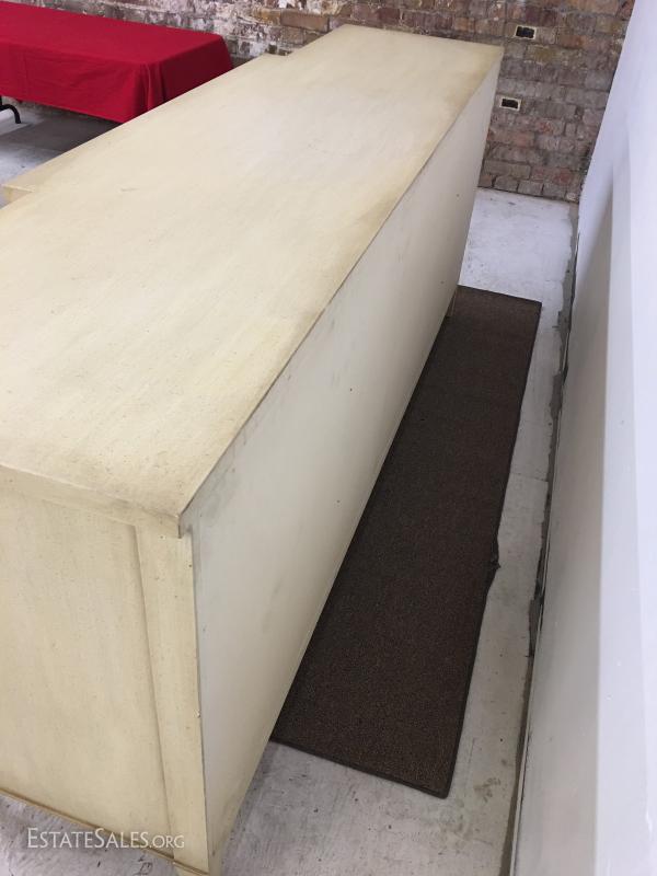 In good overall condition, measures 76" long and 20" deep, 32" tall. Made by Baker Furniture and sold at Dinwoody's circa. 1960. Missing one bail on the right side handle.
