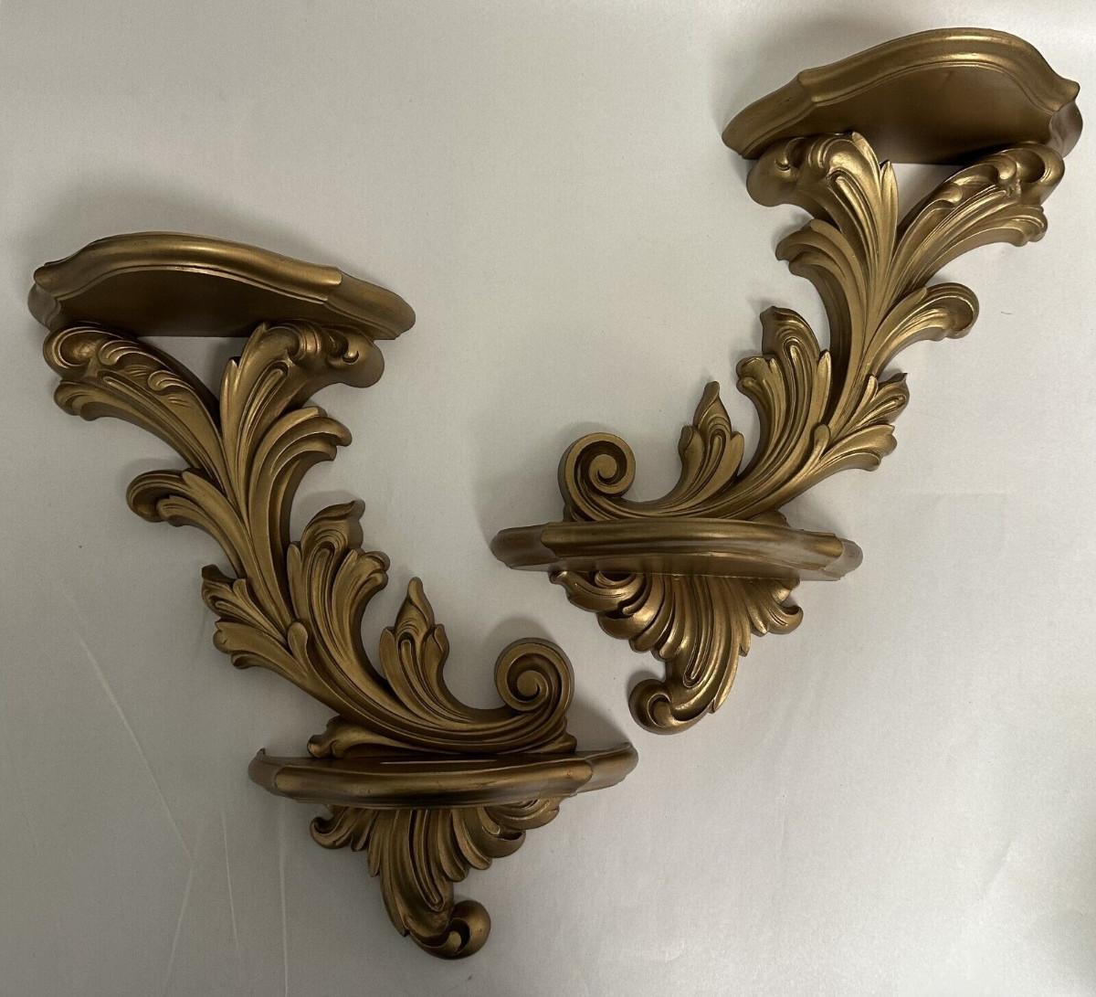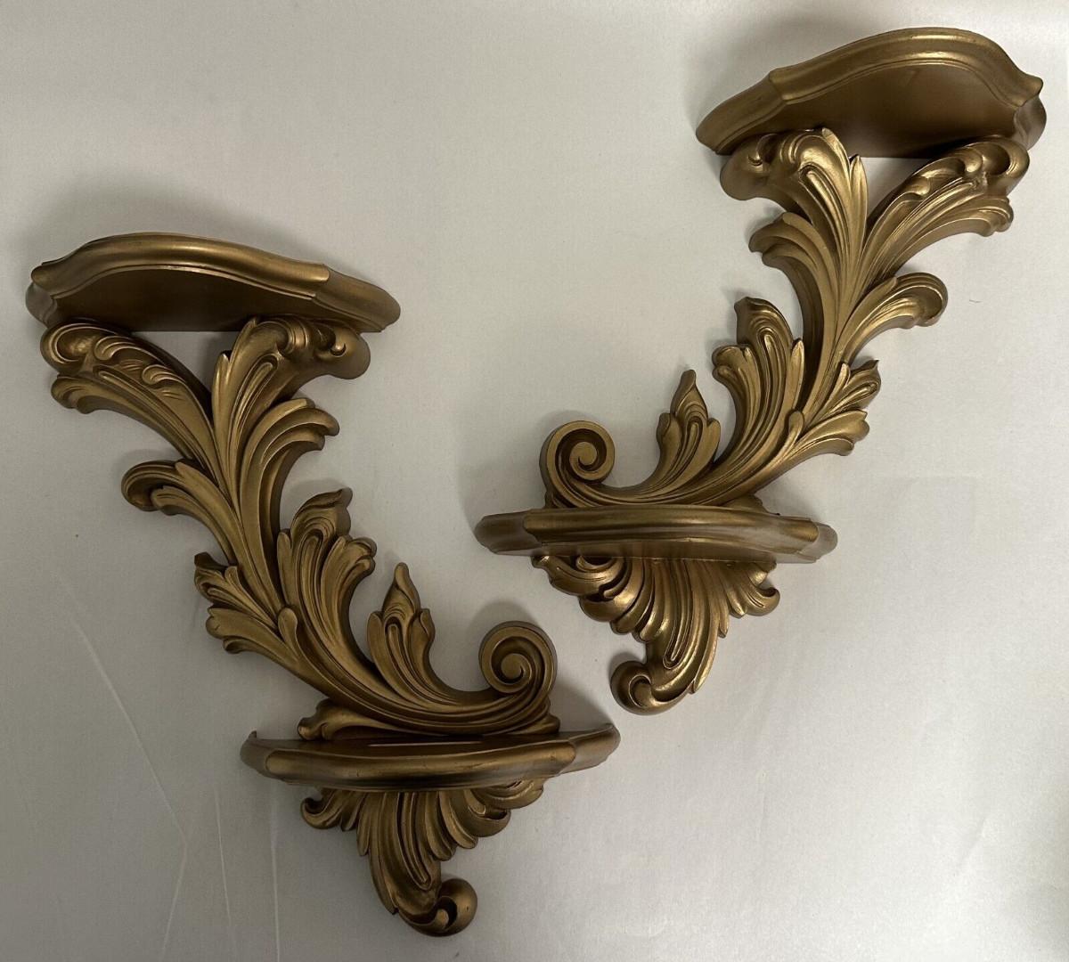 Here are a pair of elegant goldtone accent shelves from HOMECO circa 1977...13 inches high..7.5 inches wide...as shown..Light use“🦆