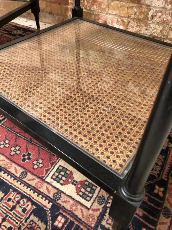 Hollywood Regency Style Lamp Tables, Rattan, Glass