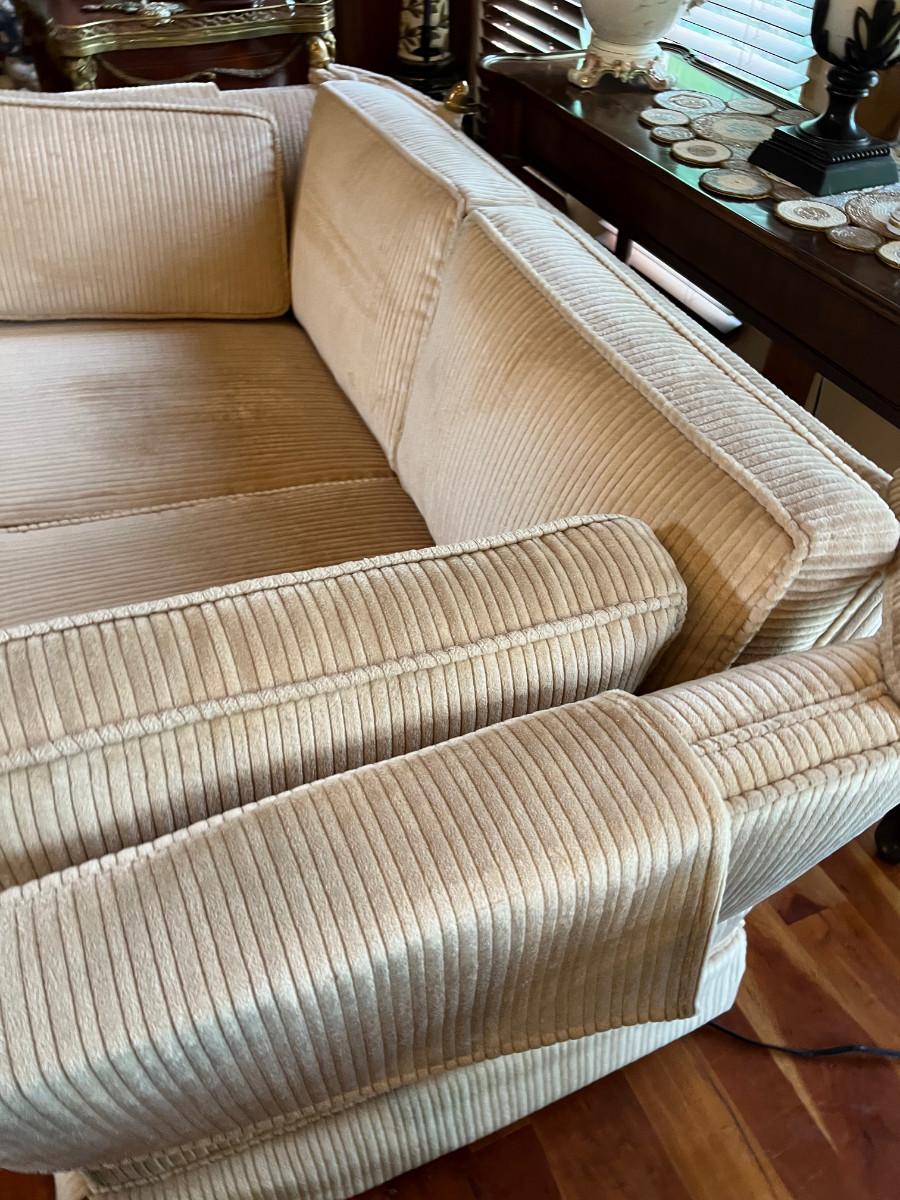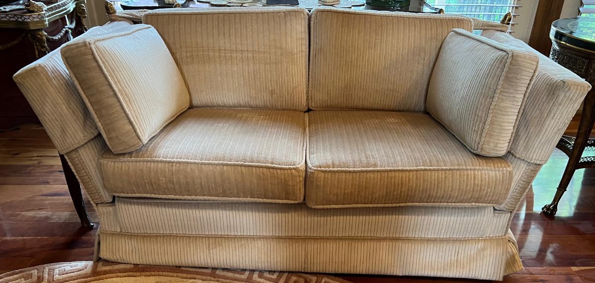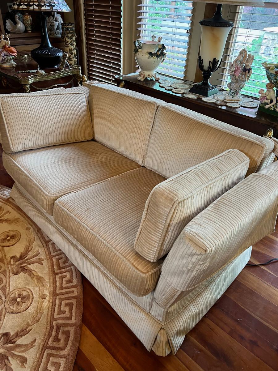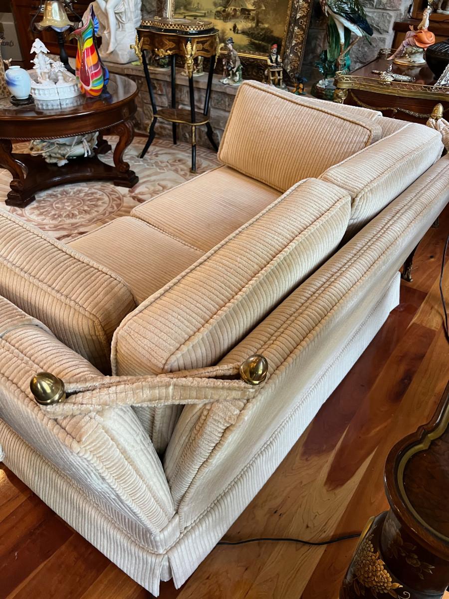 Beautiful condition on this classic Hollywood Regency style chair, fabric is clean and in near mint condition. If you remember Crawford & Day on Highland drive in SLC this is exactly what you find there in the 1970's. We are also selling the sofa and matching chair in a separate auction.