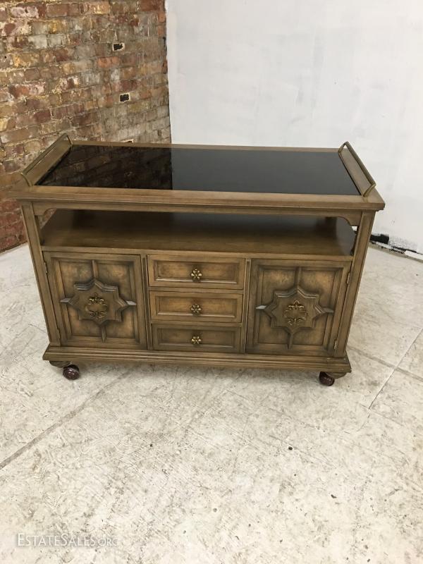 Hollywood Regency Style Server Wheeled Credenza Cabinet