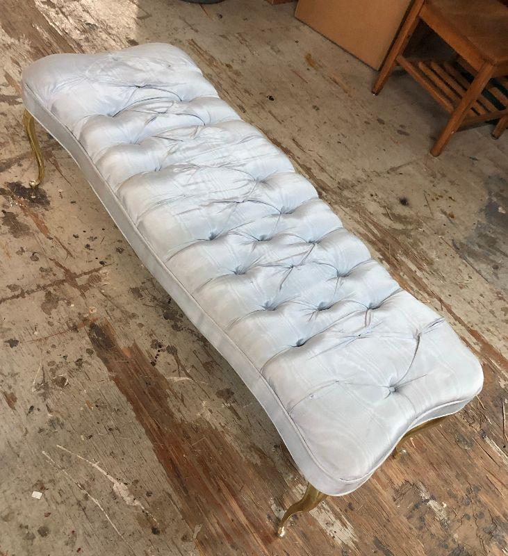 Good condition on this elegant 46 x 16 x 16" upholstered bedroom bench..Hollywood Regency style...