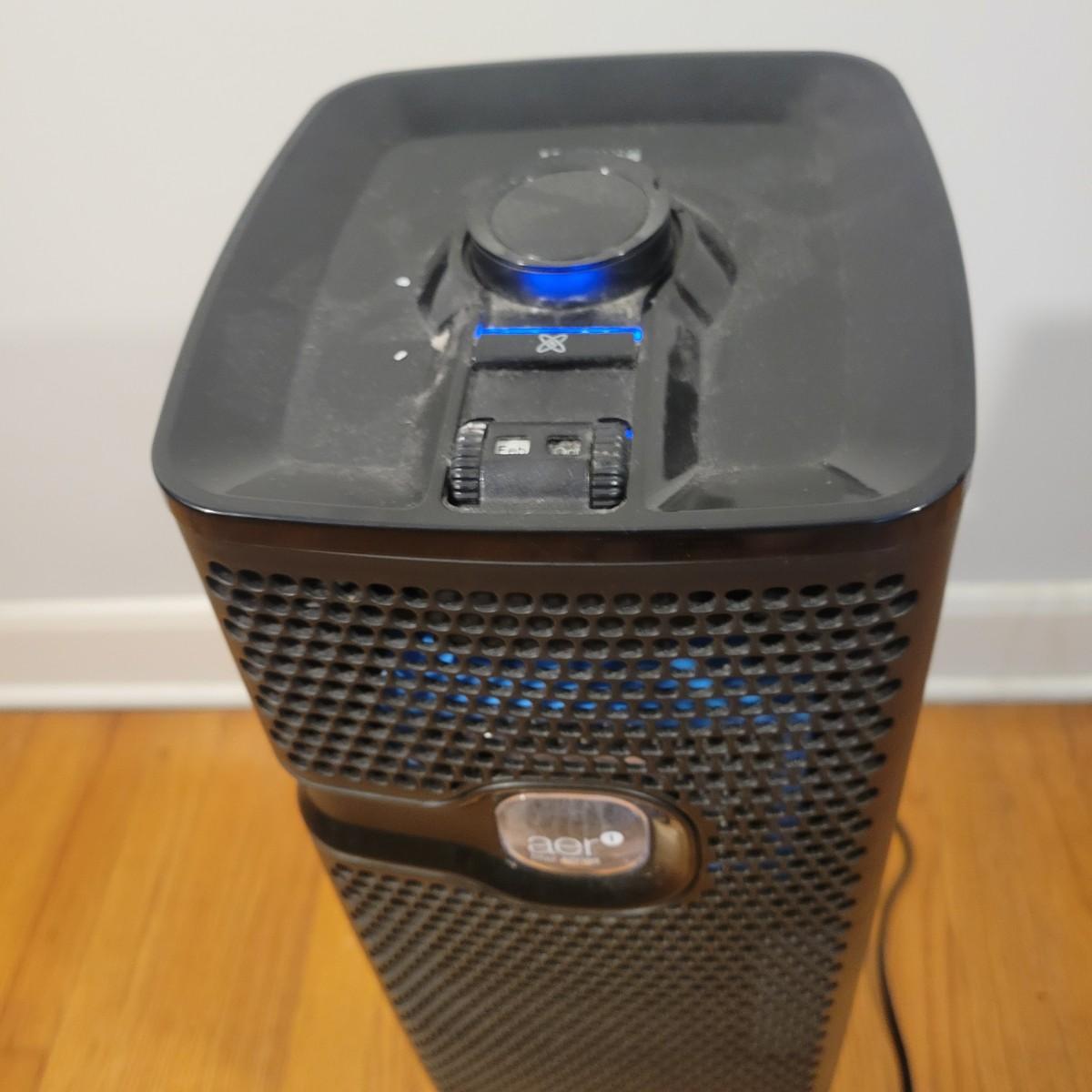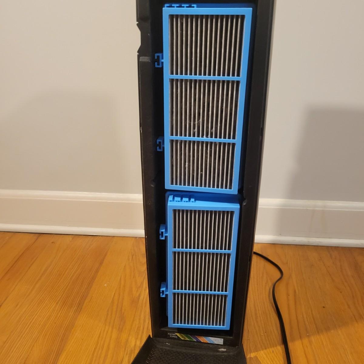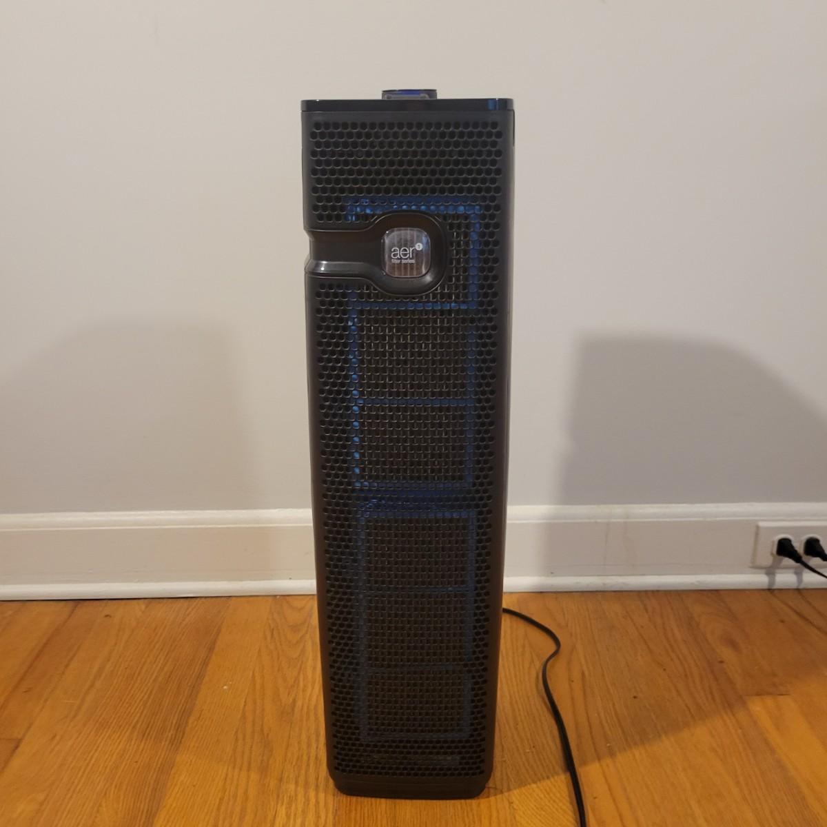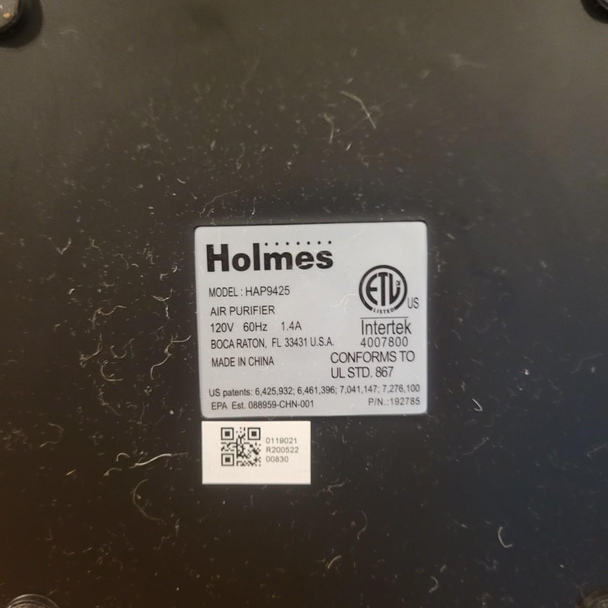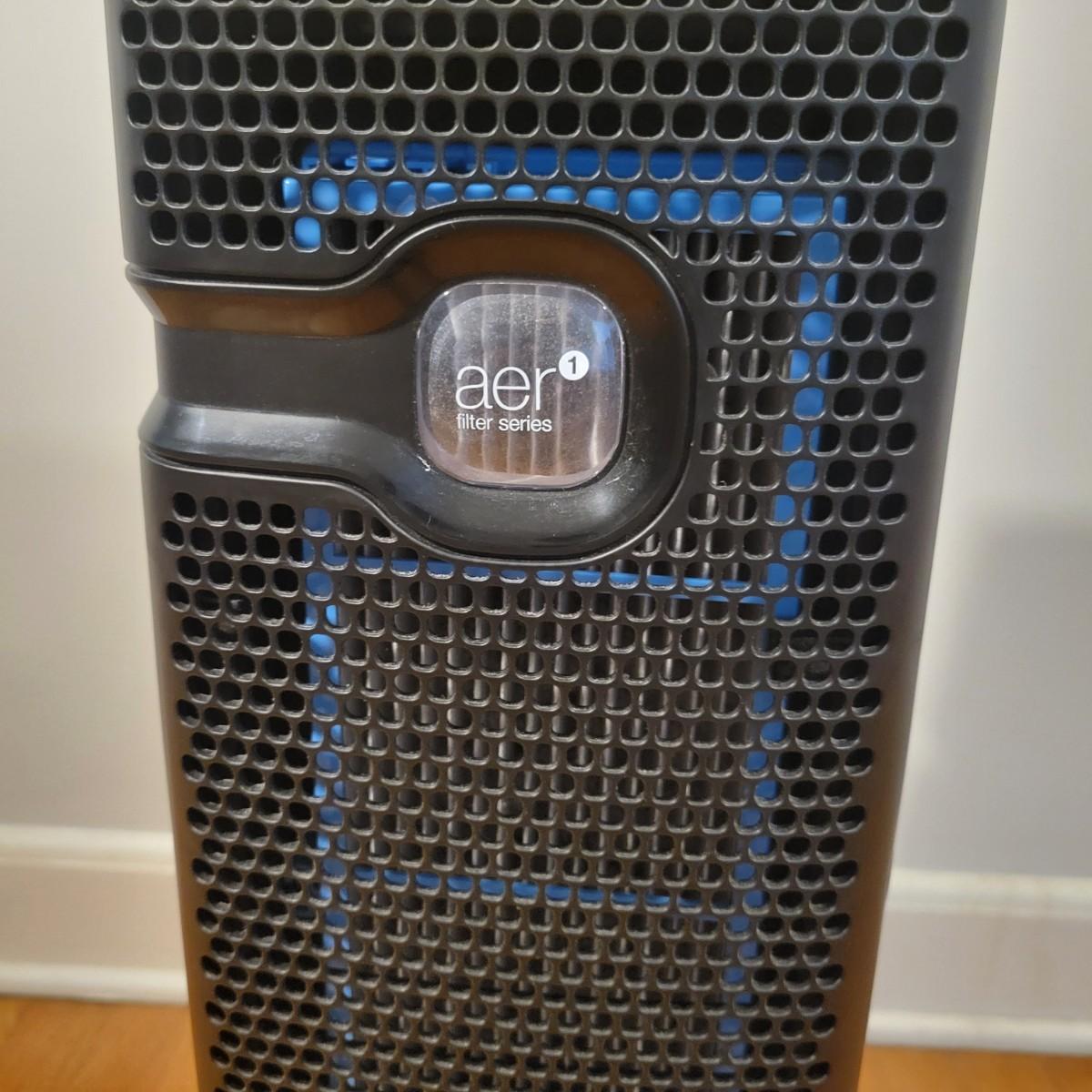 Holmes air purifier for large rooms. Model HAP9425, aer1 Tower Purifier. Purifier was tested and works. This unit has replaceable filters and a variety of settings. Measures approximately 7" x 7" x 26". Local pickup only.