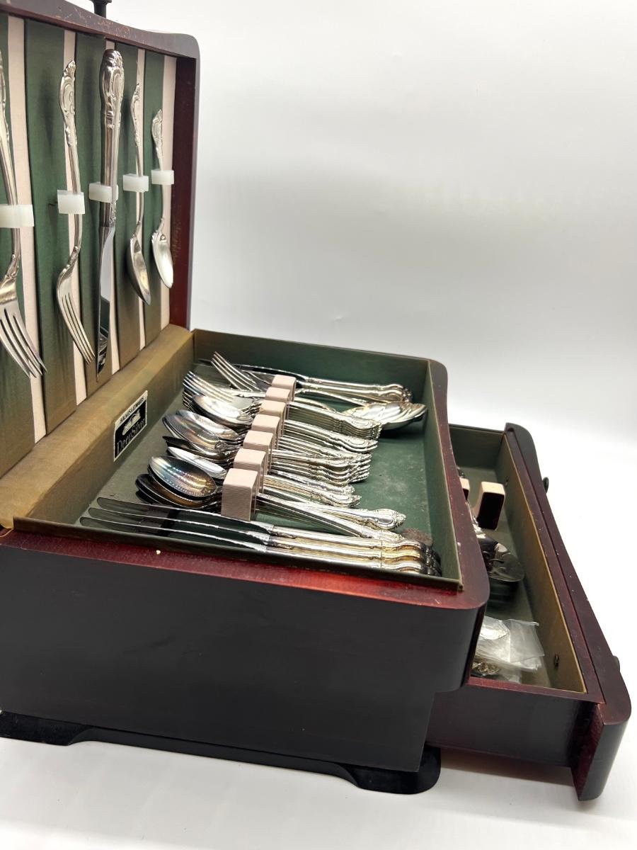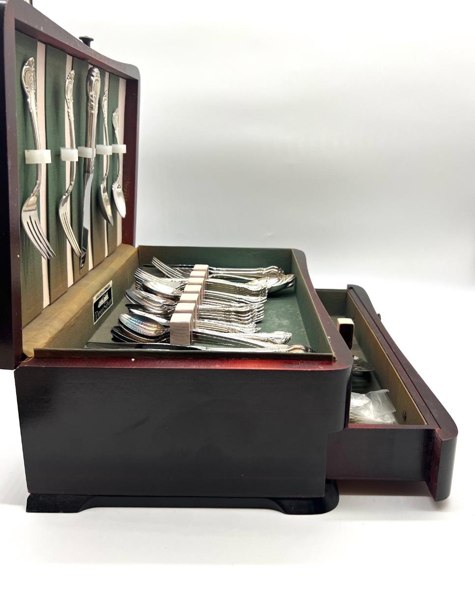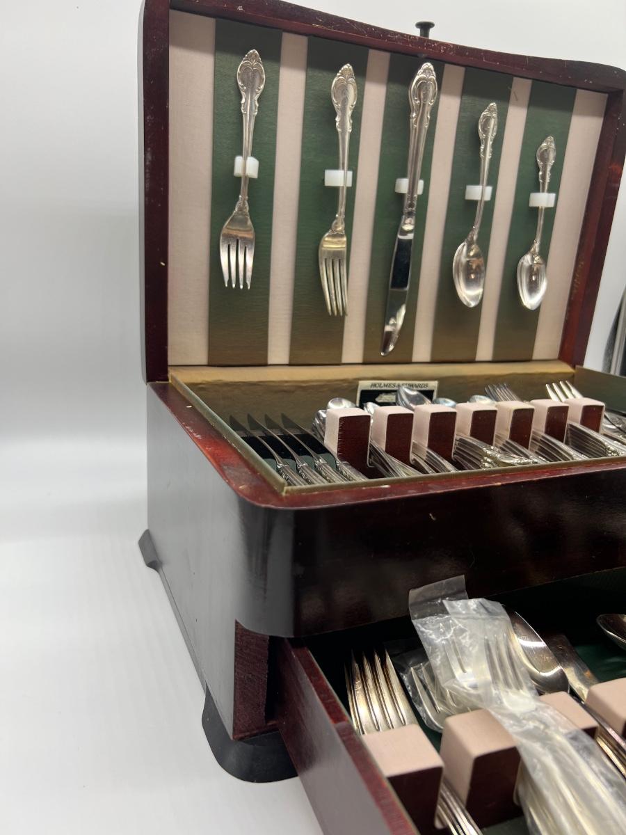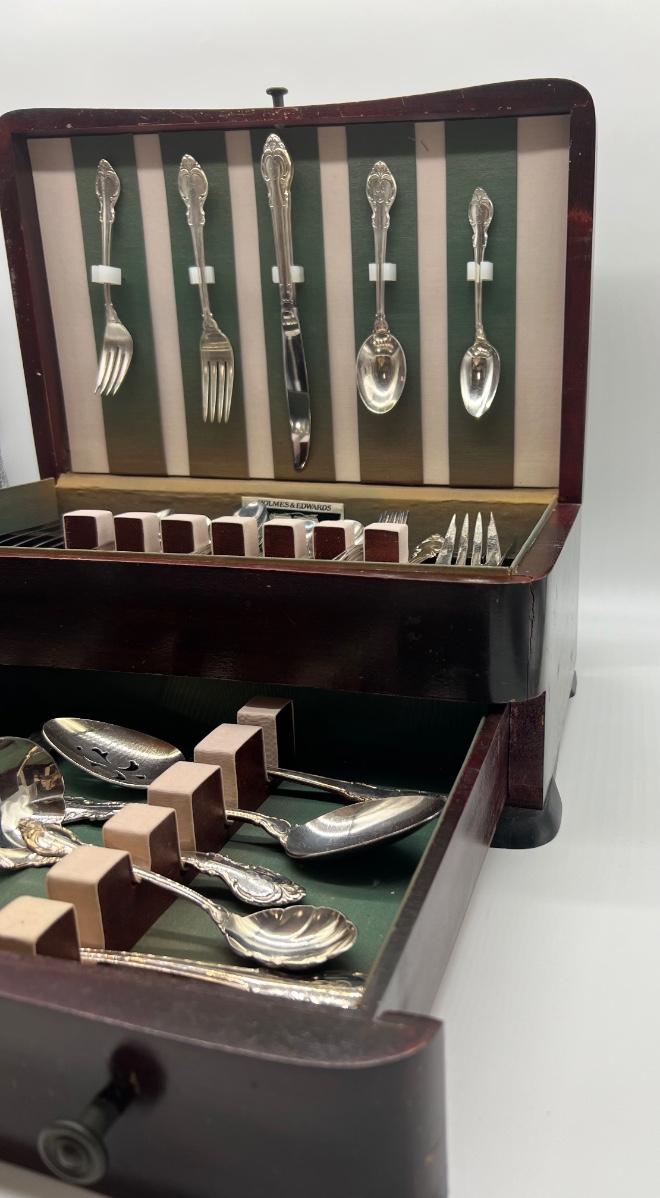 75 Pieces total Holmes & Edwards Deep Silver Flatware Set silver plated set with box. Purchased in 1958.