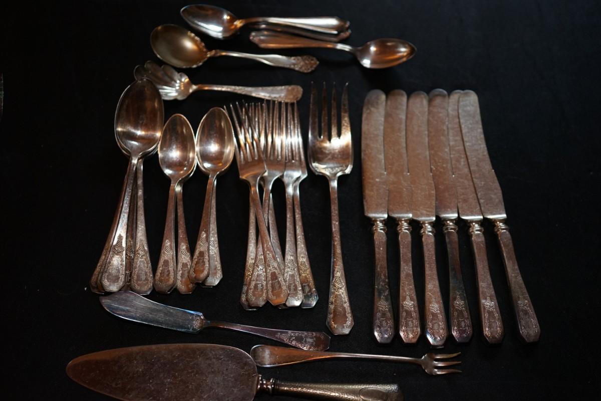 dinner knives, dinner forks, teaspoons, only 5 soup spoons.