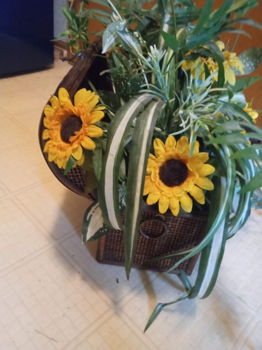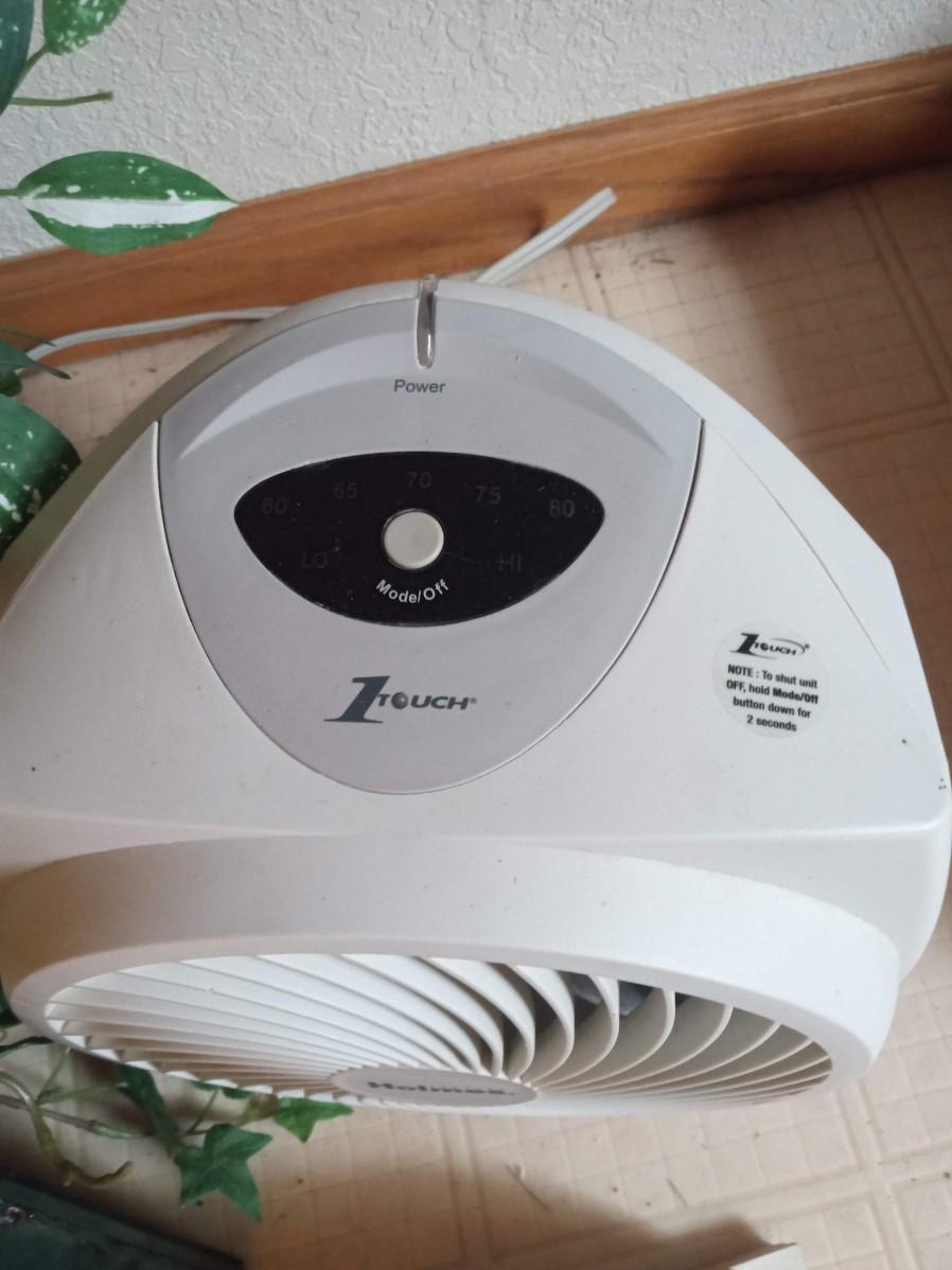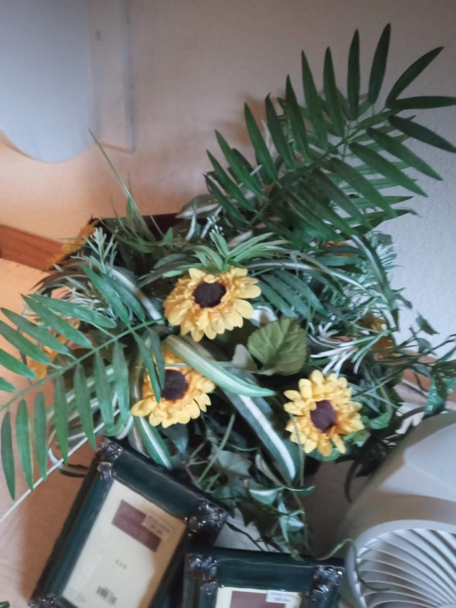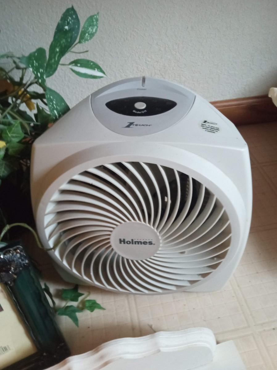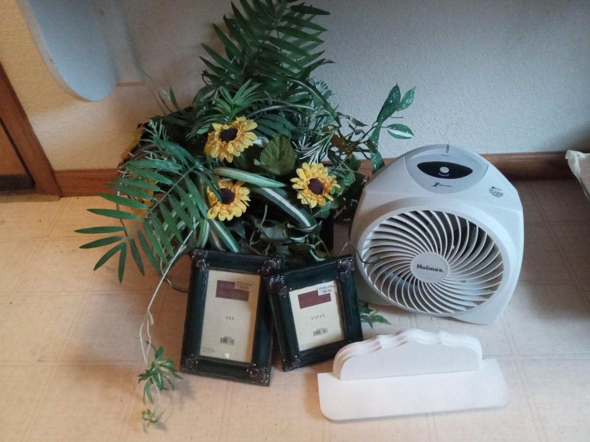 HOLMES ELECTRIC HEATER, WICKKER CHEST WITH FLOWERS AND GREENERY, PICTURE FRAMES