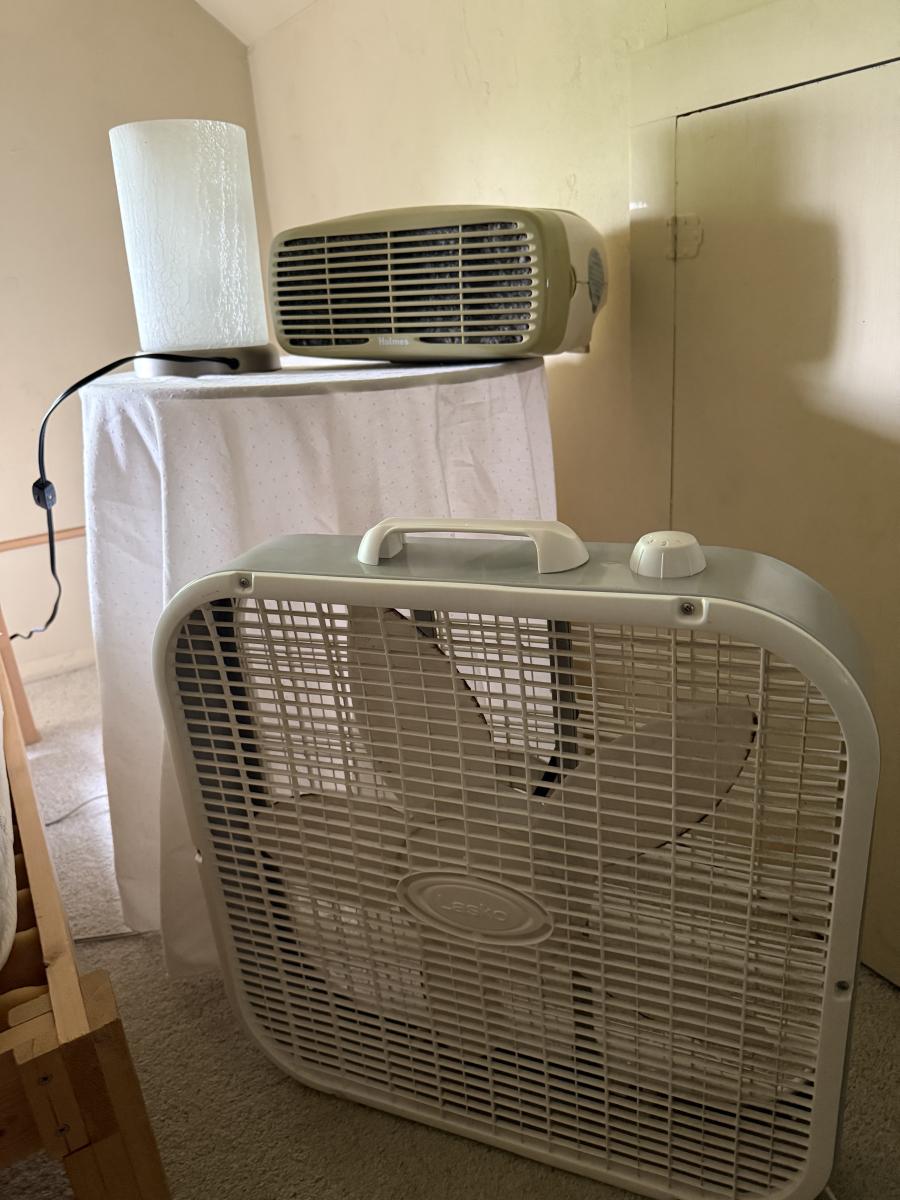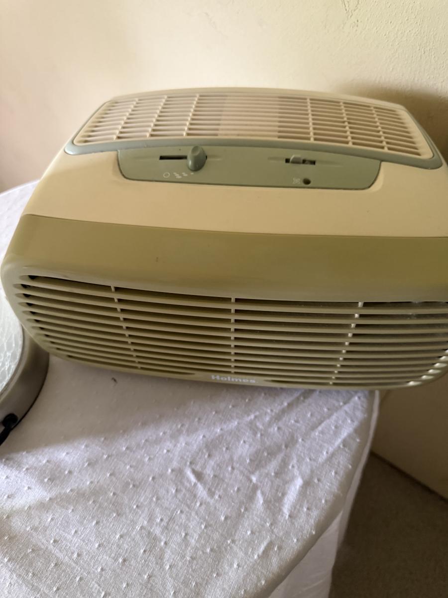Holmes Purifier, Lamp, Fan, Wooden side table