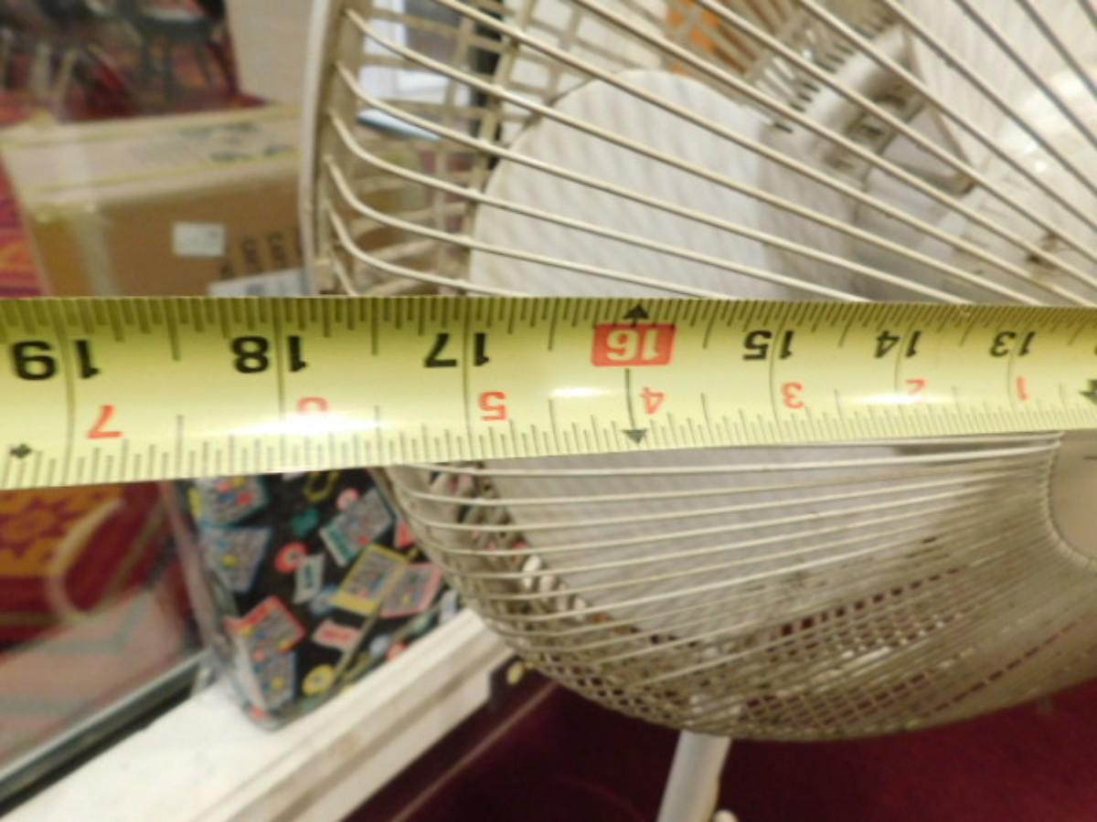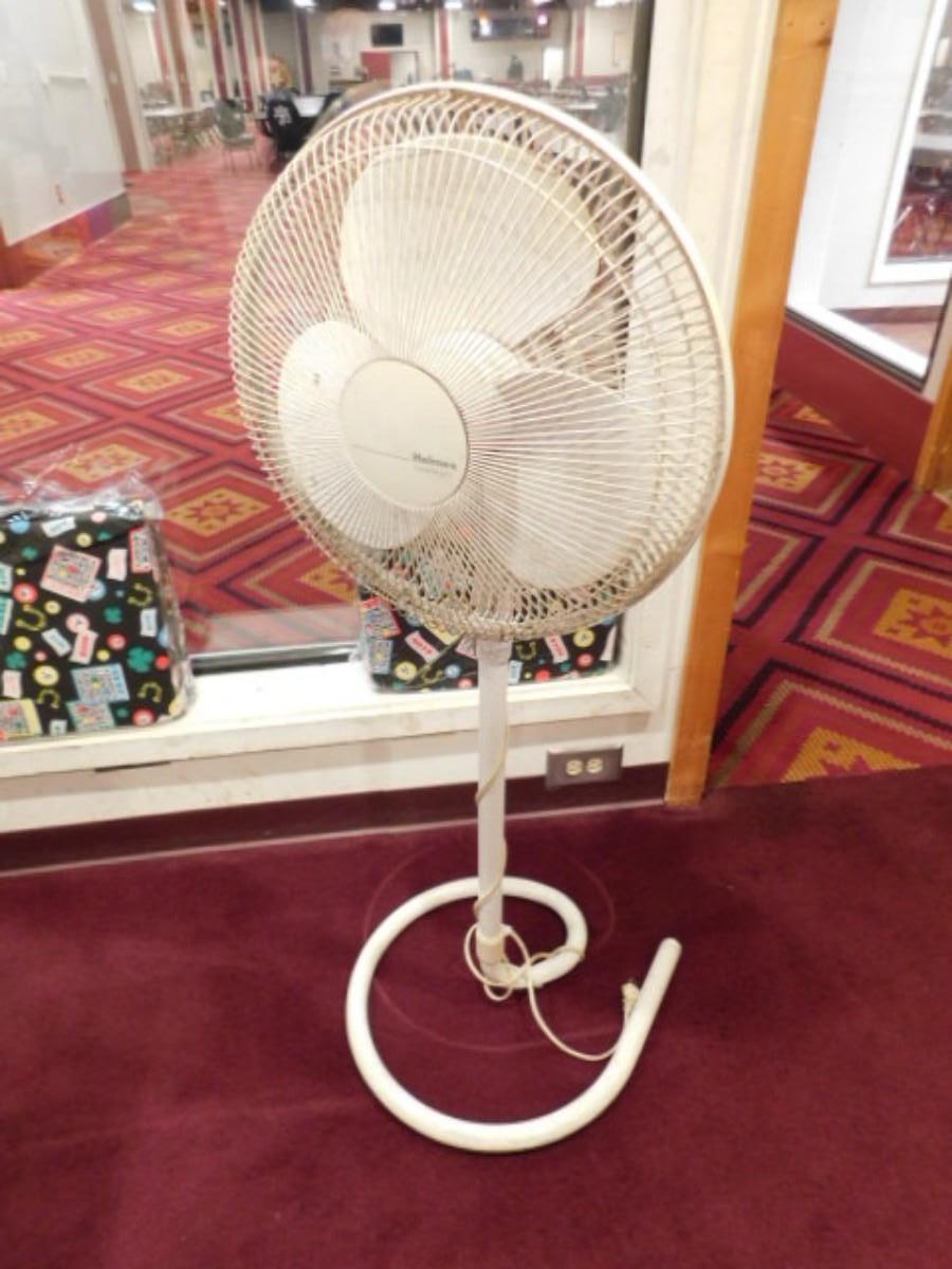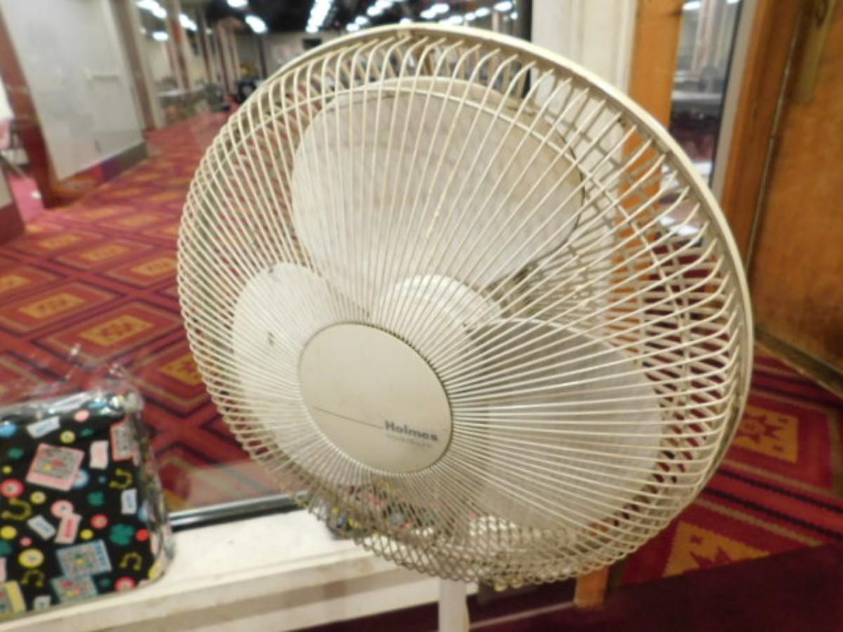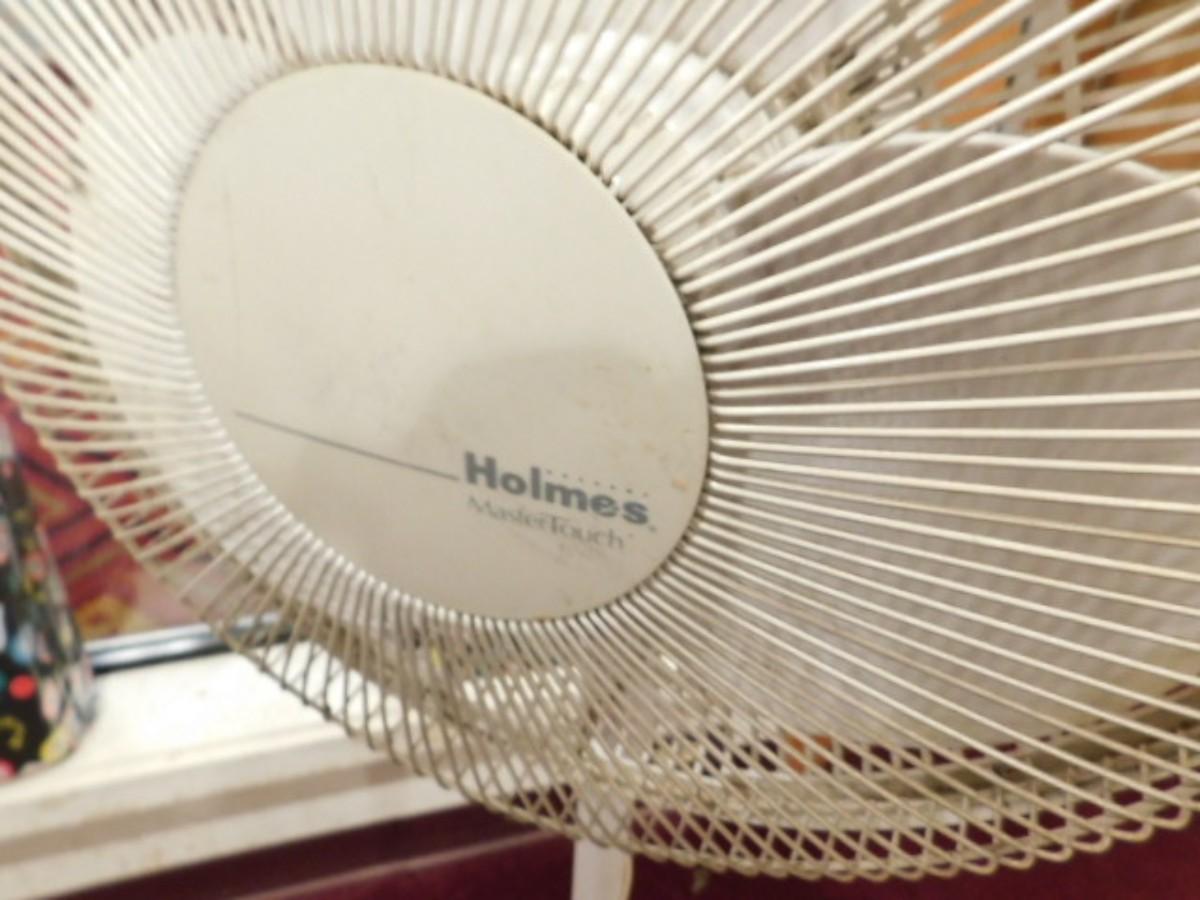 Holmes White Floor Fan Expect some wear or scratches to finish. Shipping option available via freight or local mover at Buyer's expense. Buyer must have all shipping scheduled within the stated dates and times of pickup. Recommended local mover is Beaty Bros. Moving 828-201-2982