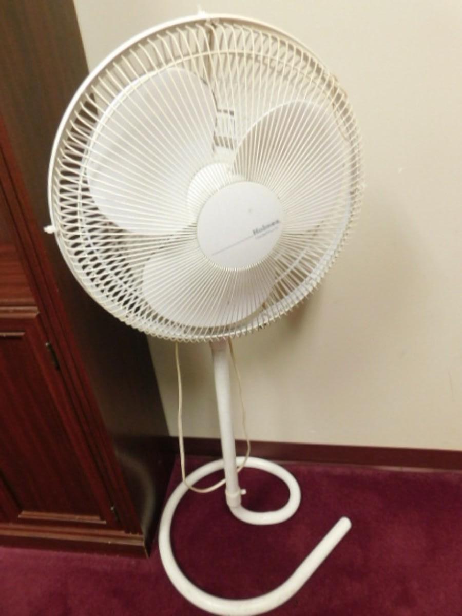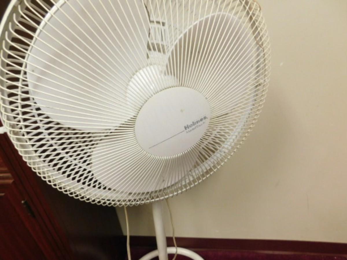 Holmes White Floor Fan Expect some wear or scratches to finish. Shipping option available via freight or local mover at Buyer's expense. Buyer must have all shipping scheduled within the stated dates and times of pickup. Recommended local mover is Beaty Bros. Moving 828-201-2982