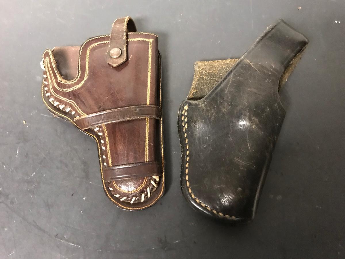 Pair of high quality leather holsters one stamped probably for .22 weapon
