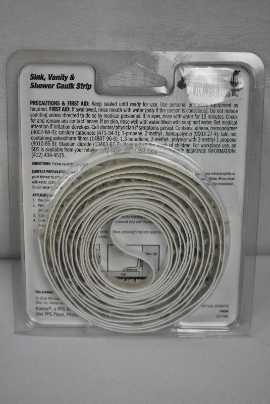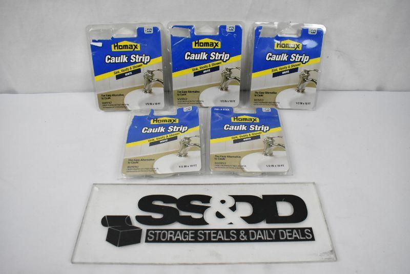 Homax Caulk Strip, Sink, Vanity & Shower, White, .50"x10', Qty 5 packages - New