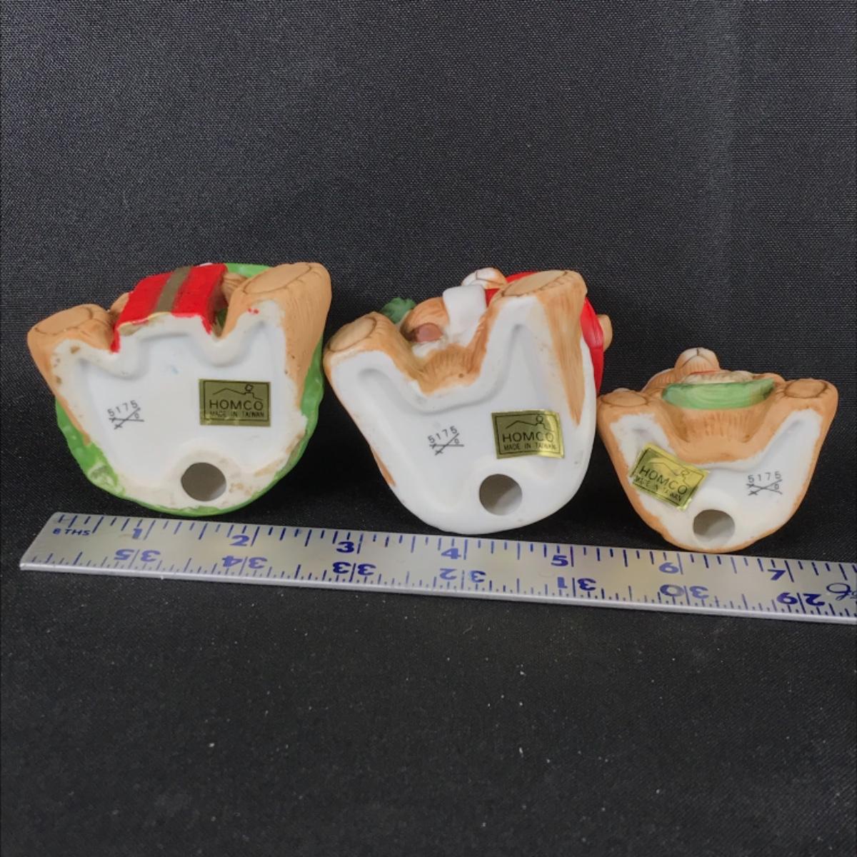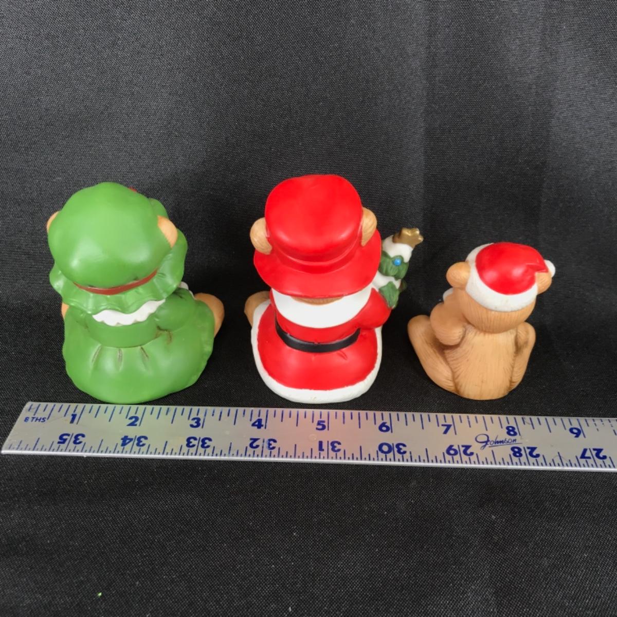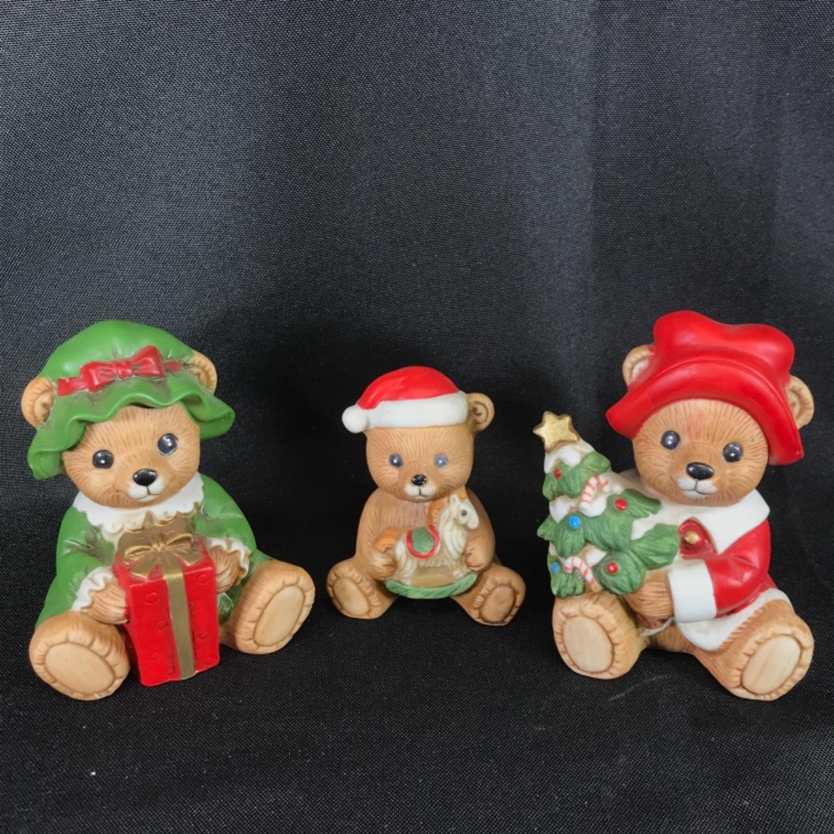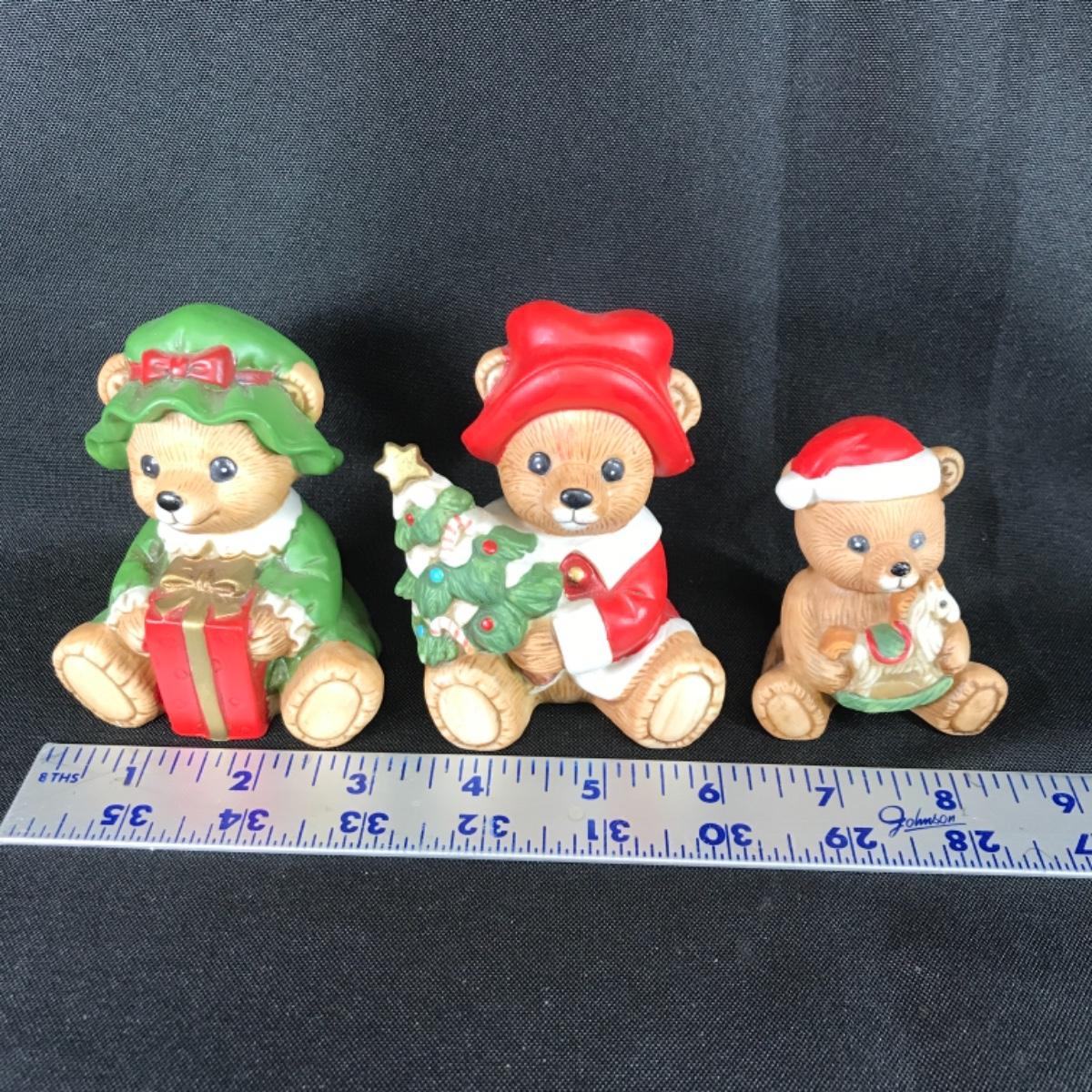 Three decorative teddy bear figurines as pictured. They are in excellent condition with no visible damage. It feels like they are made of a type of ceramic material. See pictures.