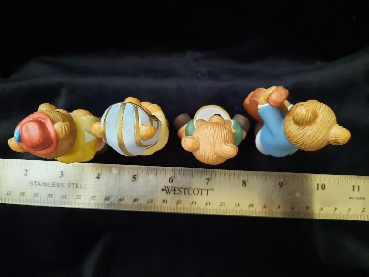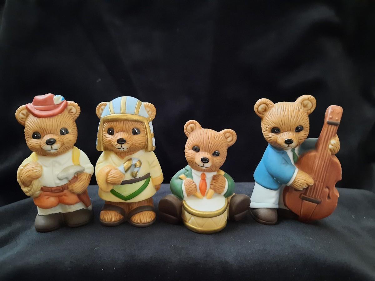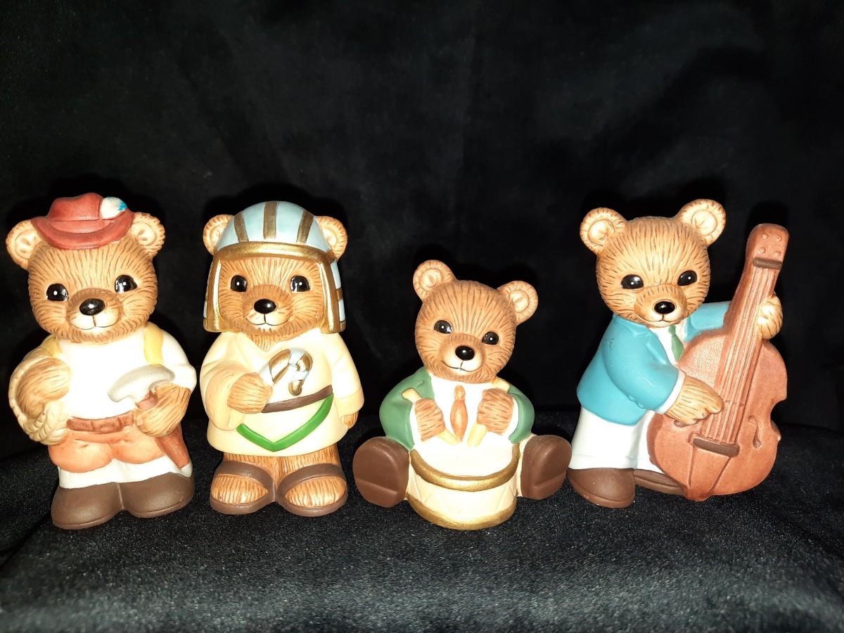 Hand painted in great detail are a mountain climber, an egyptian, a drummer, and a cello player.