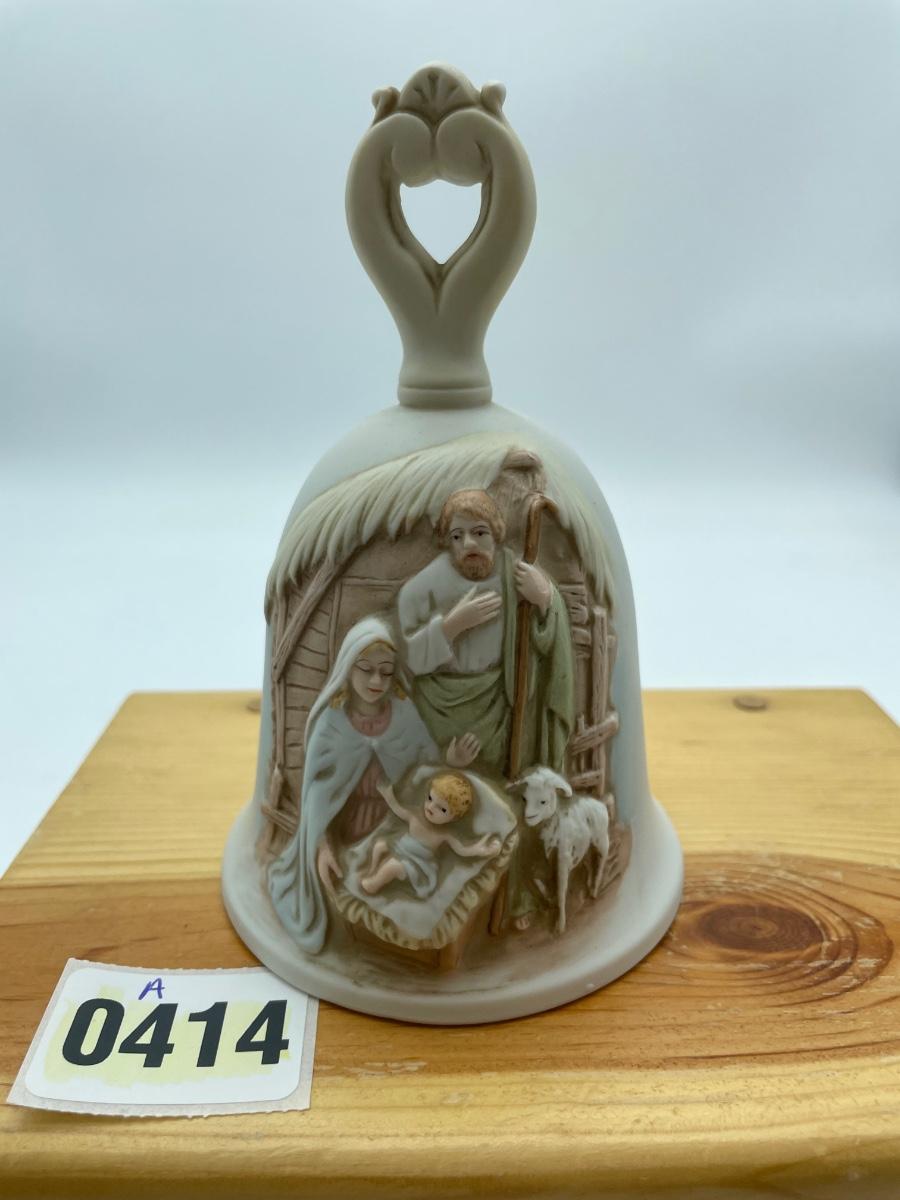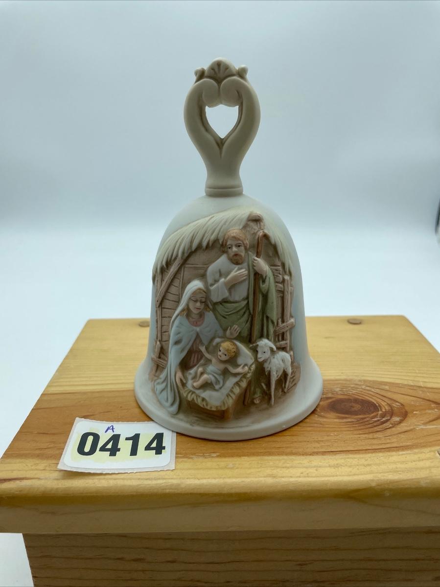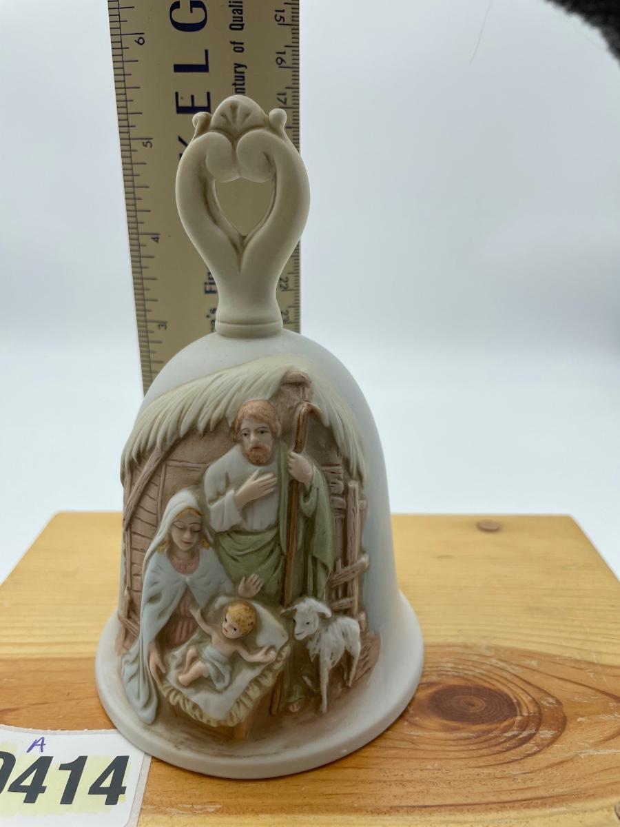 HOMCO Vtg. Bisque porcelain nativity bell